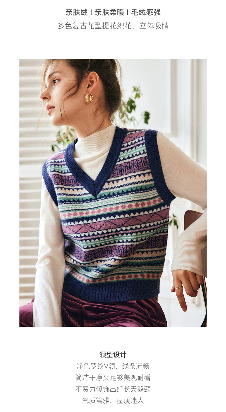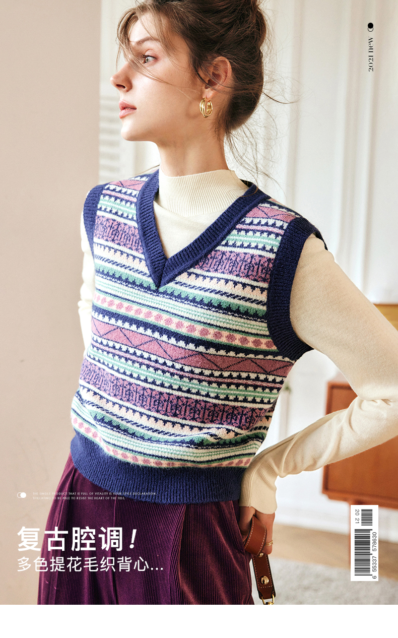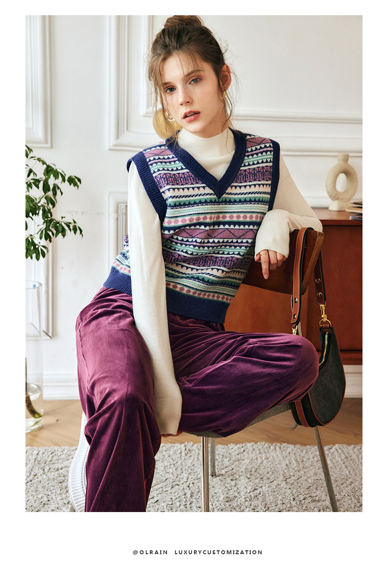 OLrain欧芮儿法式V领马甲毛衣女秋冬2022年新款复古内搭针织背心