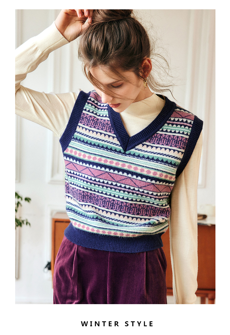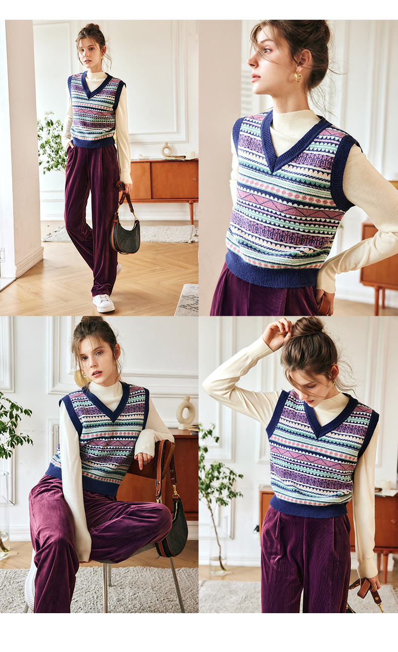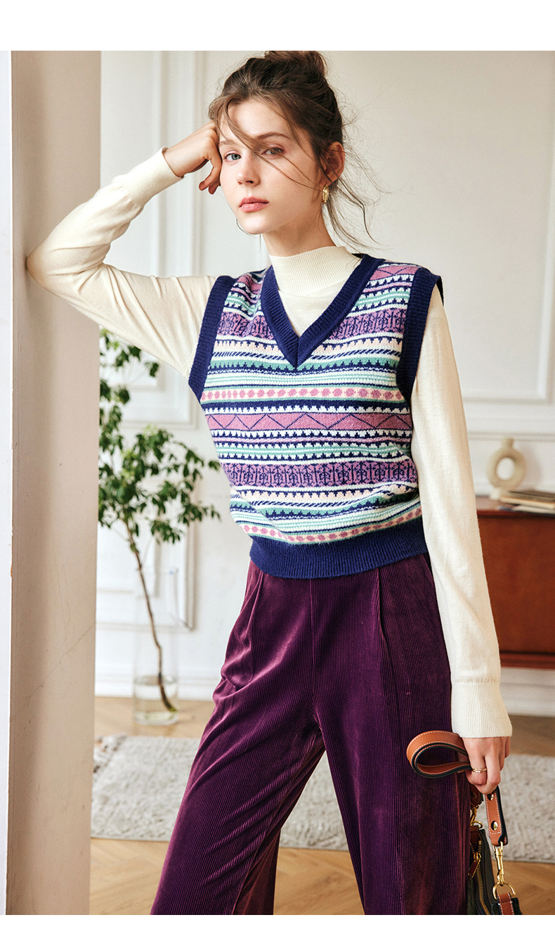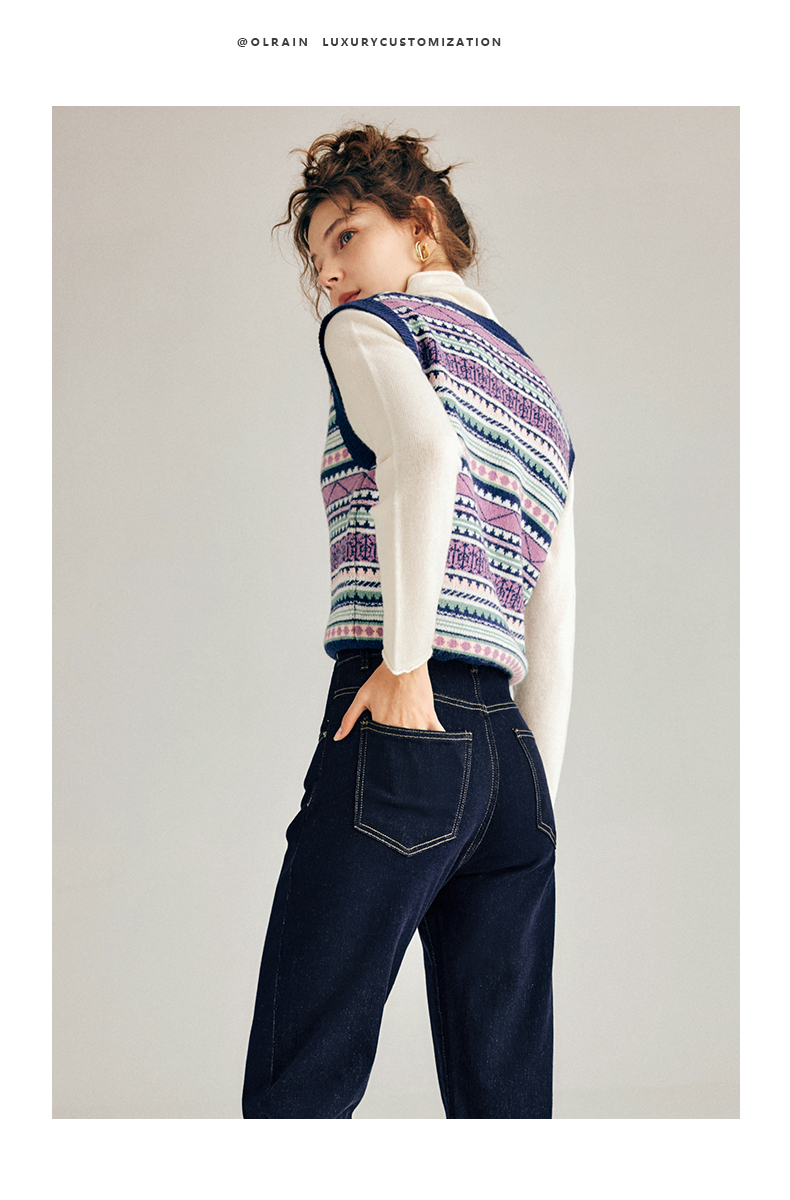 OLrain欧芮儿法式V领马甲毛衣女秋冬2022年新款复古内搭针织背心