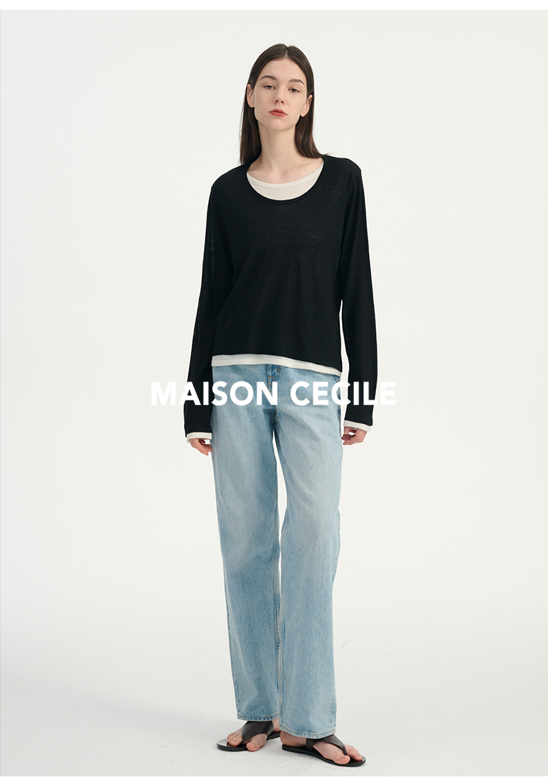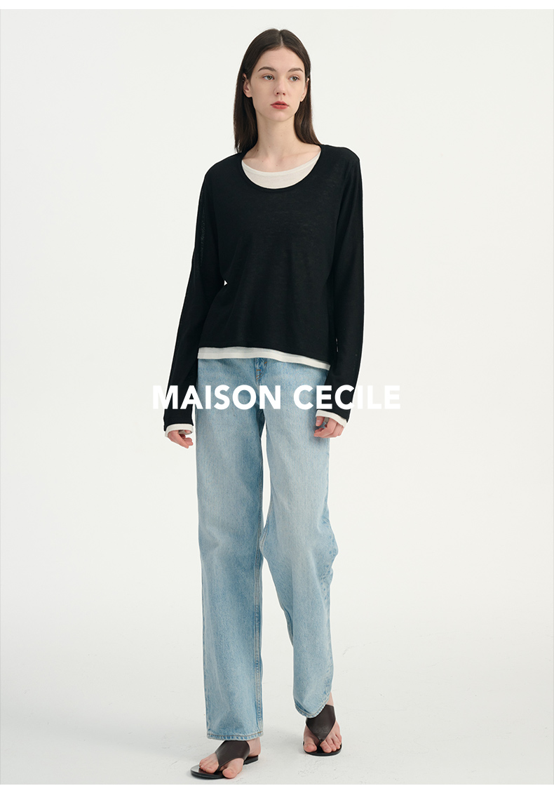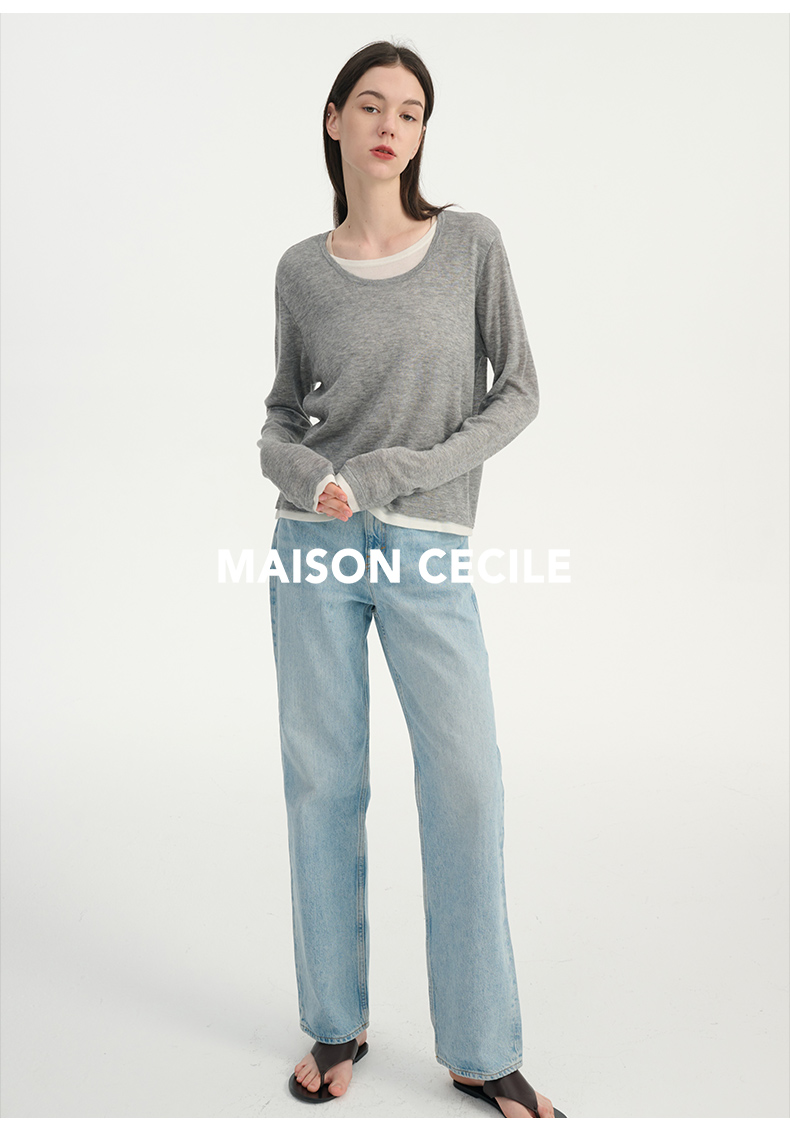 MAISON CECILE 两色|桑蚕丝羊绒亲肤软糯一字领修身针织打底衫