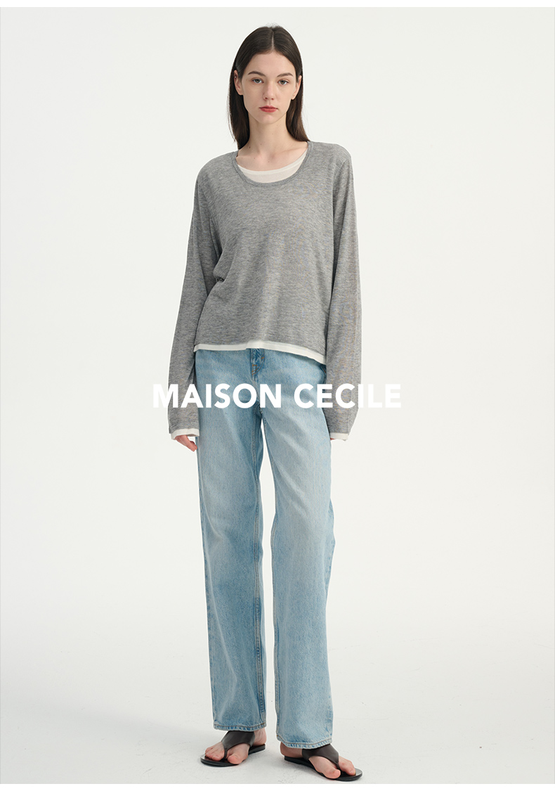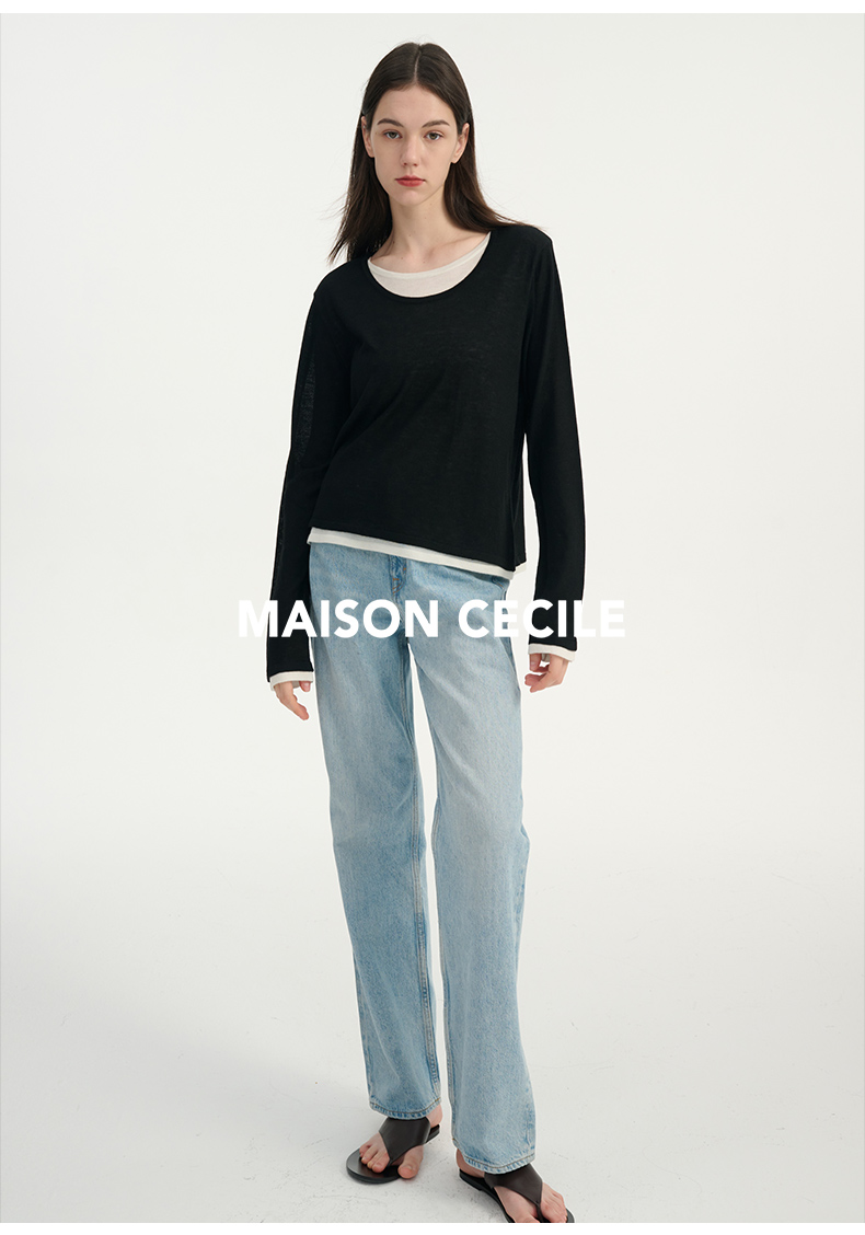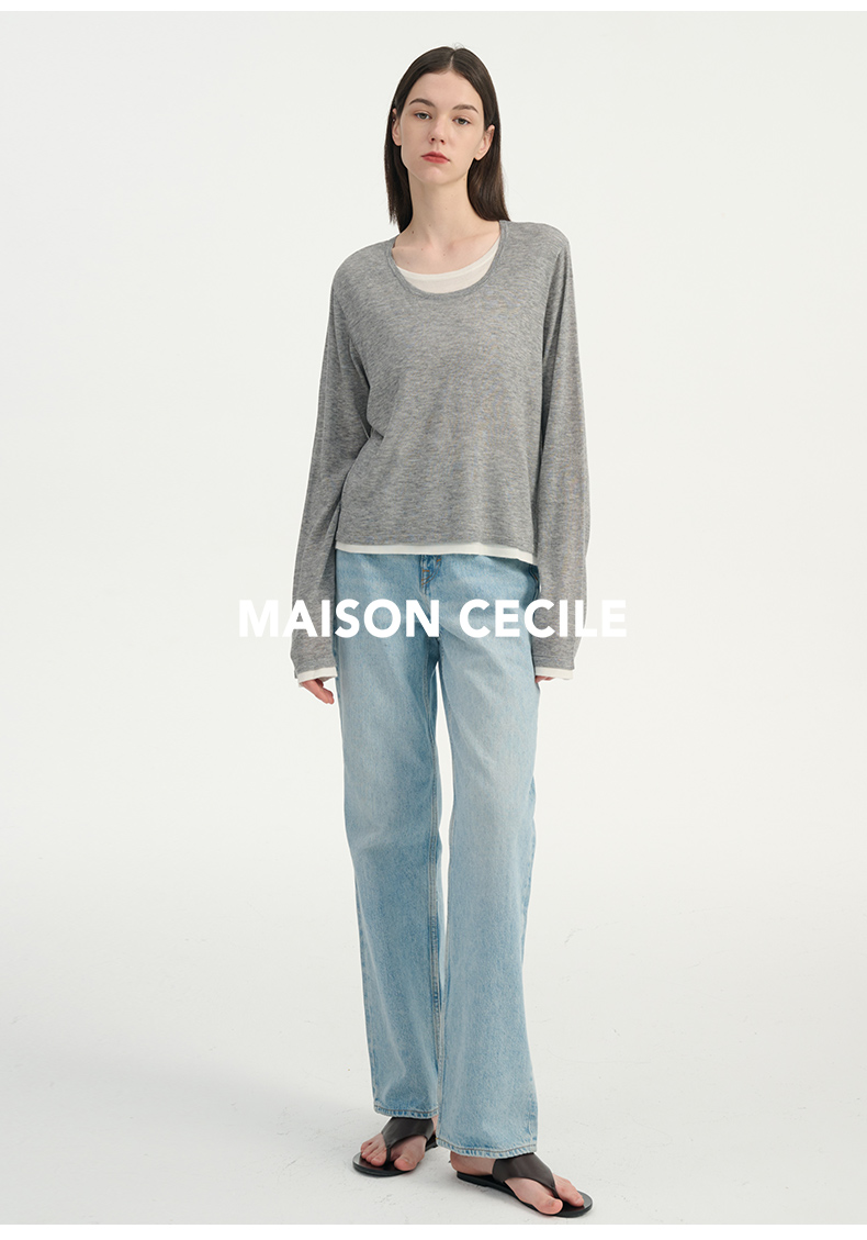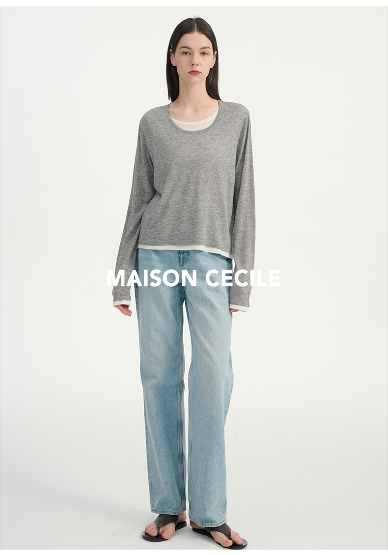 MAISON CECILE 两色|桑蚕丝羊绒亲肤软糯一字领修身针织打底衫
