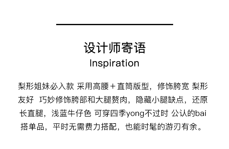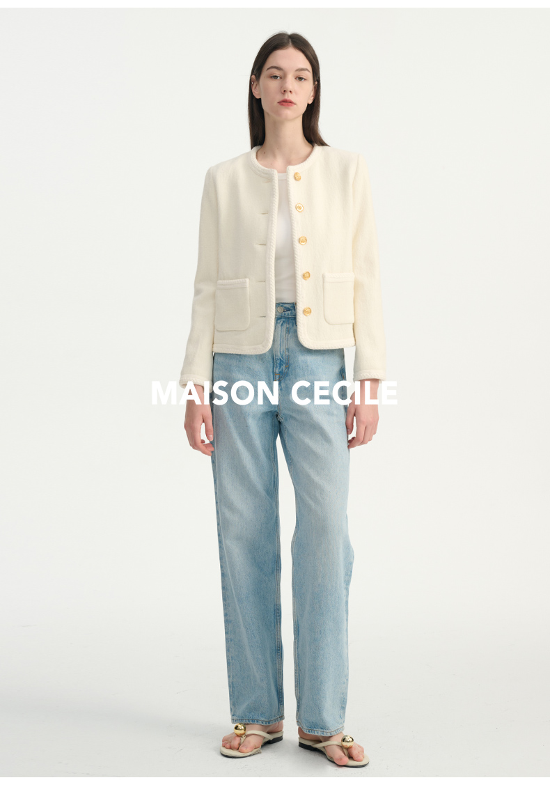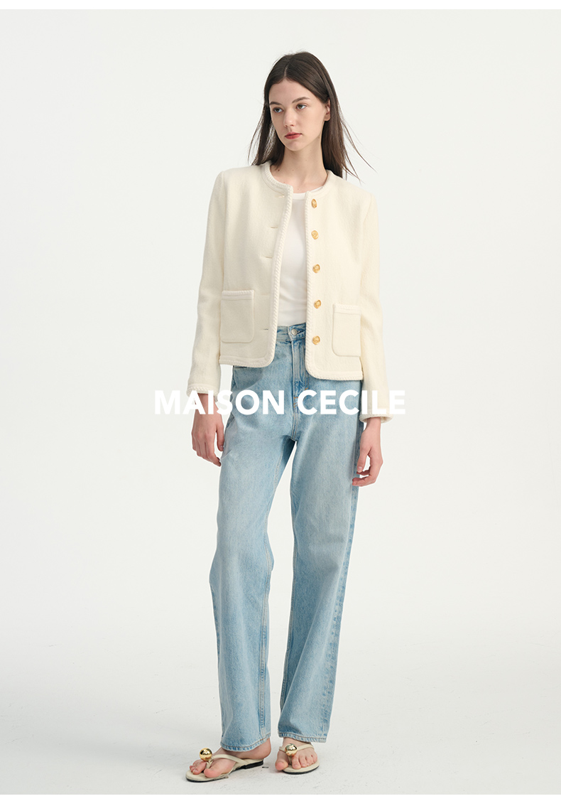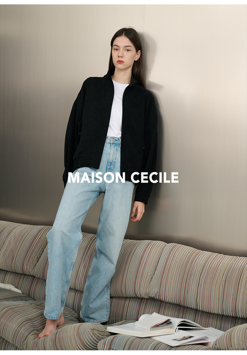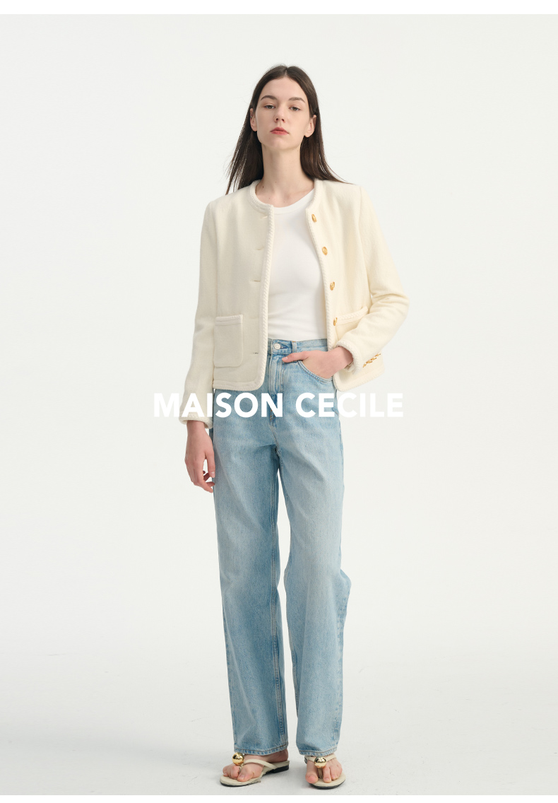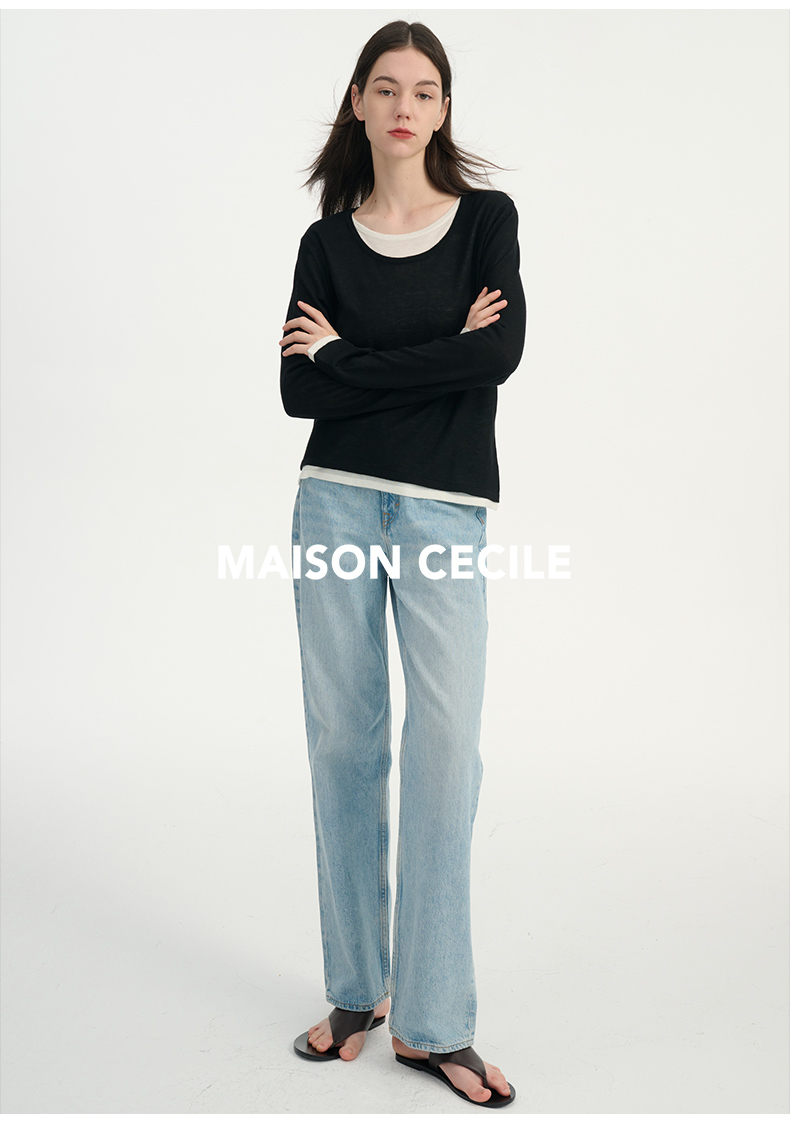 MAISON CECILE浅色复古水洗蓝直筒显瘦高腰牛仔裤