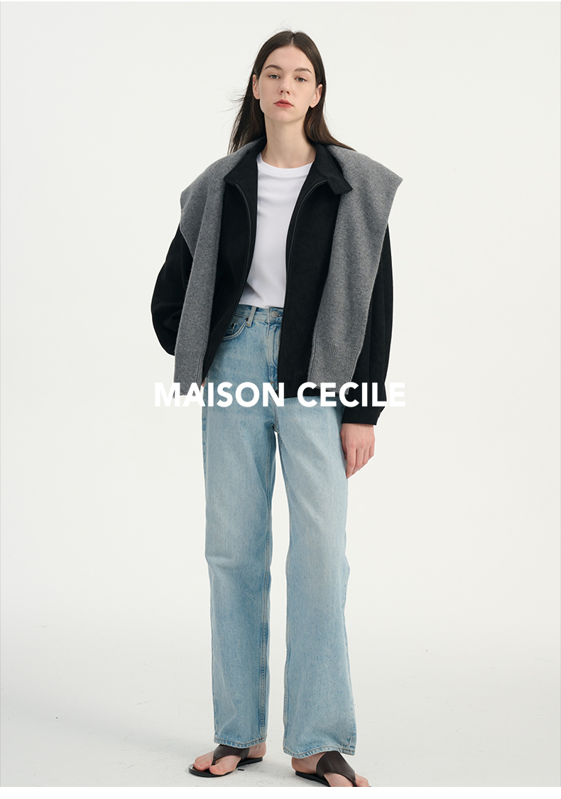 MAISON CECILE雅痞街头风格阔腿牛仔高腰直筒裤