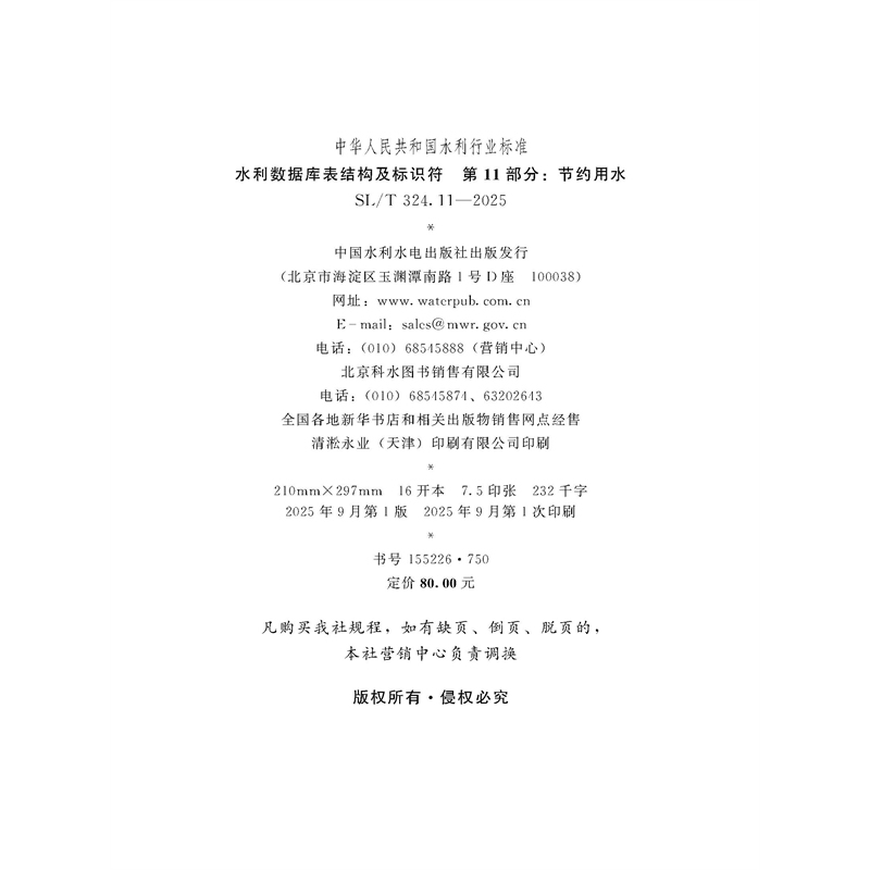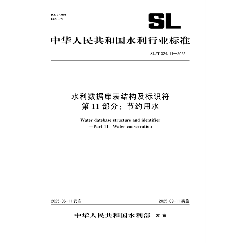 SL/T324.11-2025水利数据库表结构及标识符 第11部分:节约用水(中华人民共和国水利行业标准)