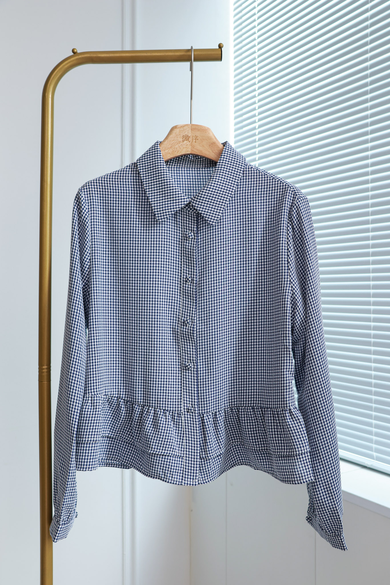 塞纳雾绡|学院风荷叶边格纹衬衣