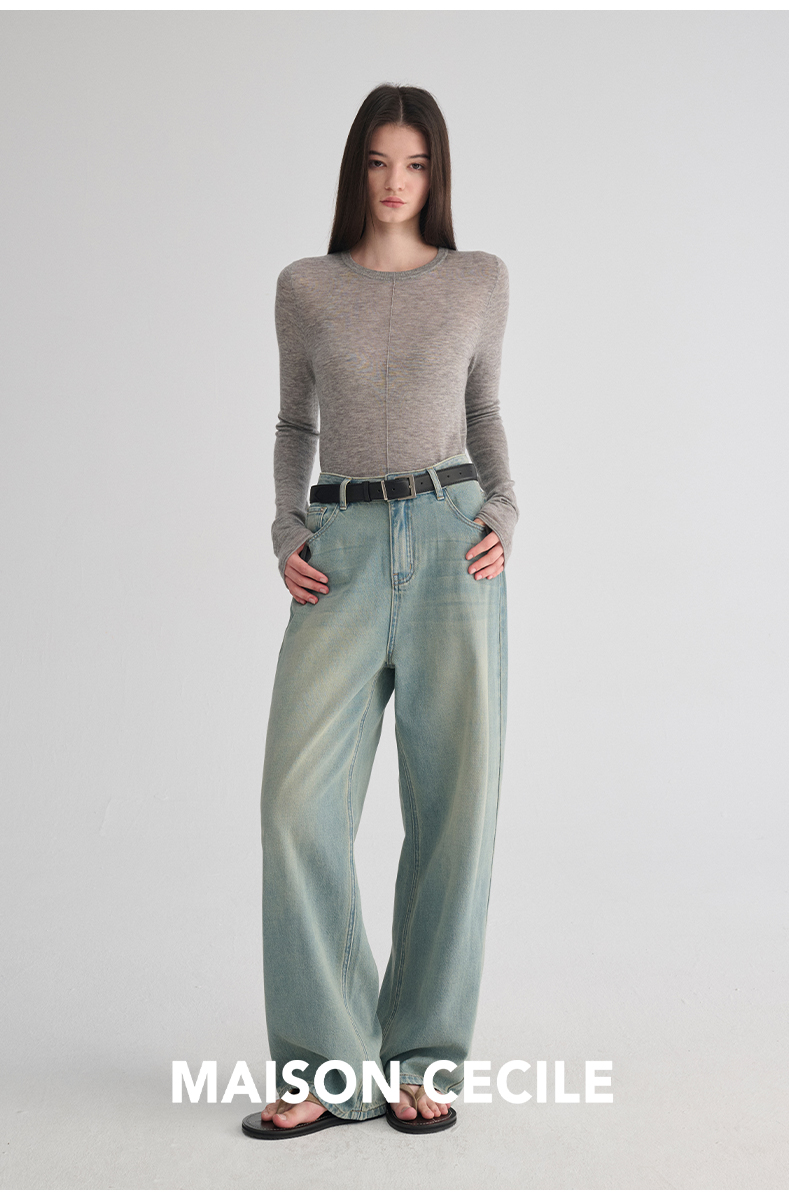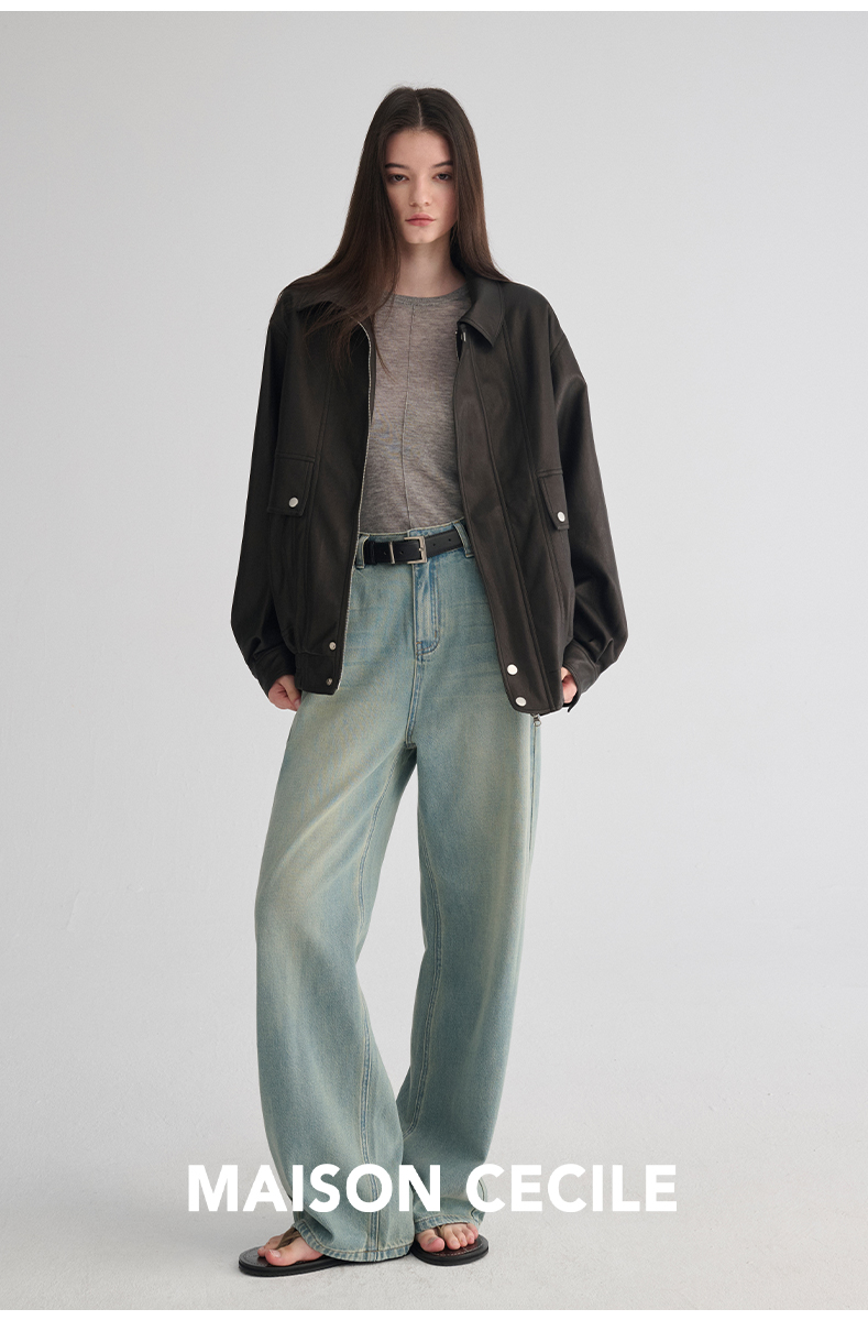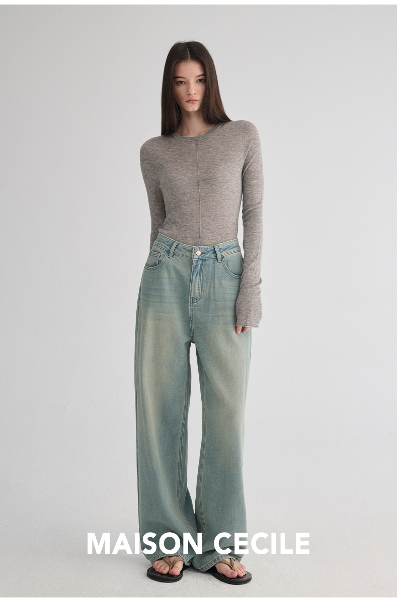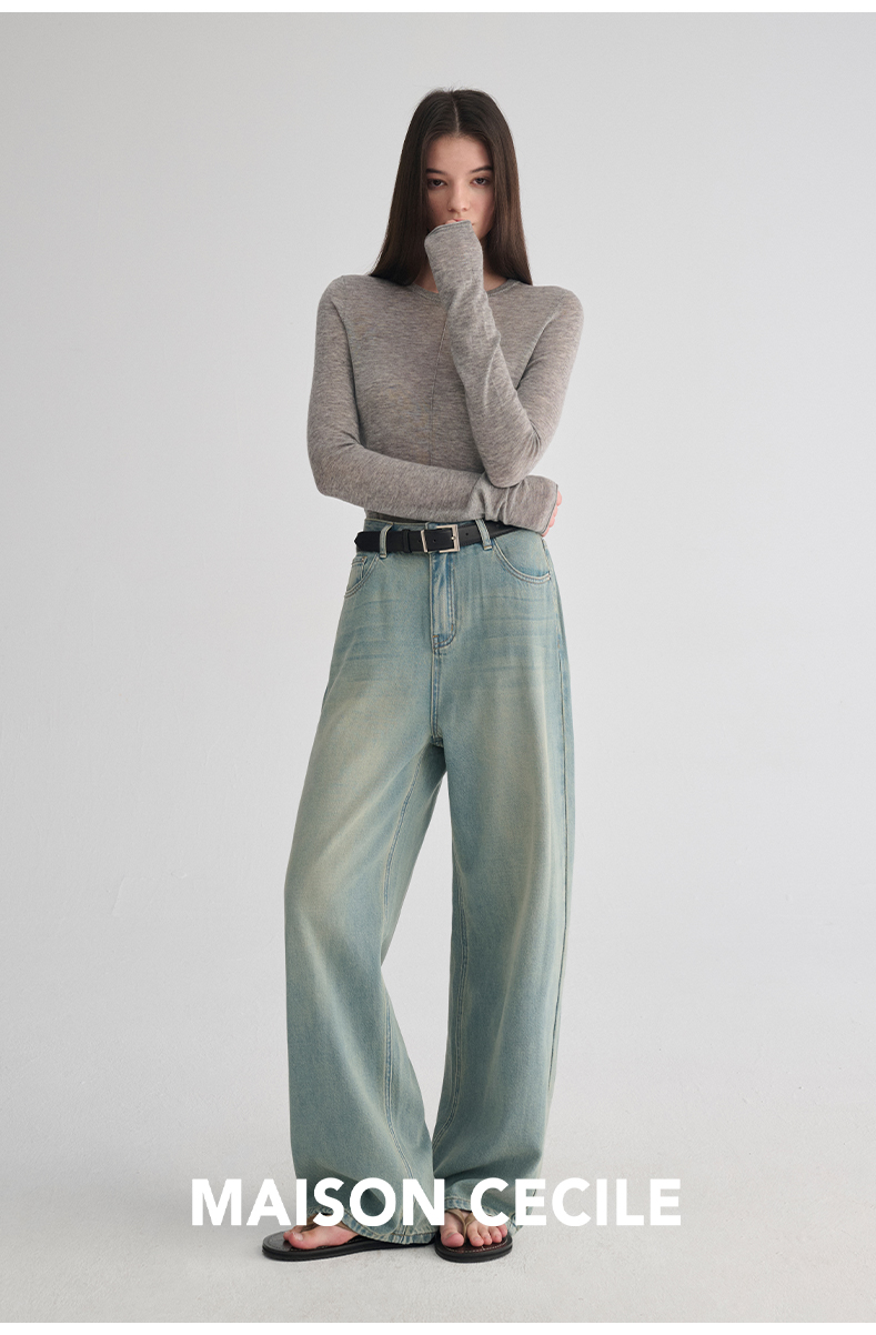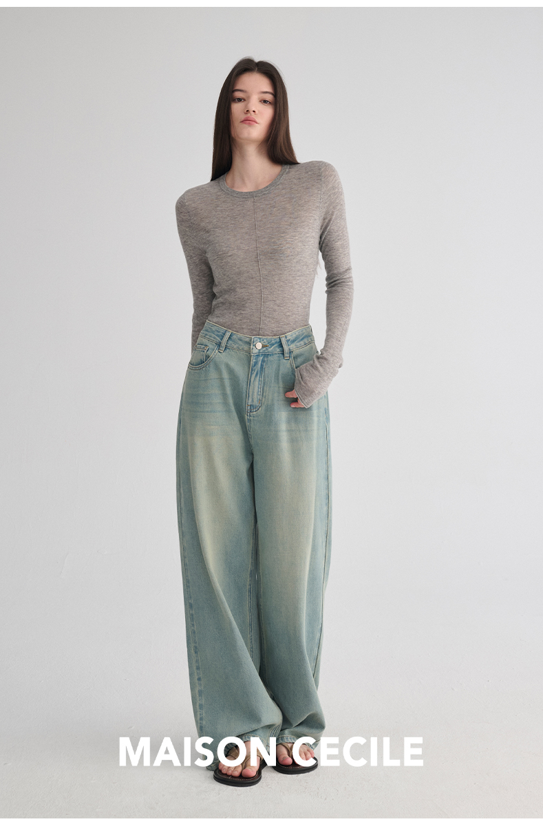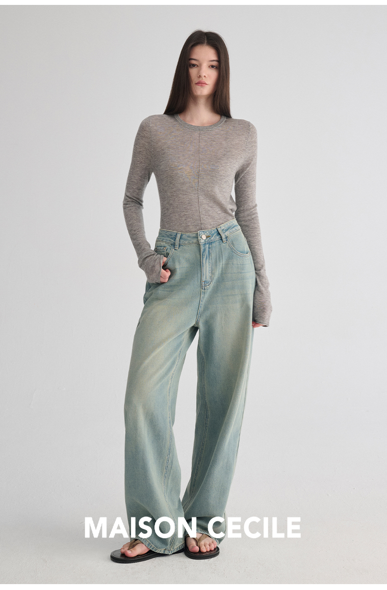 MAISON CECILE 秋季复古松弛水洗做旧显瘦百搭直筒牛仔裤