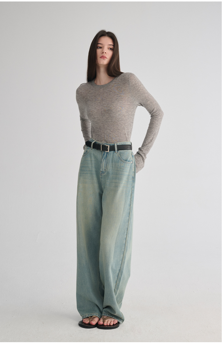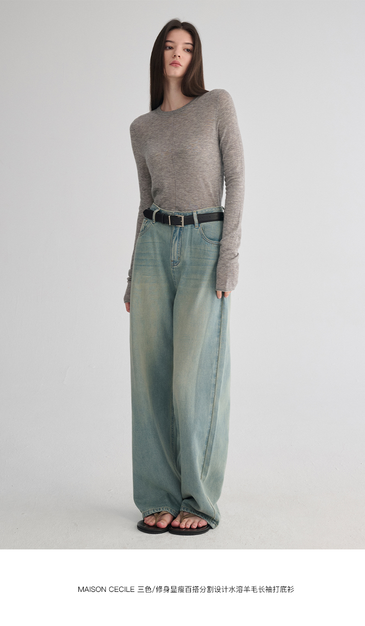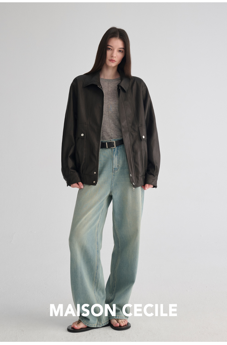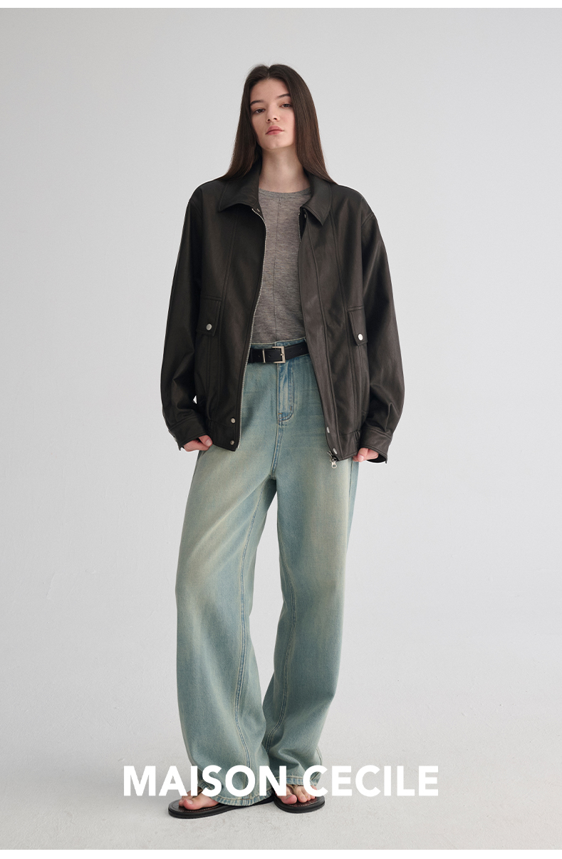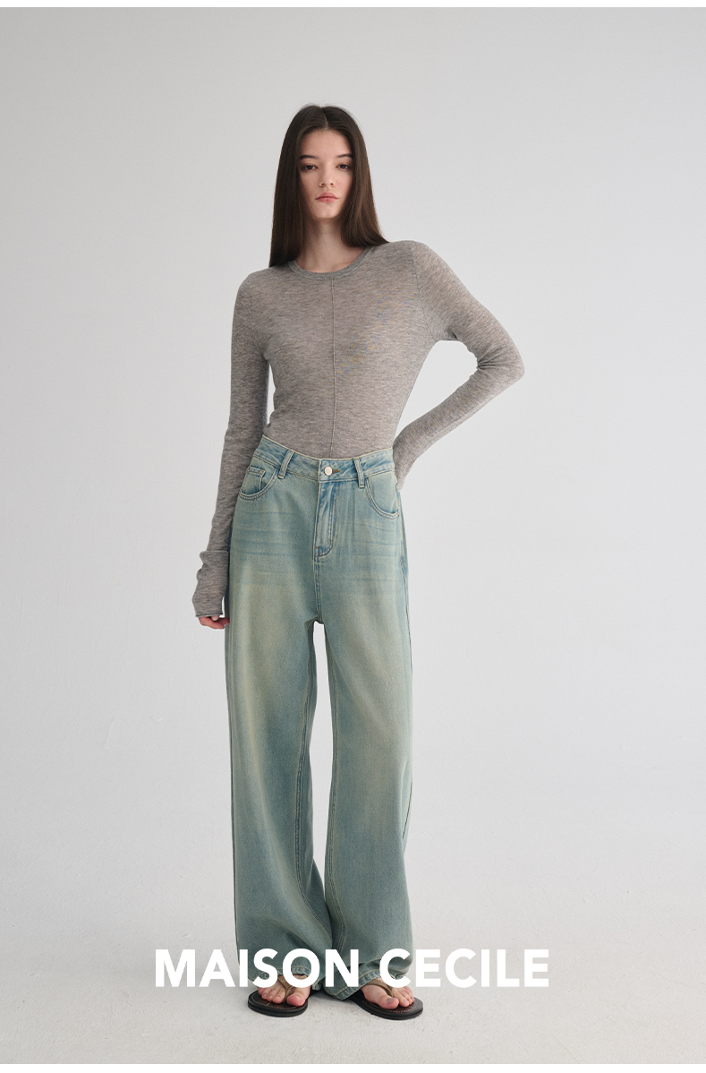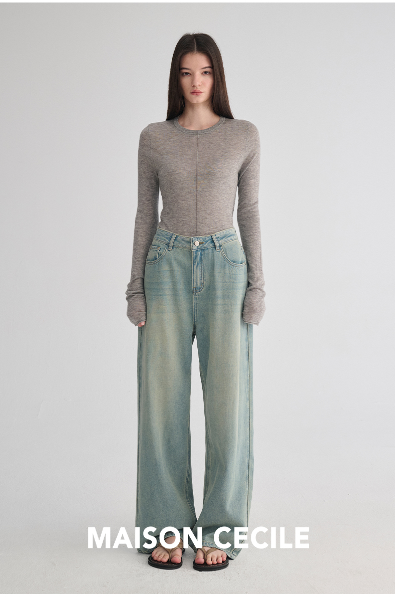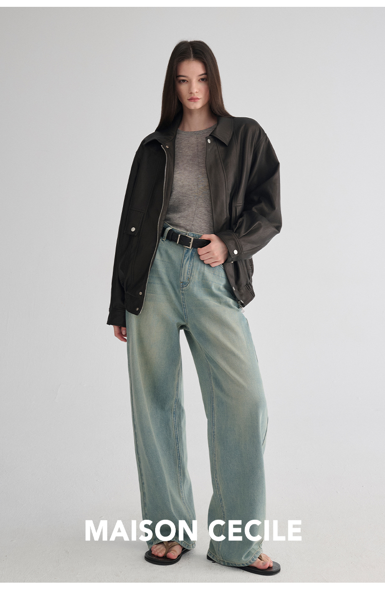 MAISON CECILE 秋季复古松弛水洗做旧显瘦百搭直筒牛仔裤