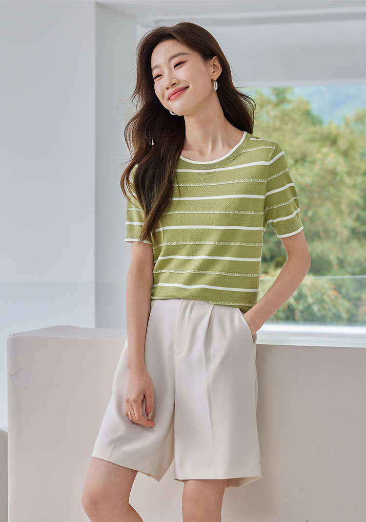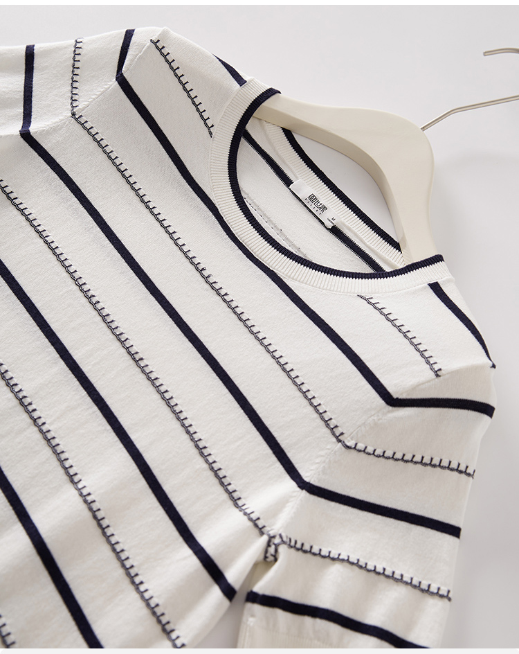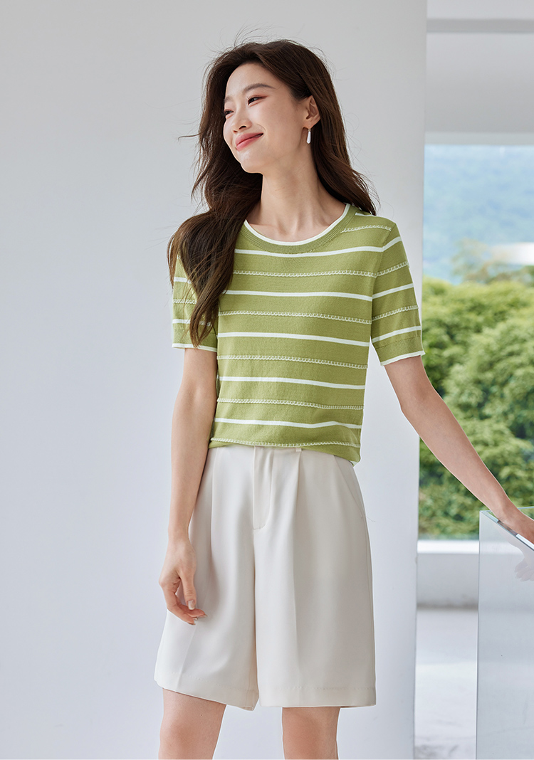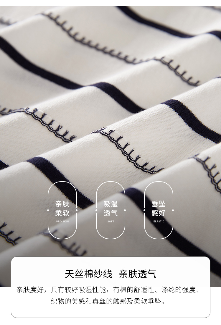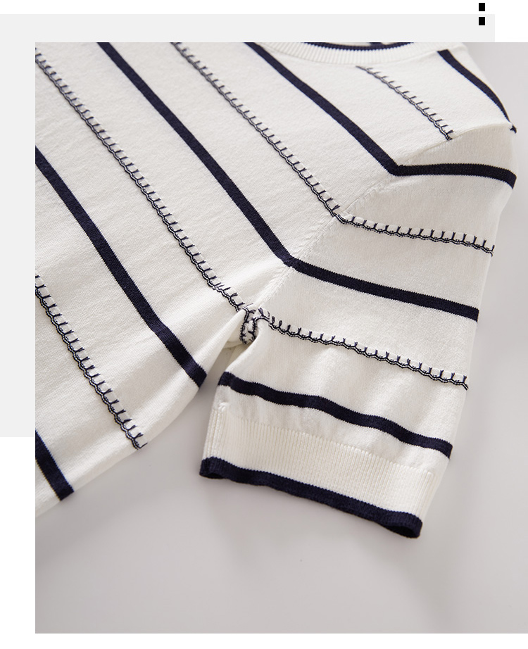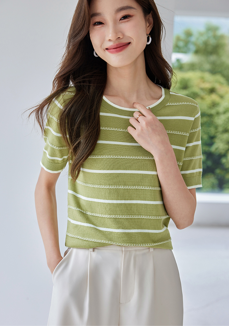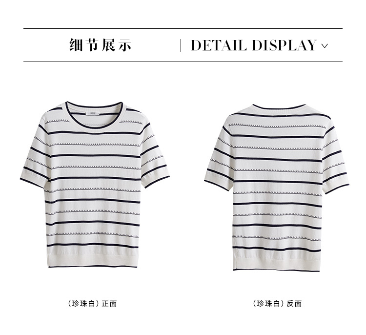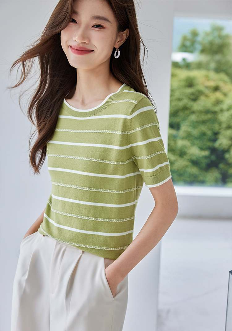 【专属特价】熙世界天丝棉条纹短袖针织衫女薄款2025春夏新款百搭休闲圆领T恤衫上衣
