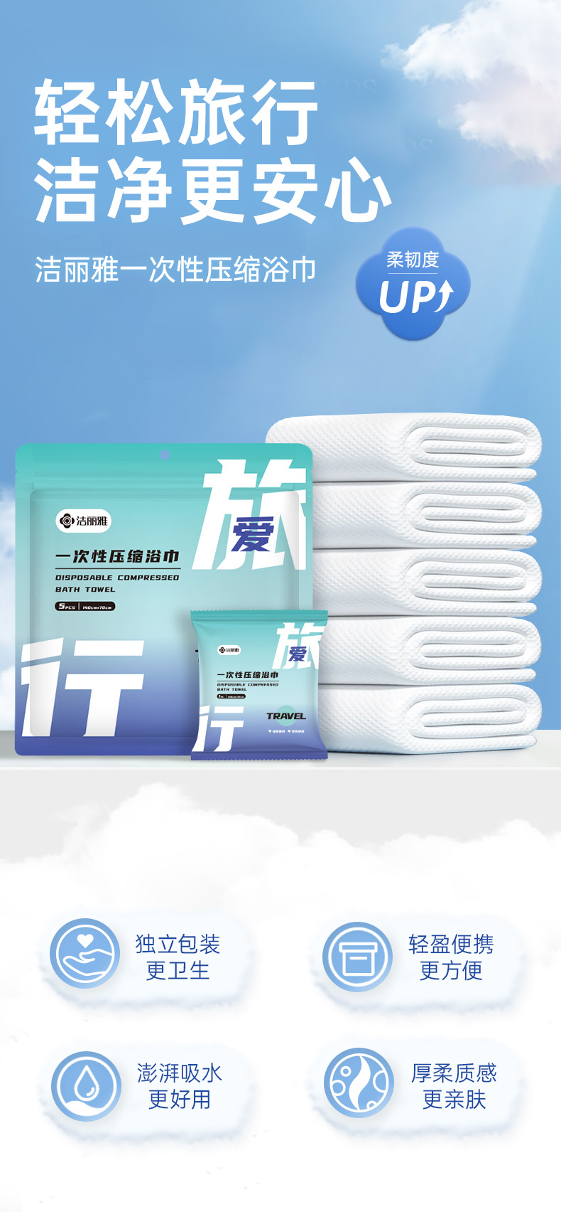 洁丽雅压缩加厚一次性浴巾旅行单独包装2025新款旅游酒店用品加大