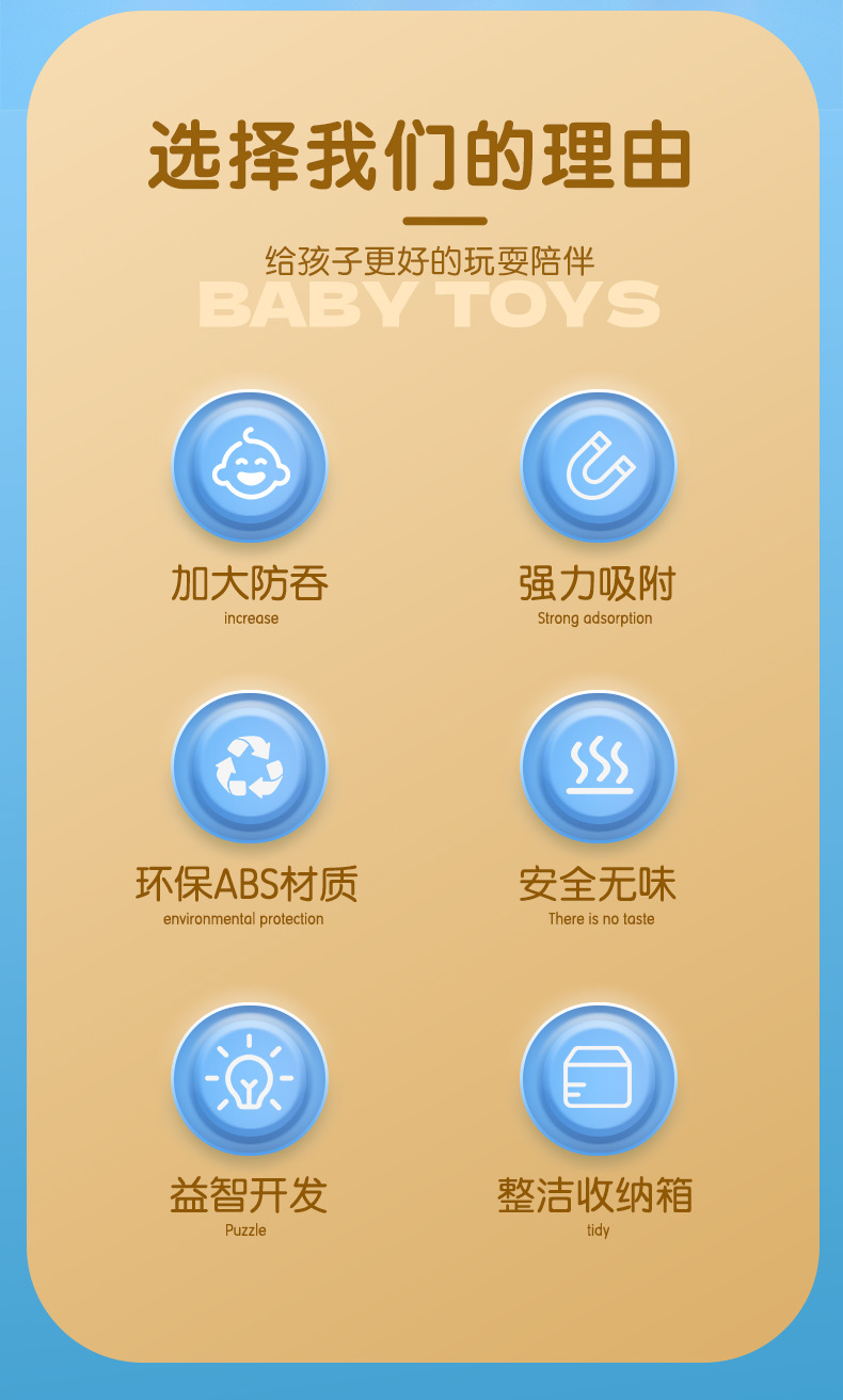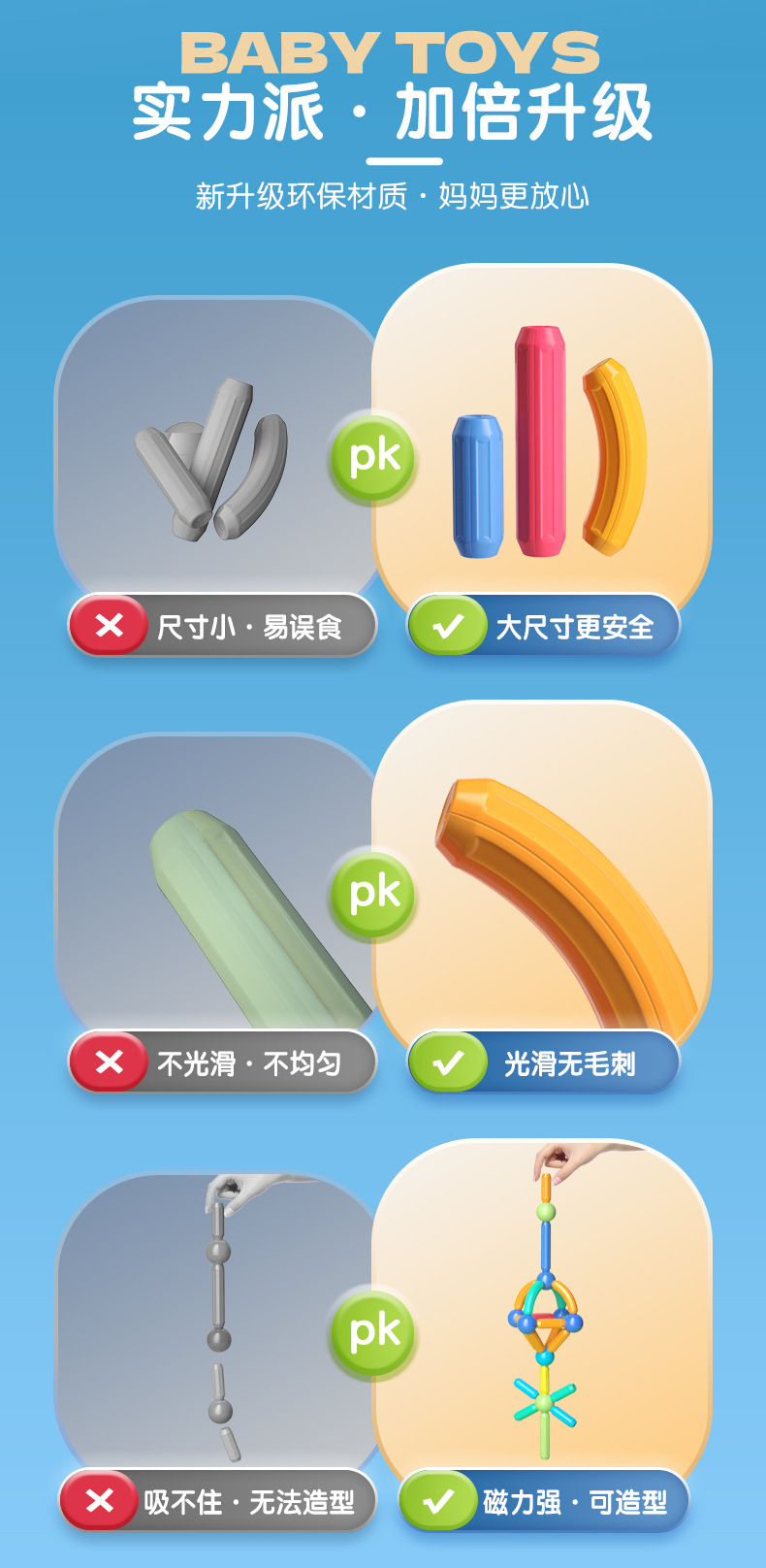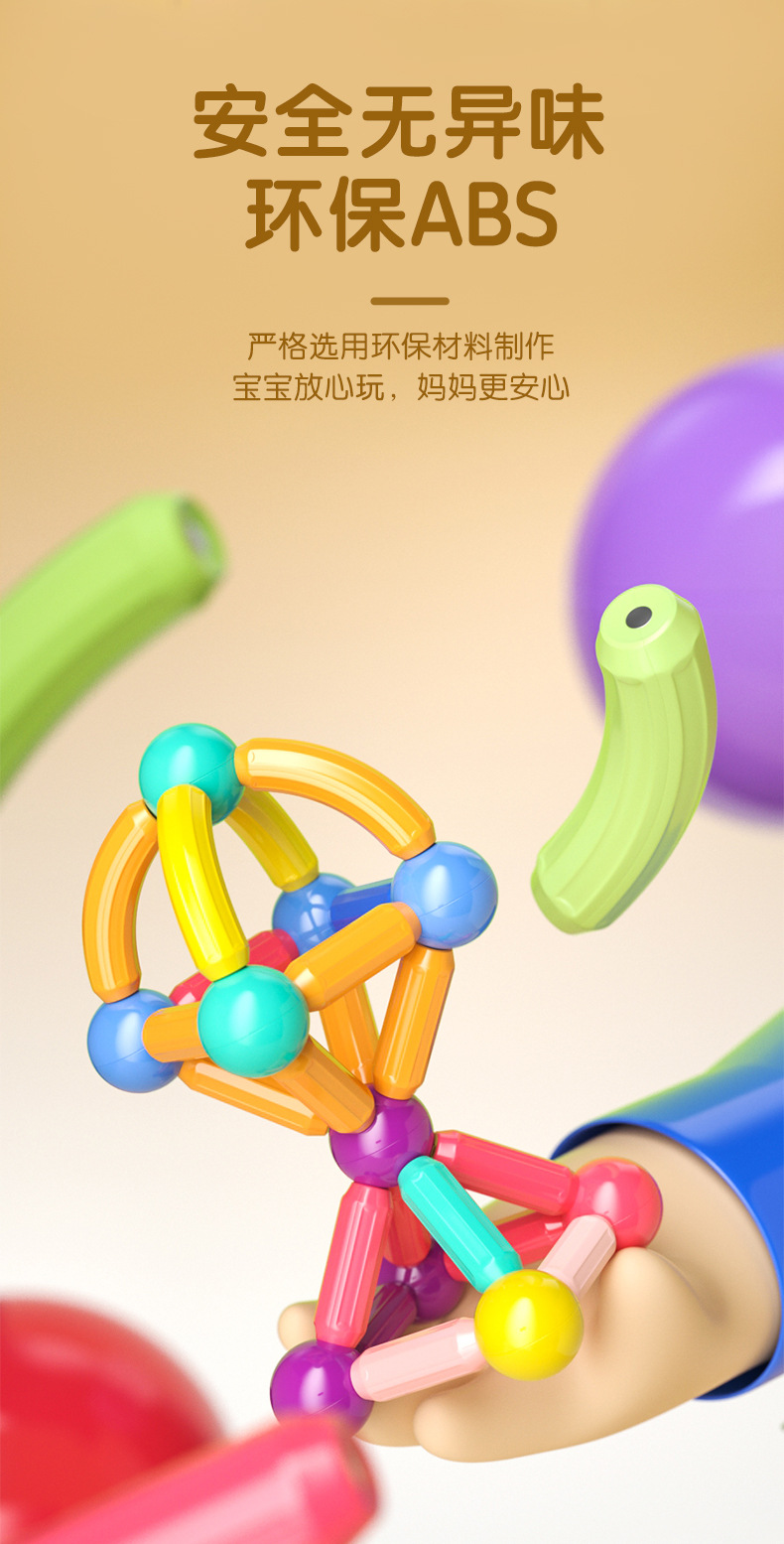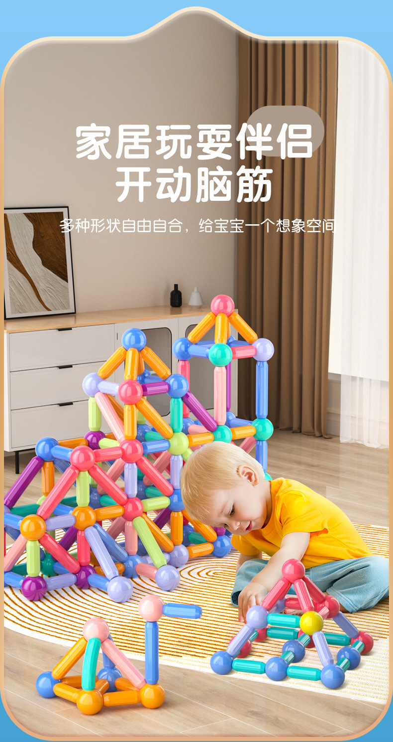 【益智动脑,自在玩耍!】百变磁力棒儿童拼装益智积,木大颗粒吸磁铁片男孩女孩宝宝早教玩具,新升级环保材质·妈妈更放心!-QQ