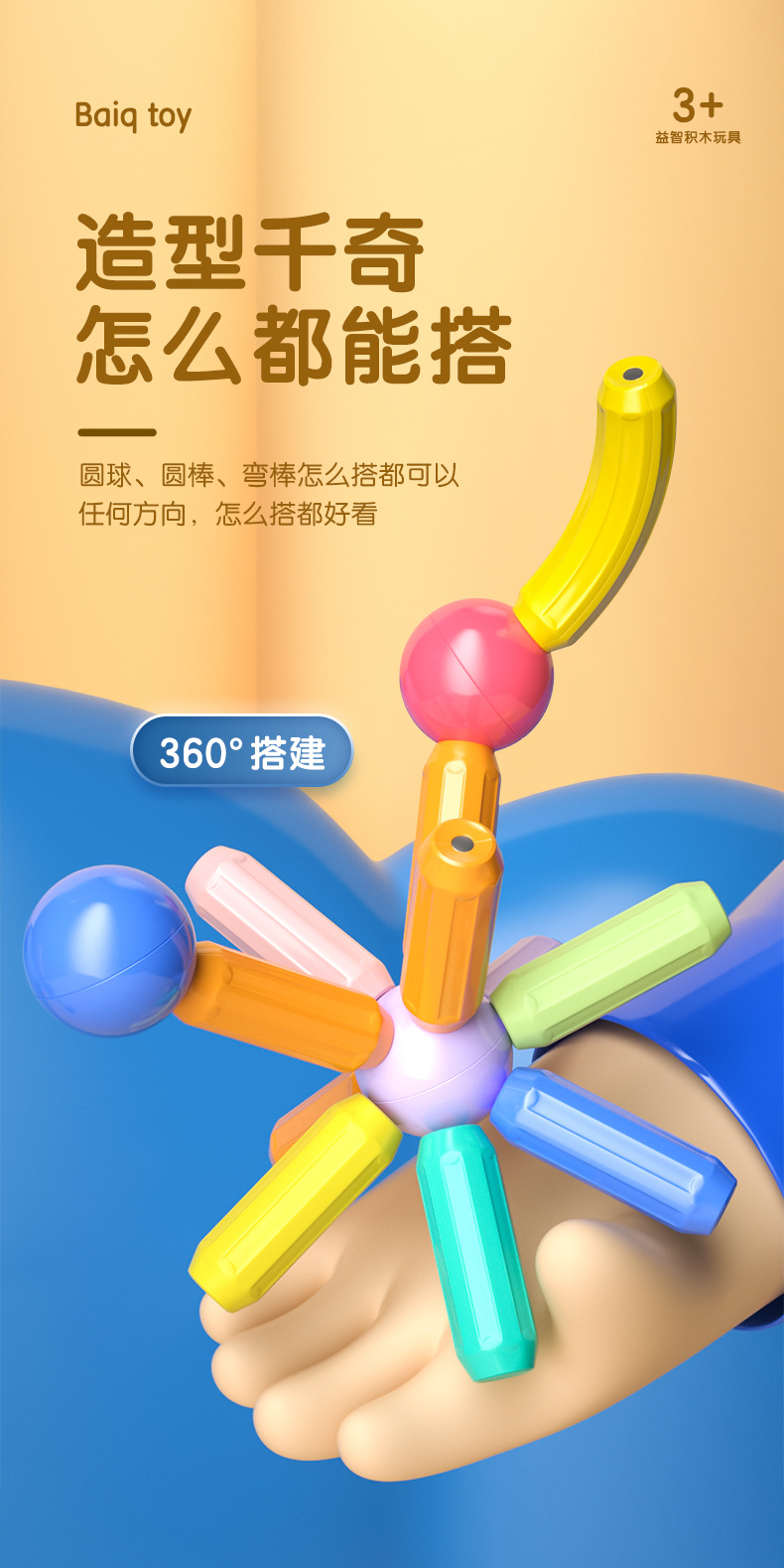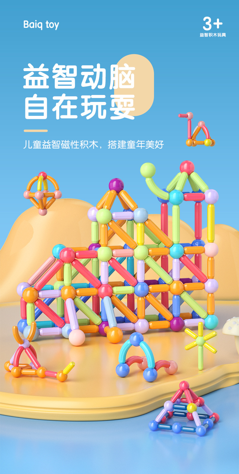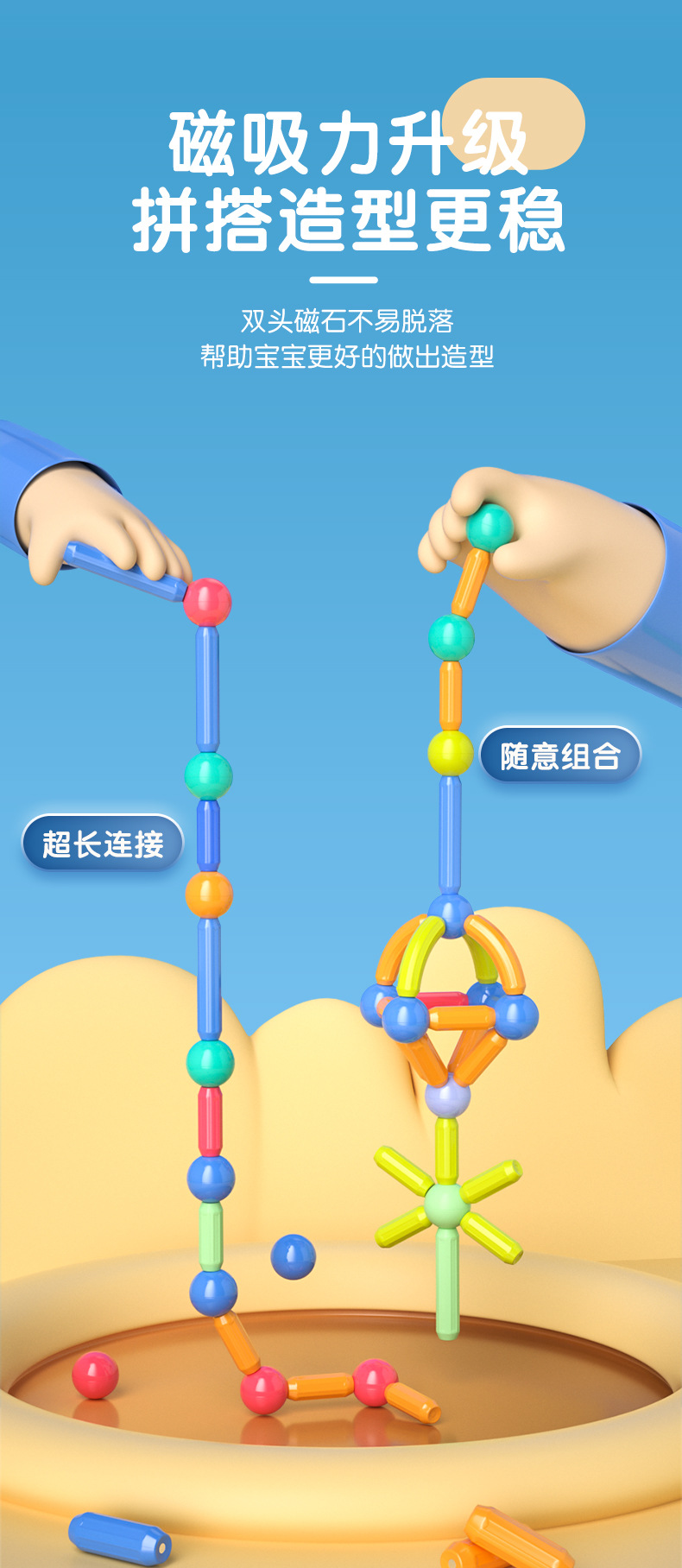 【益智动脑,自在玩耍!】百变磁力棒儿童拼装益智积,木大颗粒吸磁铁片男孩女孩宝宝早教玩具,新升级环保材质·妈妈更放心!-QQ