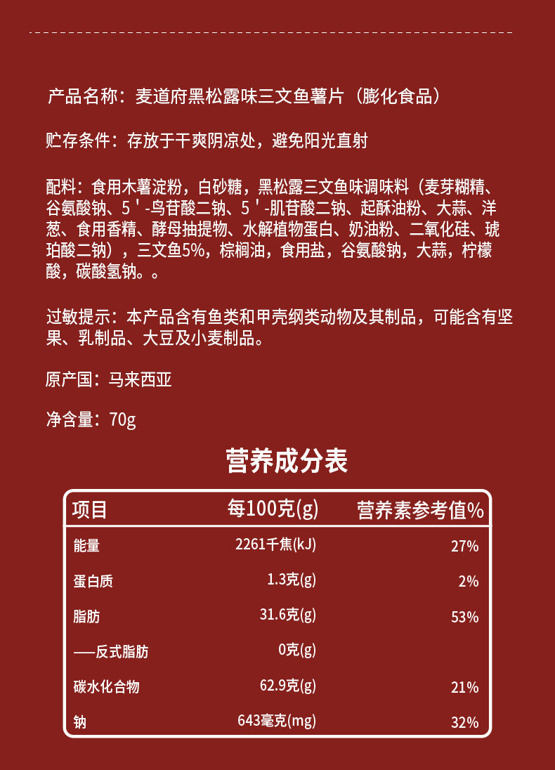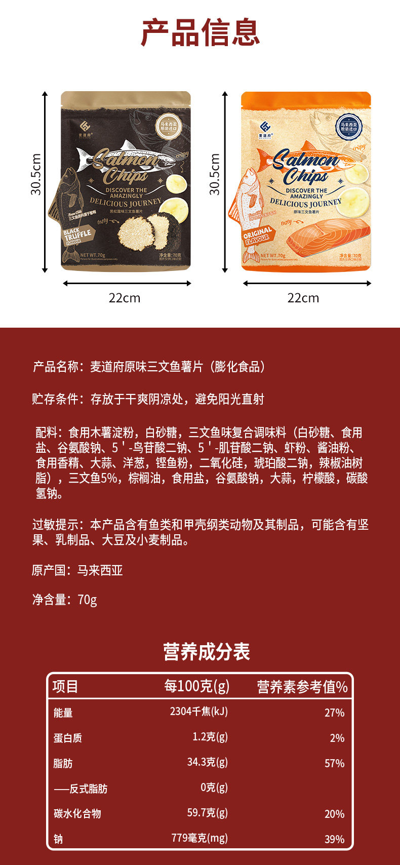 麦道府三文鱼薯片70g(原味/黑松露味)
