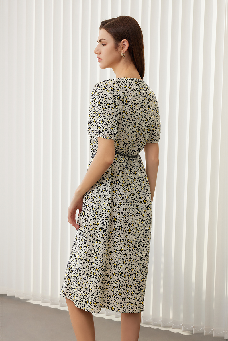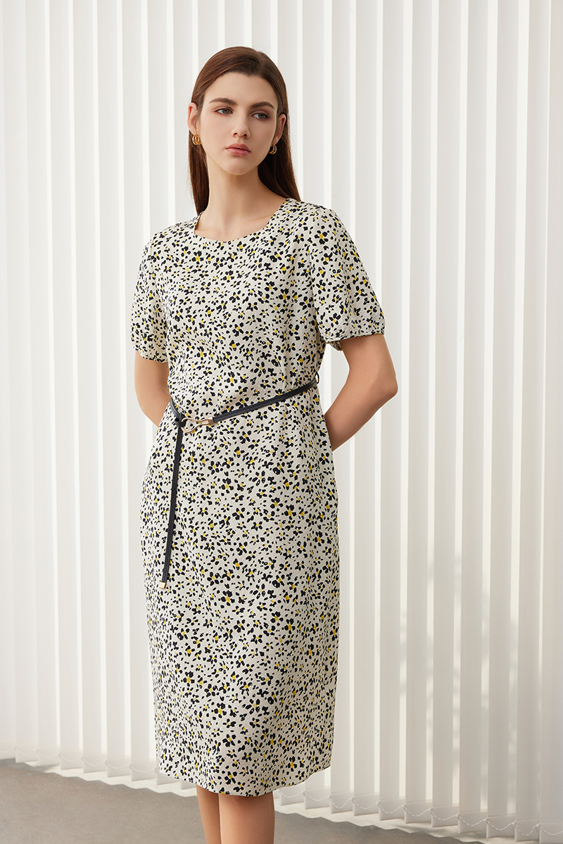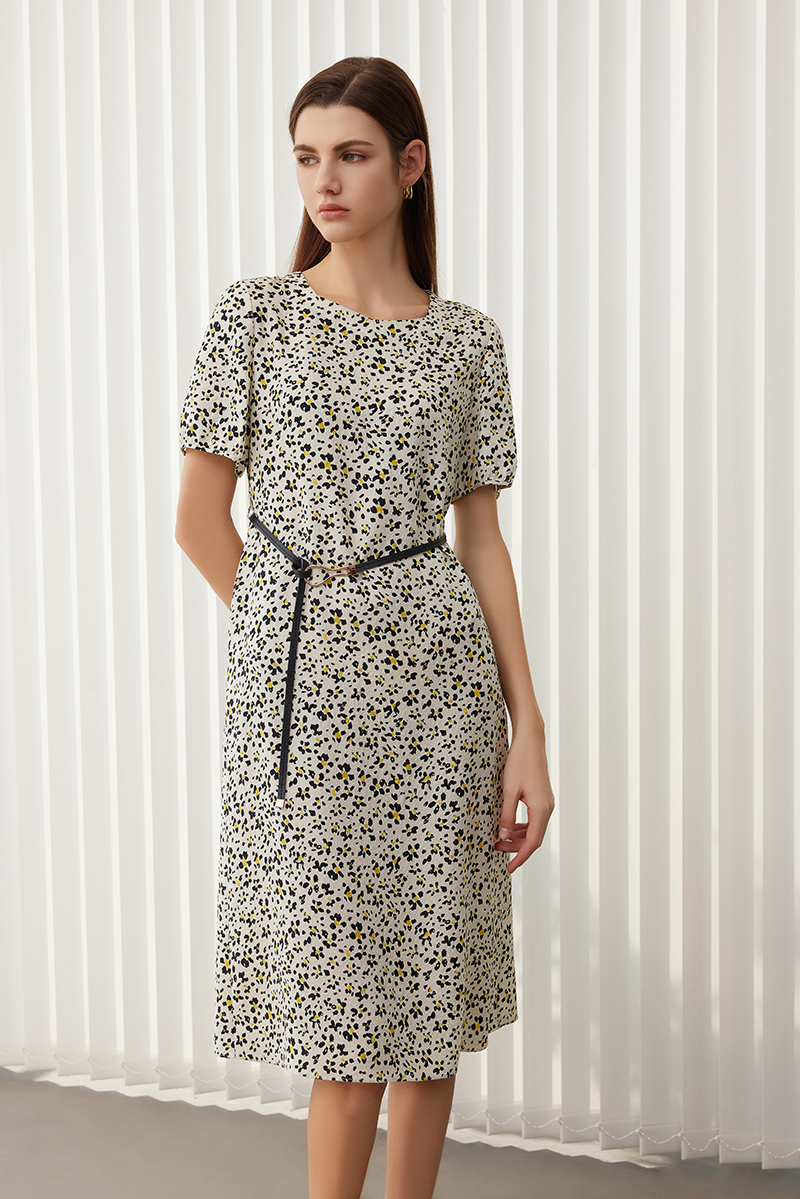 【桑蚕丝印花连衣裙】24年春夏新品女士100%桑蚕丝中长款圆领印花真丝裙