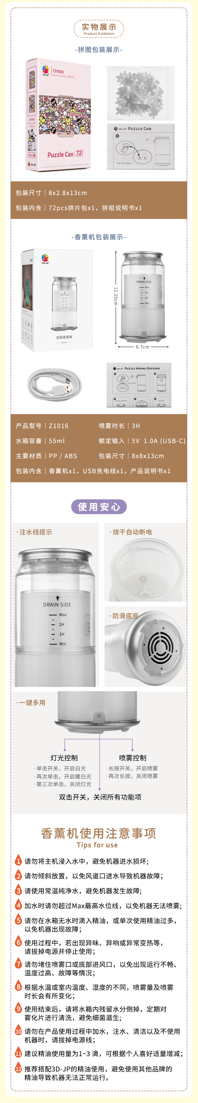 72片 香薰机拼图 塑料拼图 CD1008 Sanrio Characters 可爱布偶