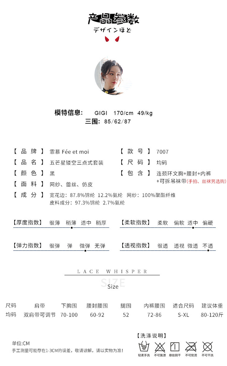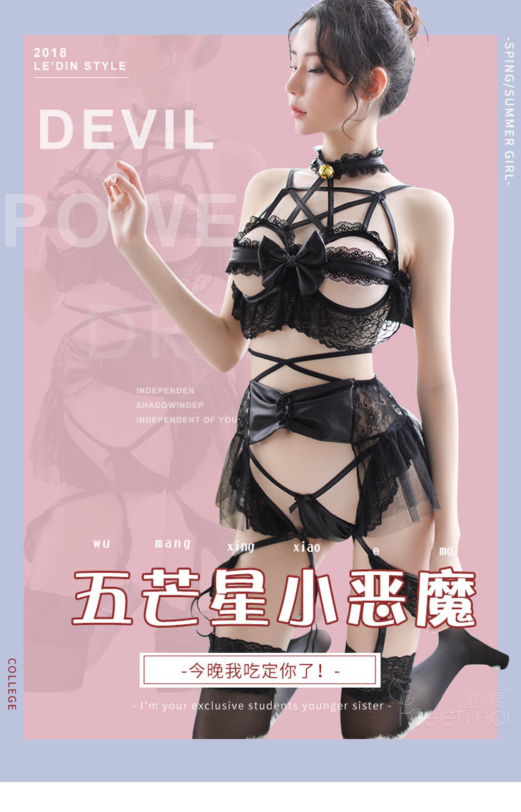 【黑暗中的精灵】情趣内衣 五芒星系列 恶魔重型装备 仿皮 露乳 三点式 翅膀 套装 7007