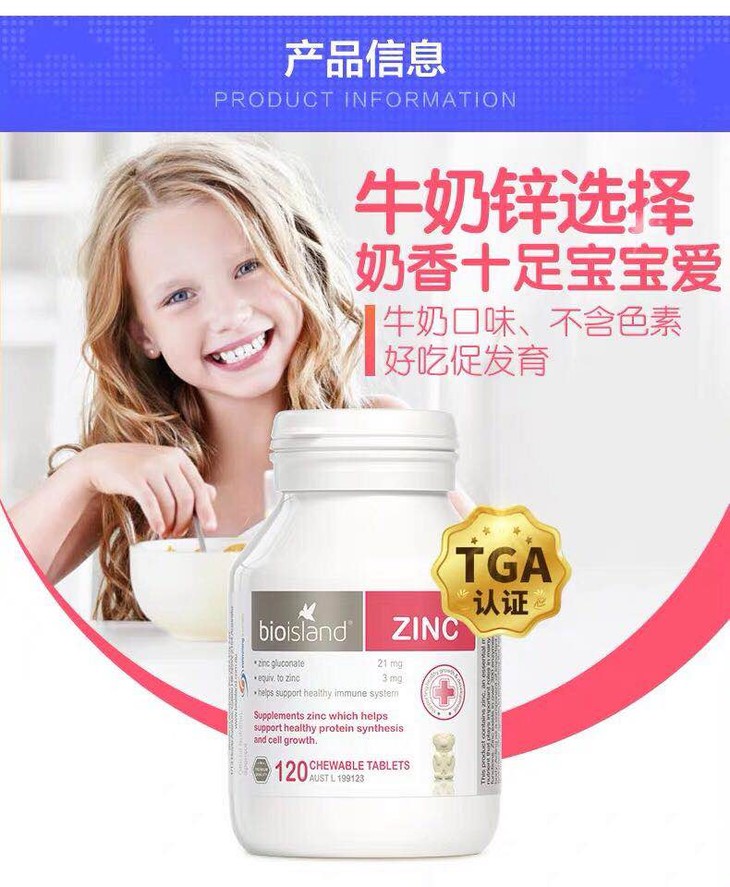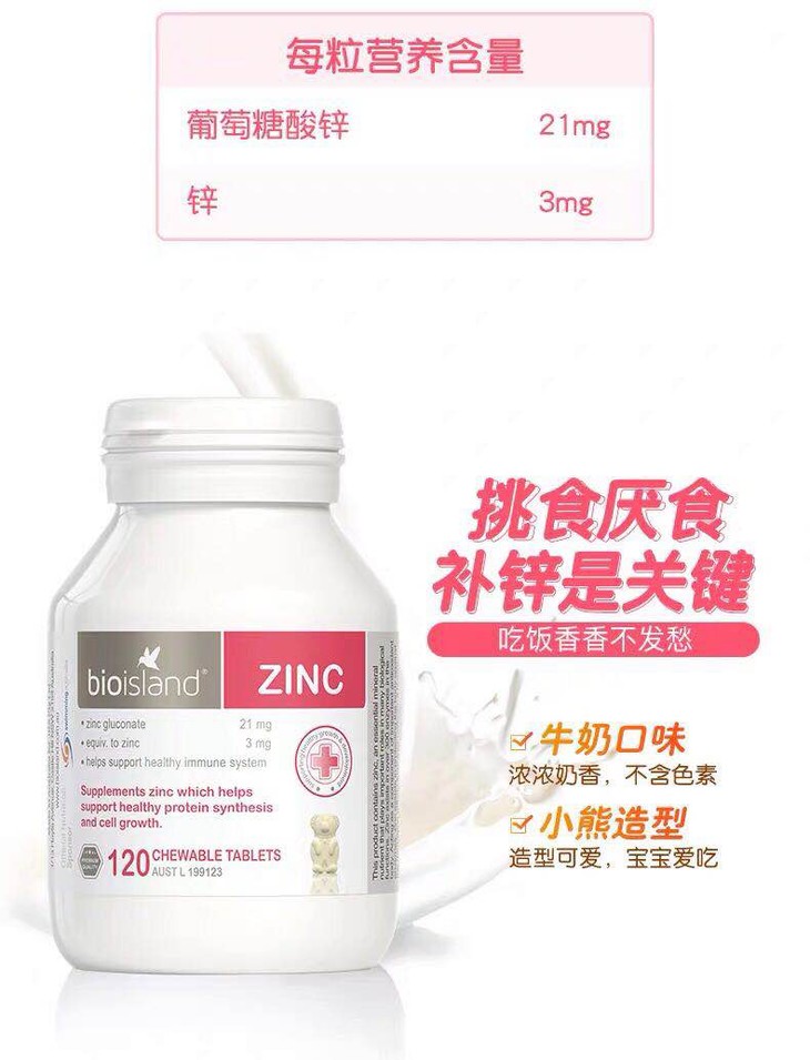 澳洲Bio island 婴幼宝宝补锌小熊咀嚼片 改善食欲120粒-会员6折