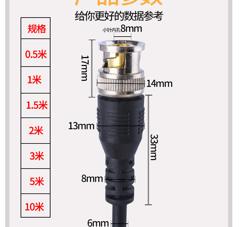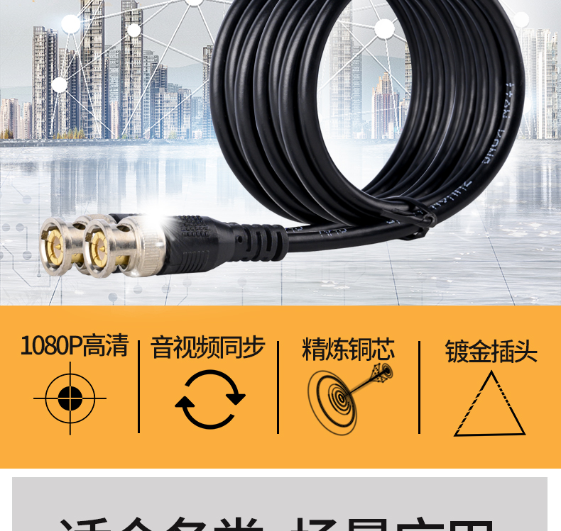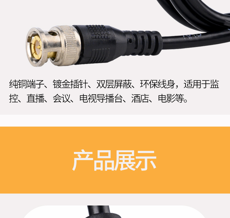 监控摄像头模拟BNC视频线同轴连接SDI成品跳线Q9头公对公延长75-3