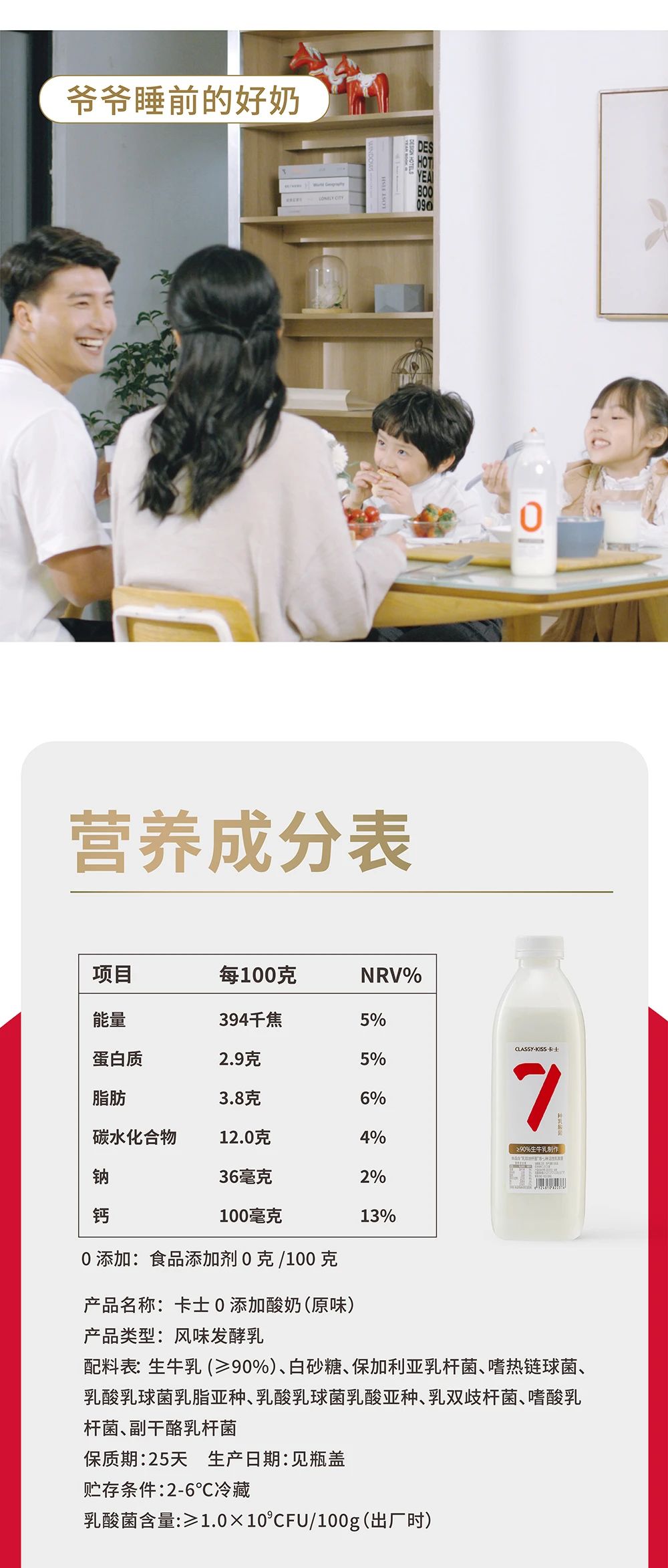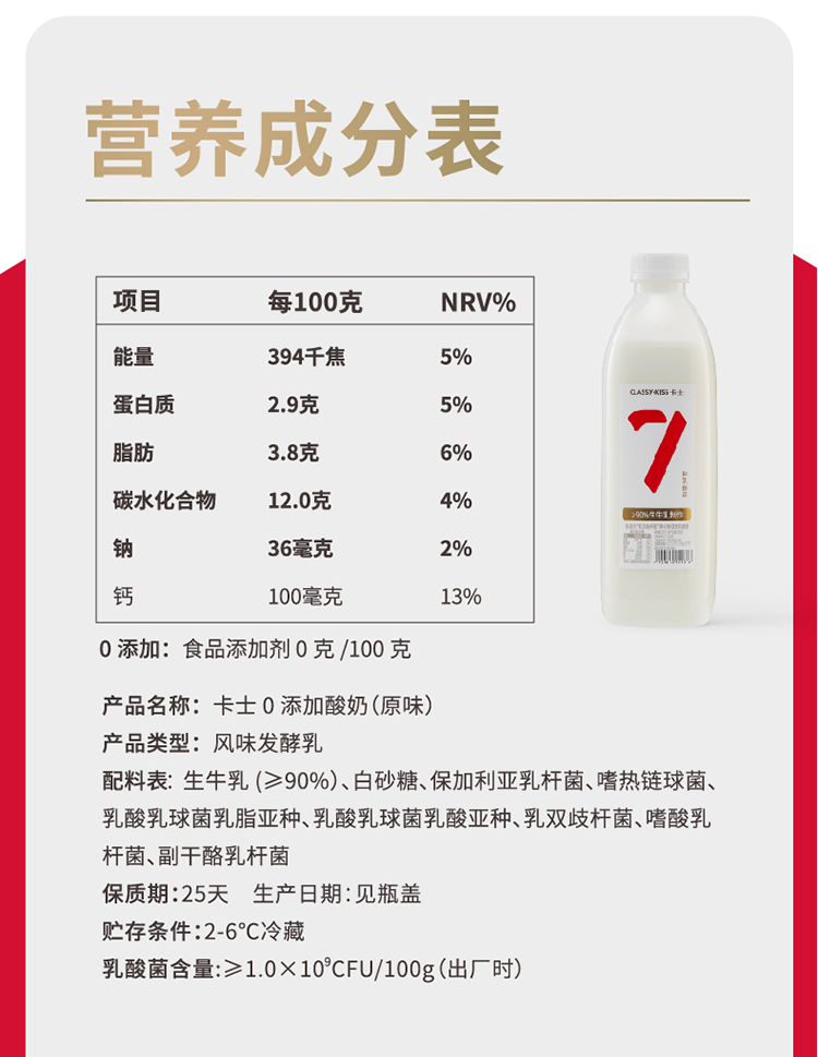 卡士0添加酸奶家庭装原味*2桶(1kg/桶)生产日期:2月7日保质期:冷藏25天