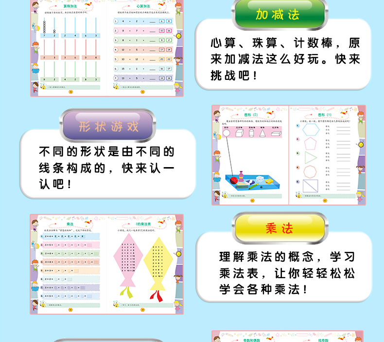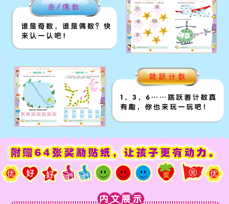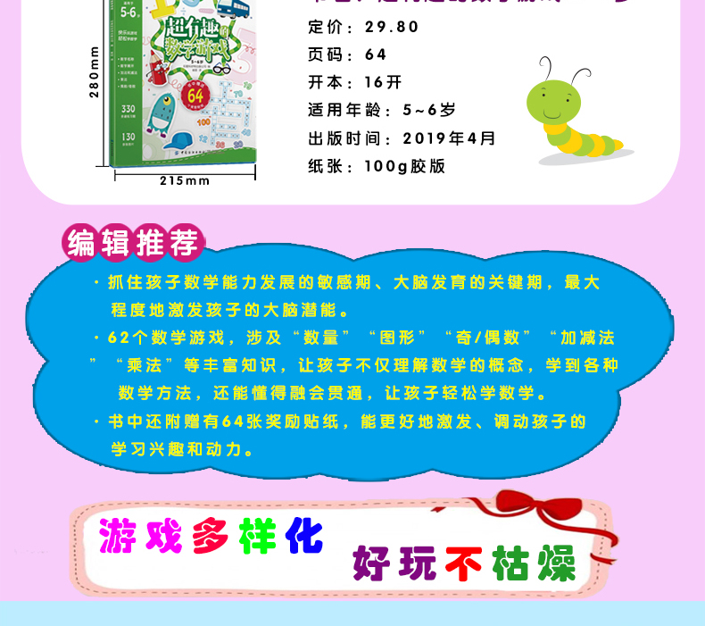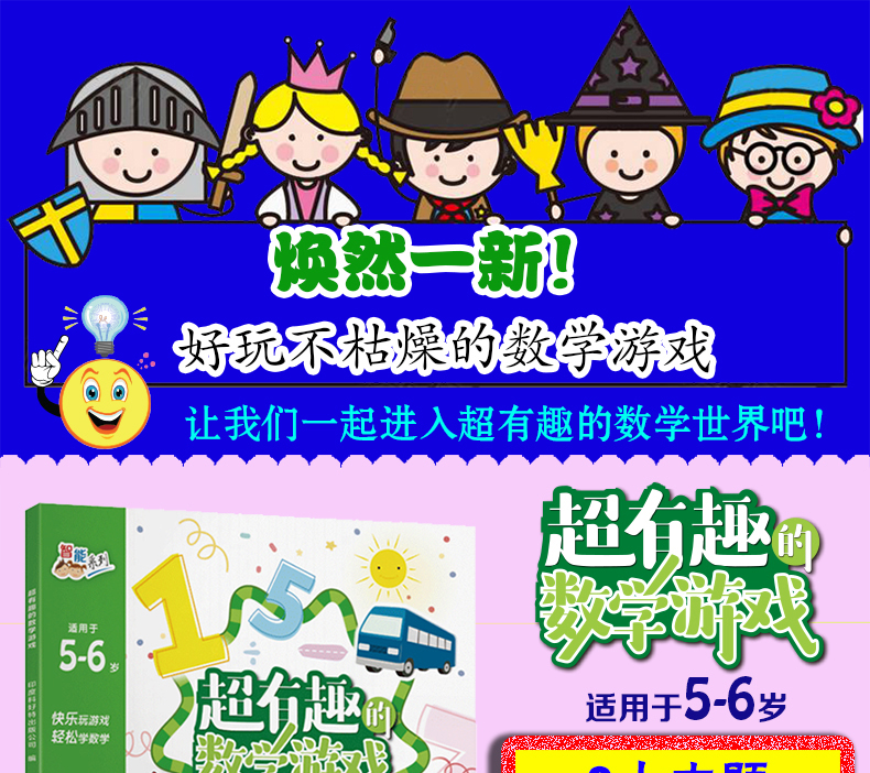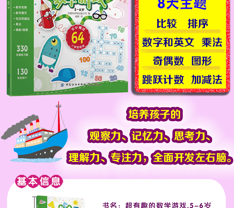 正版 超有趣的逻辑思维游戏:5-6岁儿童启蒙幼小衔接智力开发数学逻辑思维训练 比大小排序形状算数练习题 图形贴纸亲子互动游戏书