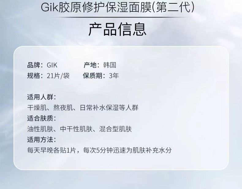 GIK·血清面膜胶原蛋白补水保湿修护(21片袋装)·gik血清面膜[21片袋装]