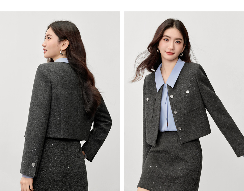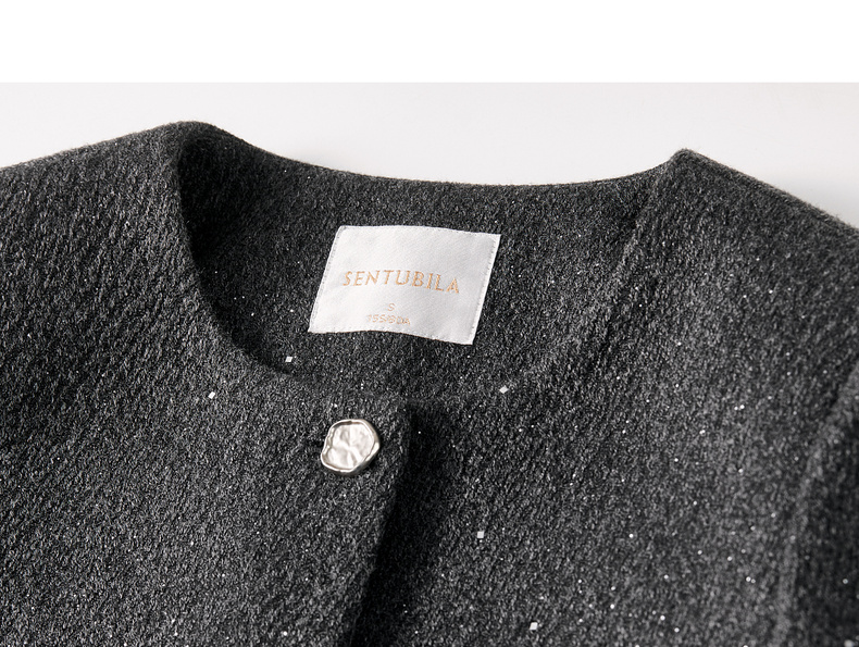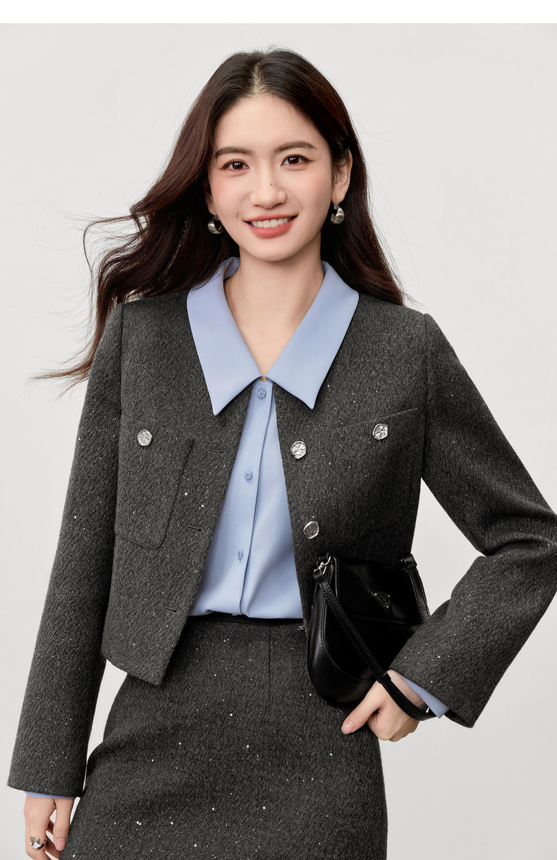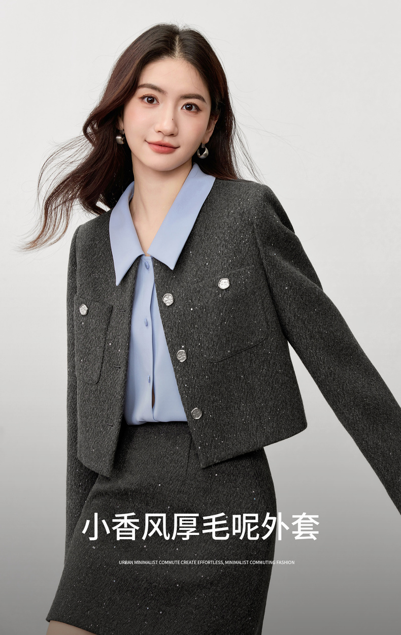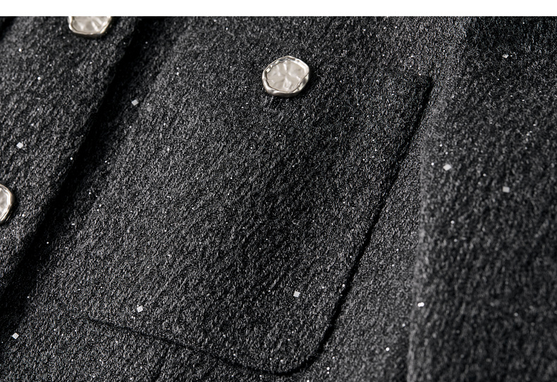 【内购】【含绵羊毛】小香风通勤圆领树皮感肌理亮片保暖厚毛呢长袖外套-153WA2012