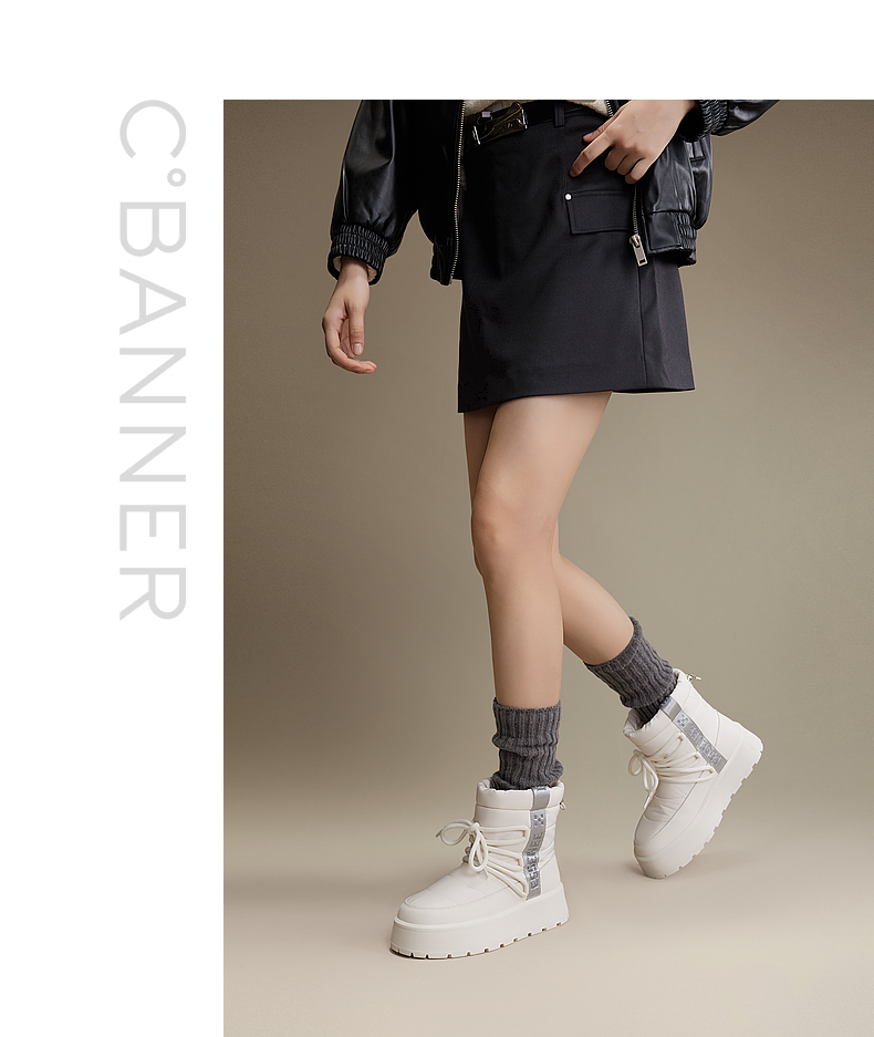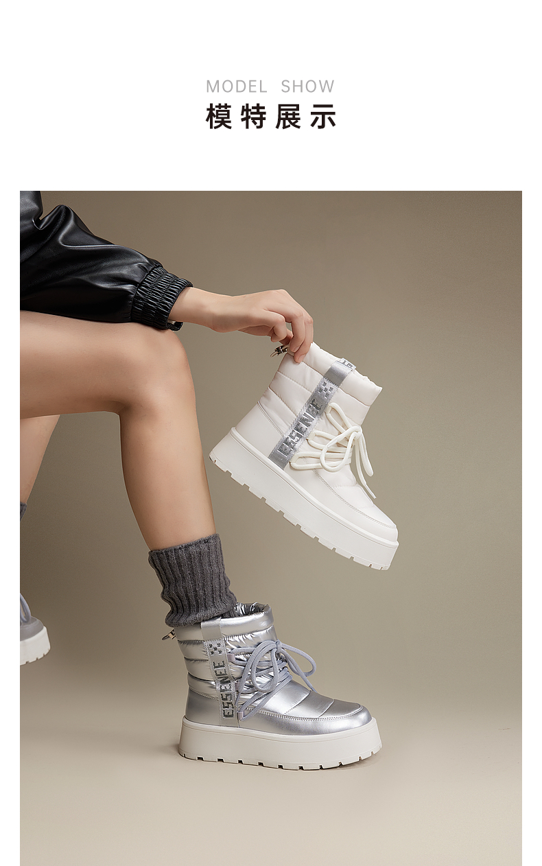 千百度厚底时尚雪地靴女款冬季棉鞋防滑暖暖靴加厚短靴子A24718583