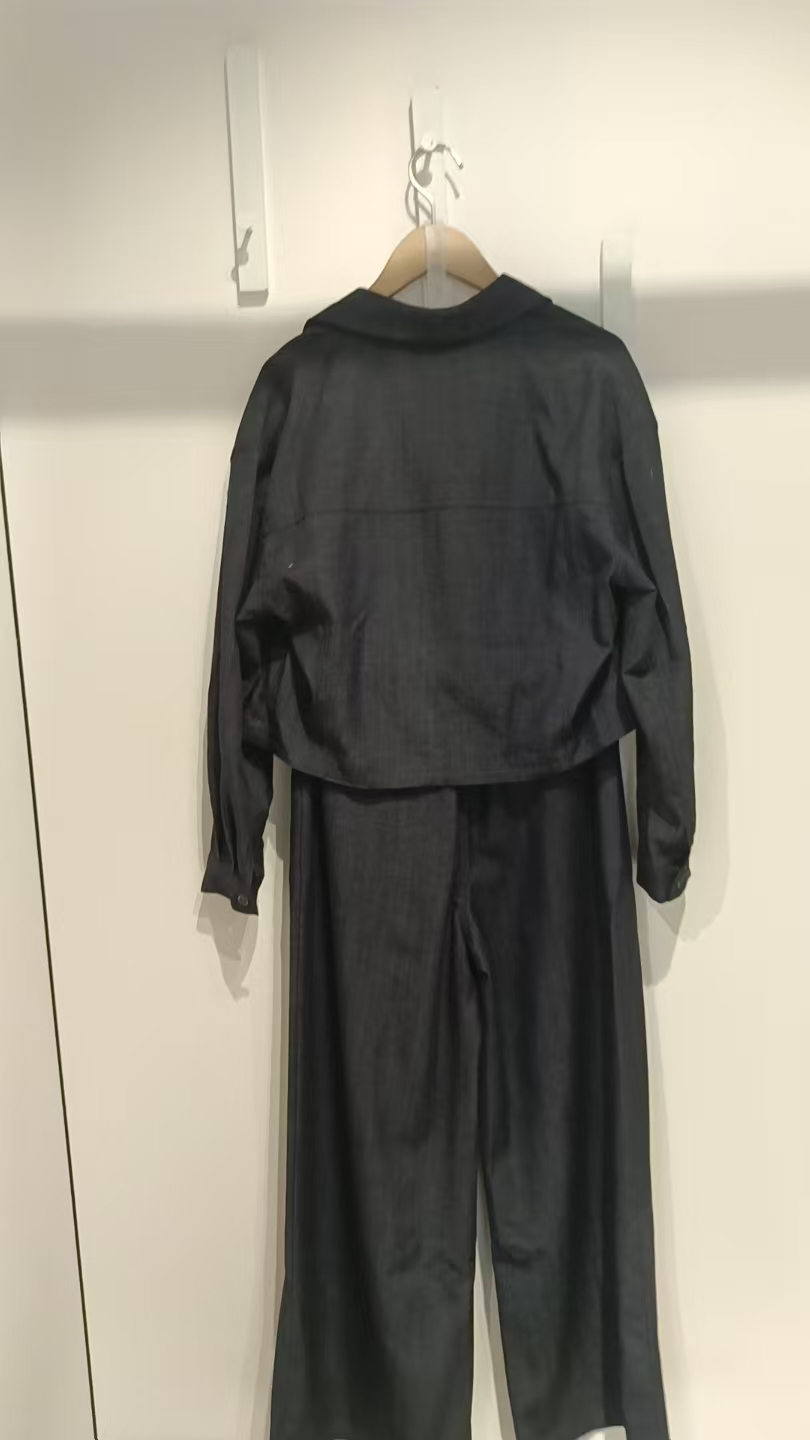 P&X设计师女装2025秋季套装长裤宽松休闲高腰阔腿裤 825314052 蓝色