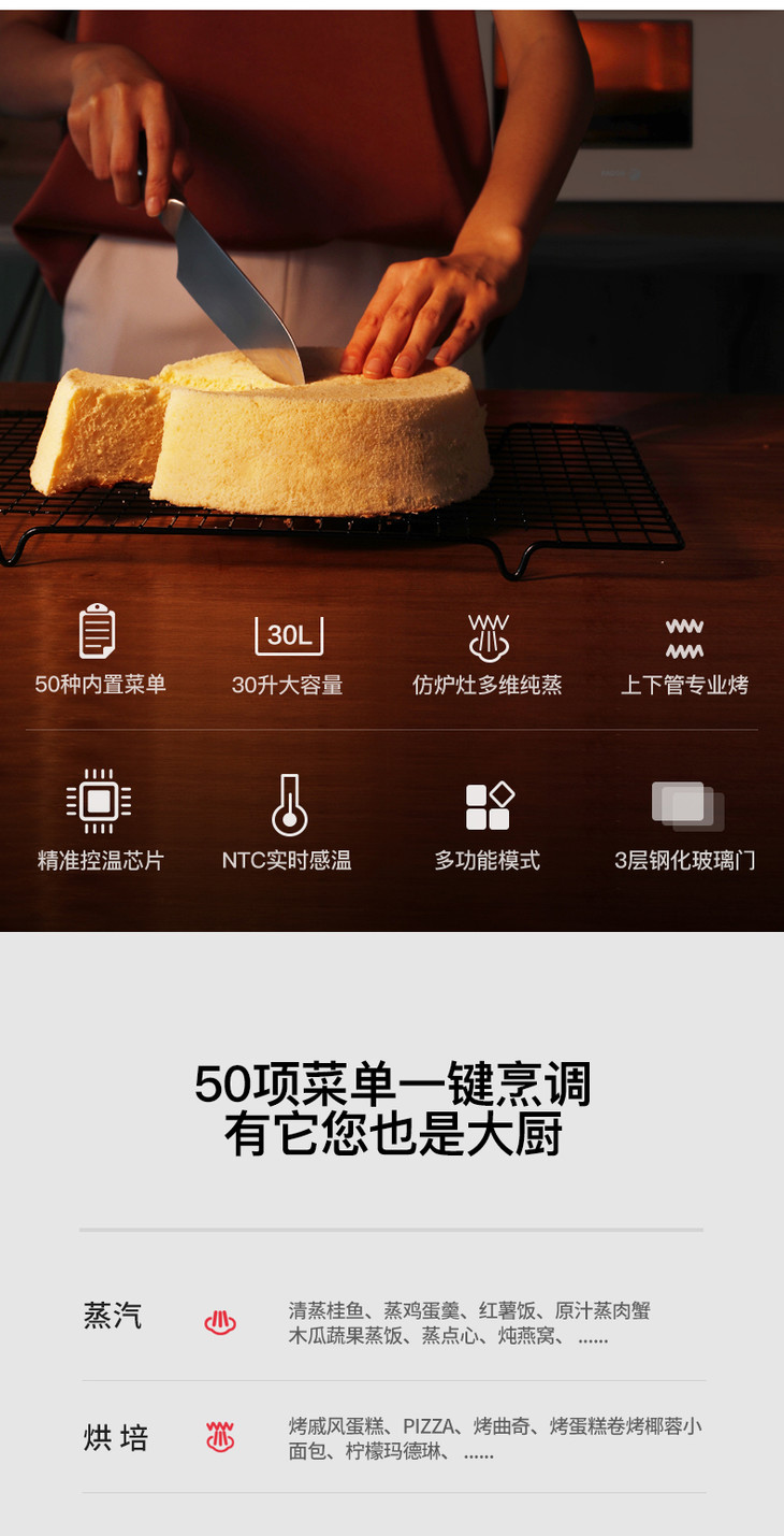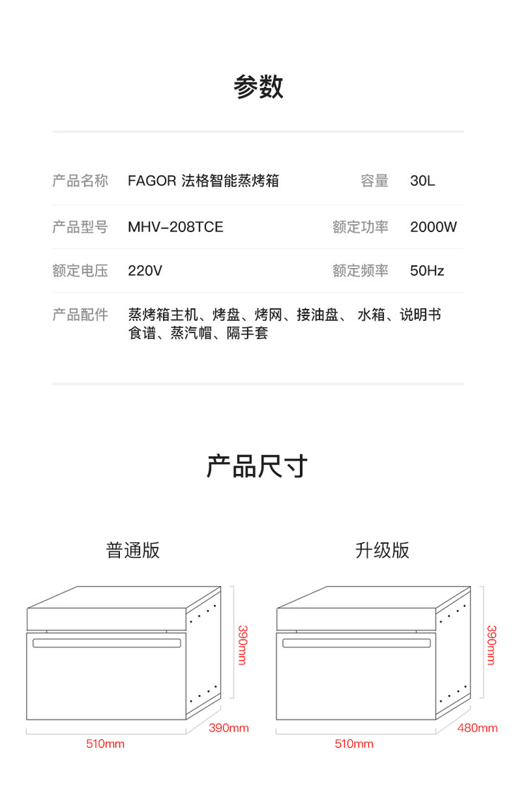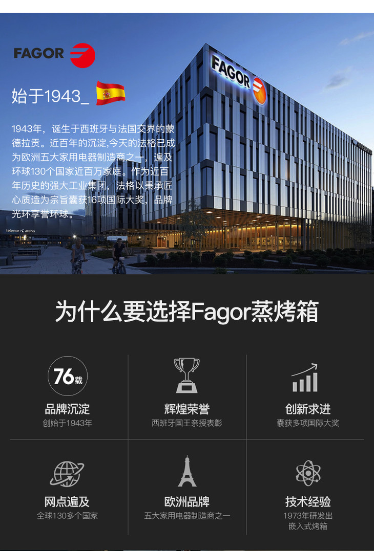 【法格】西班牙FAGOR法格智能蒸烤箱家用一体机台式嵌入式二合一电烤箱