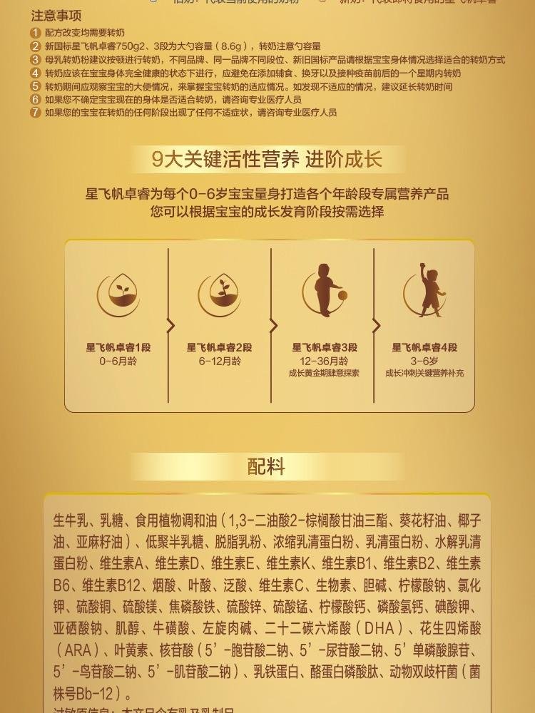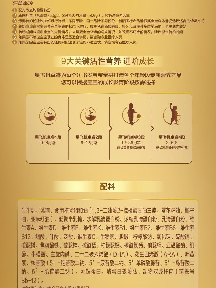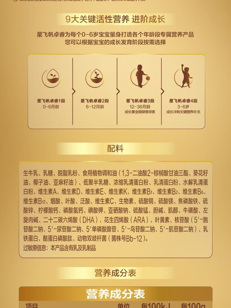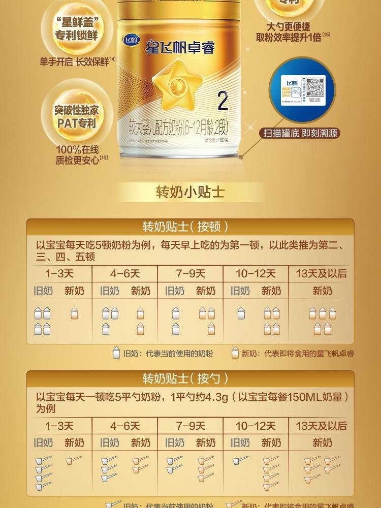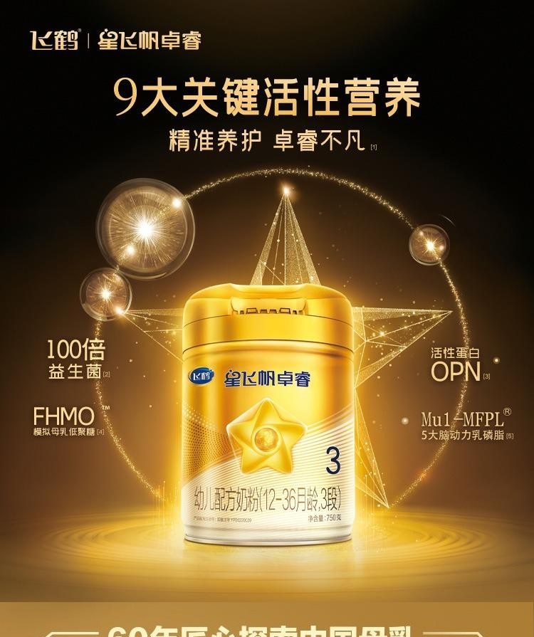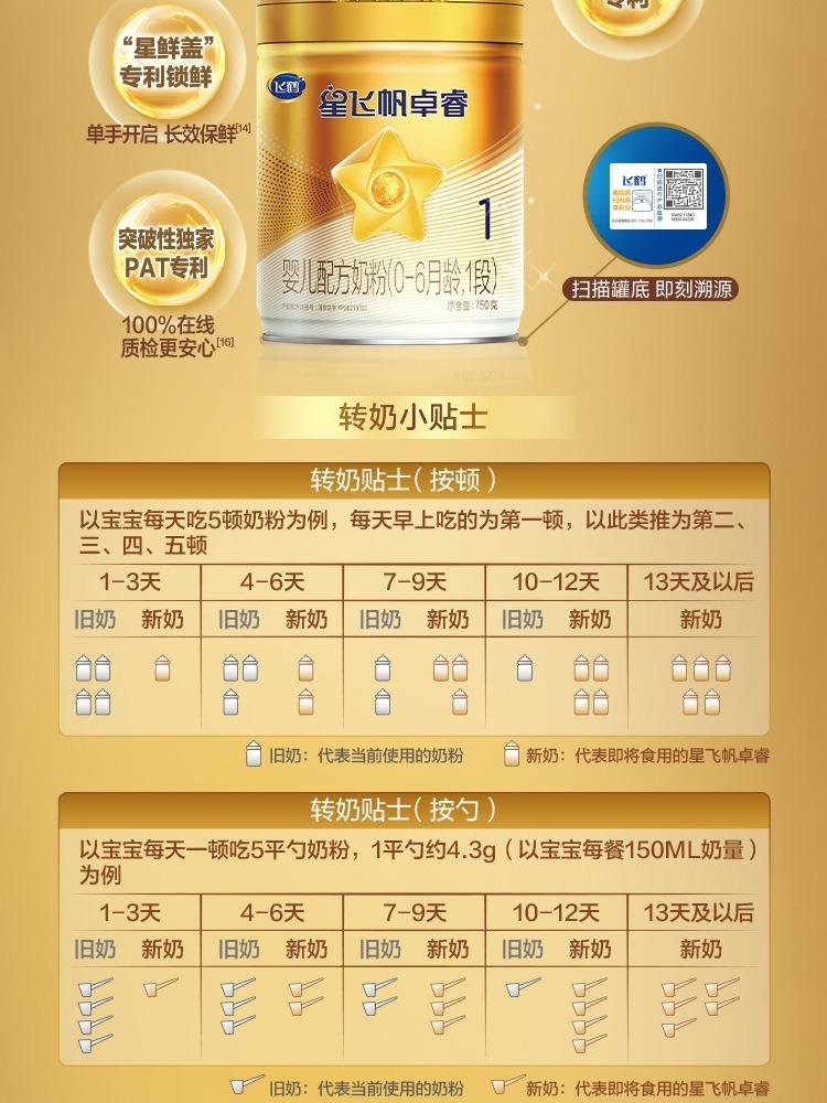 飞鹤星飞帆卓睿1-3段婴儿配方奶粉听装750g【FH】★