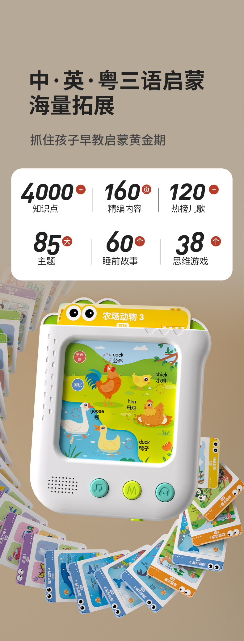 火火免逻辑思维训练机3-8岁学习中英粤三语益智早教插卡点读玩具