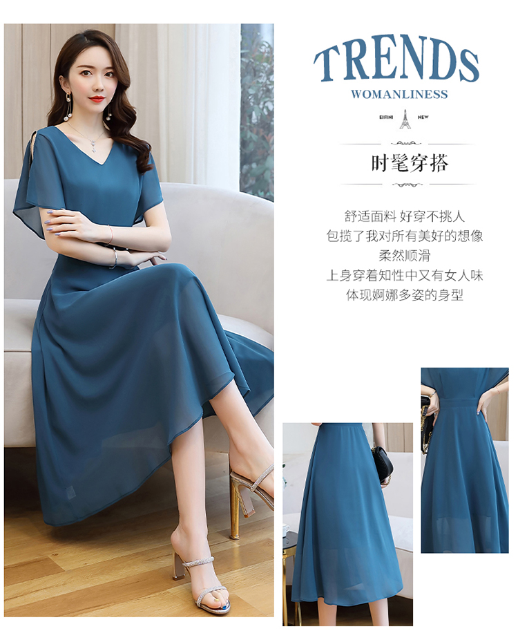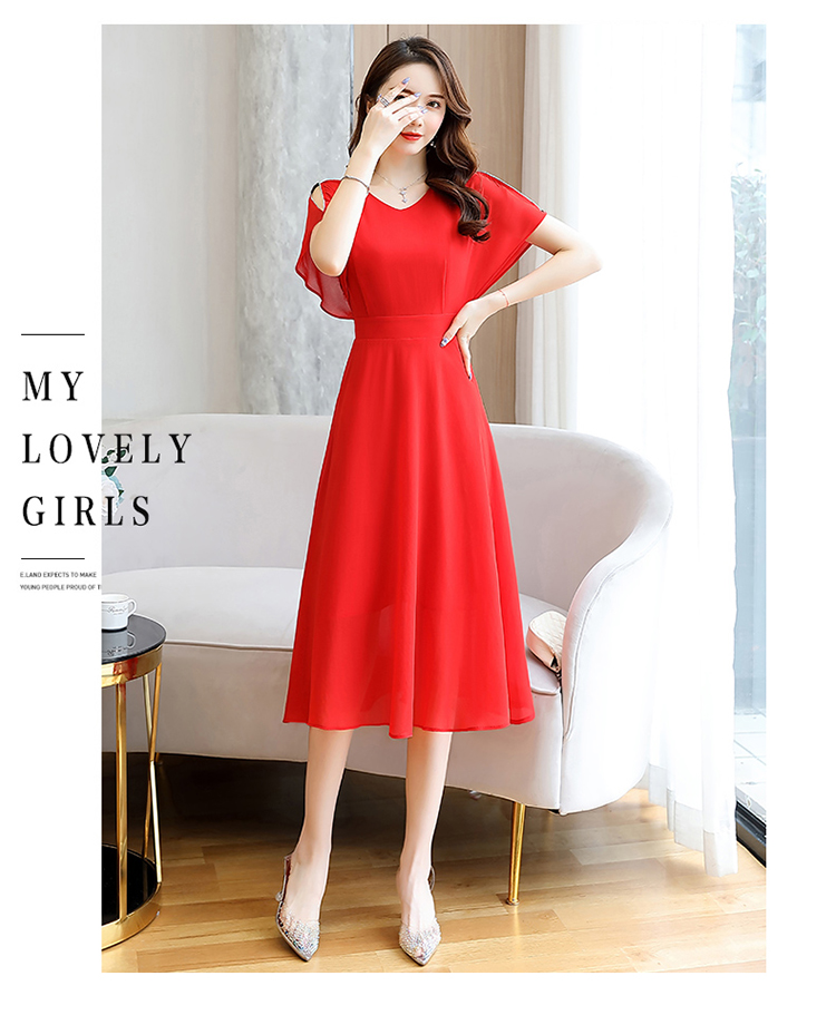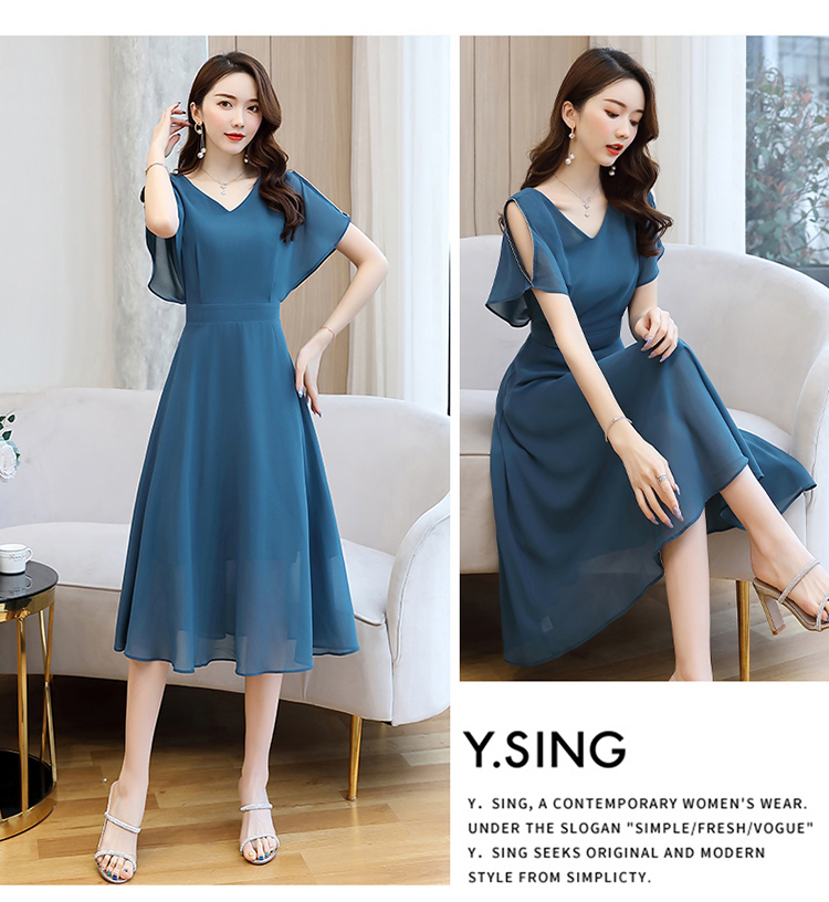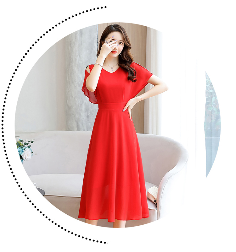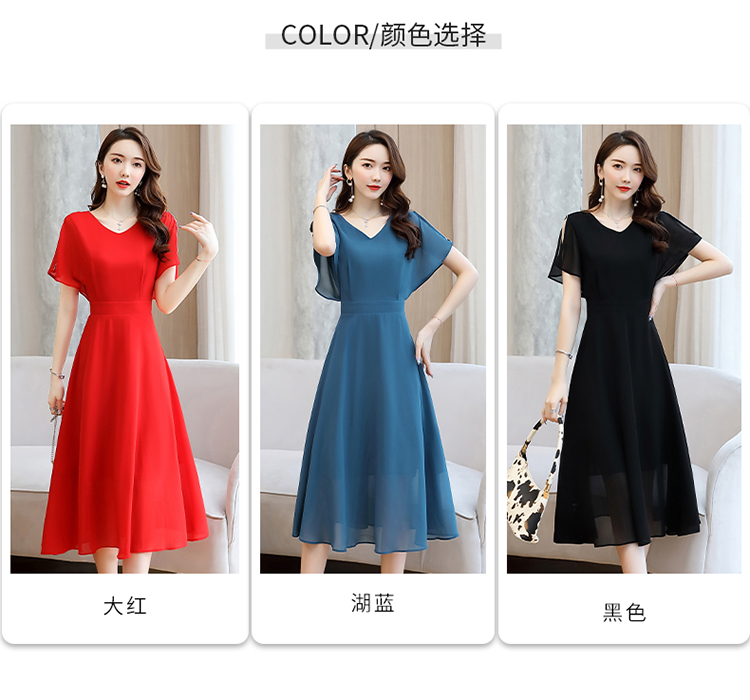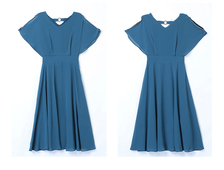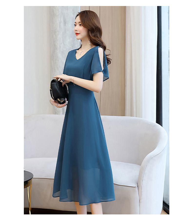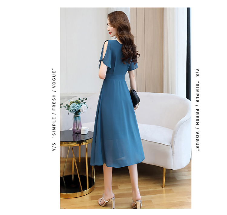 通勤时尚纯色,V领露肩连衣裙HR-YBX2020