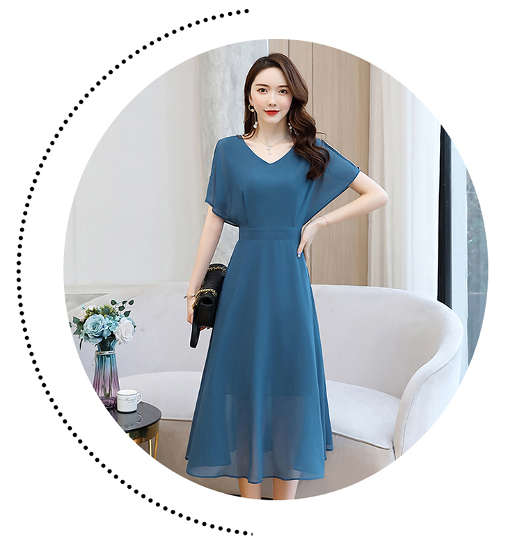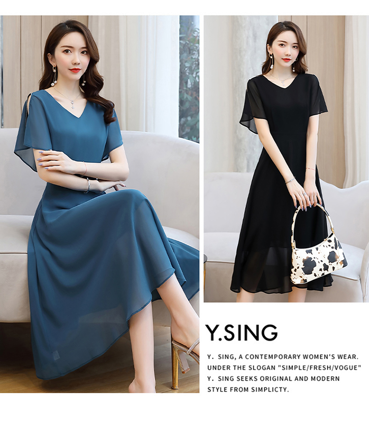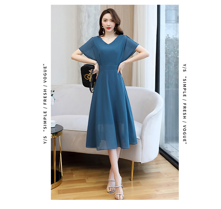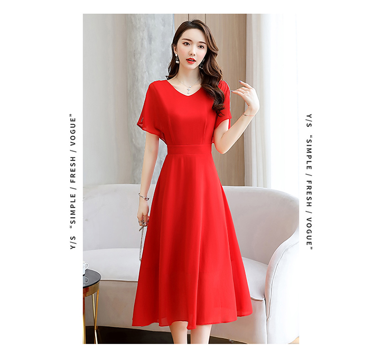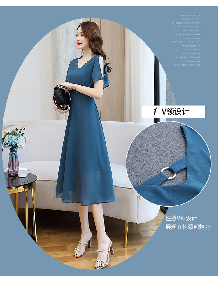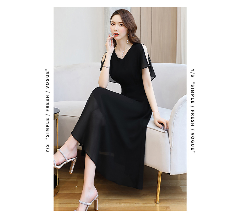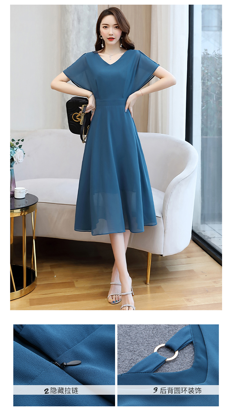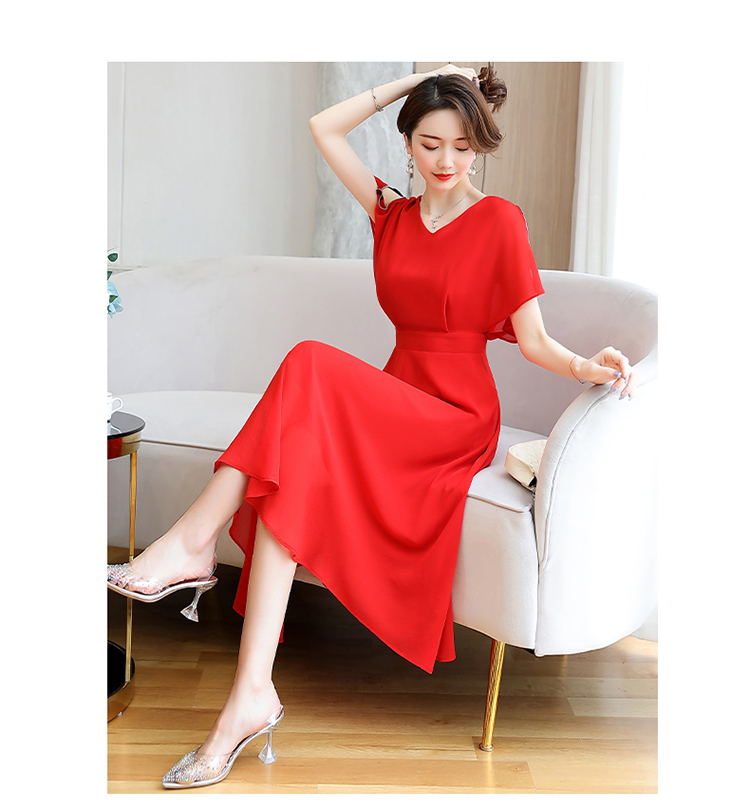 通勤时尚纯色,V领露肩连衣裙HR-YBX2020