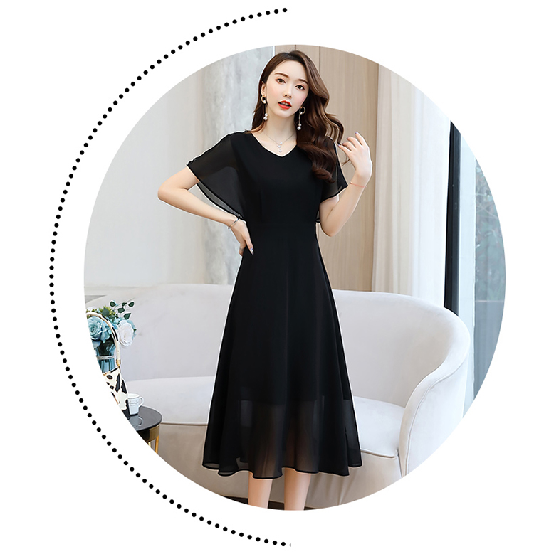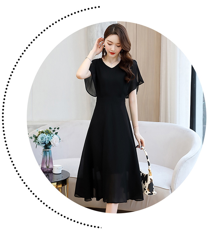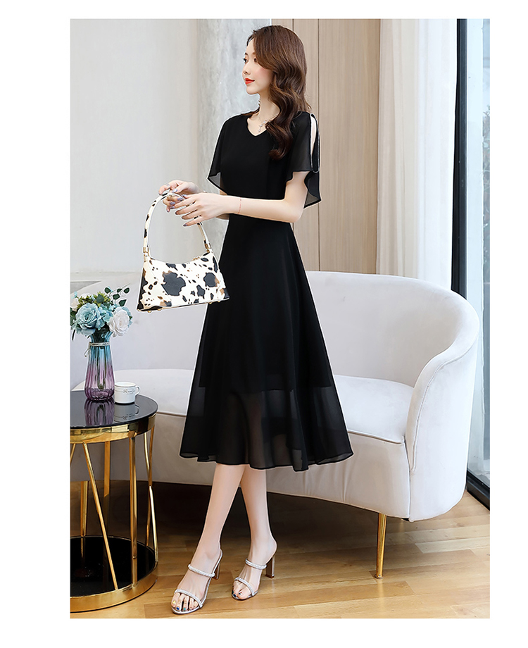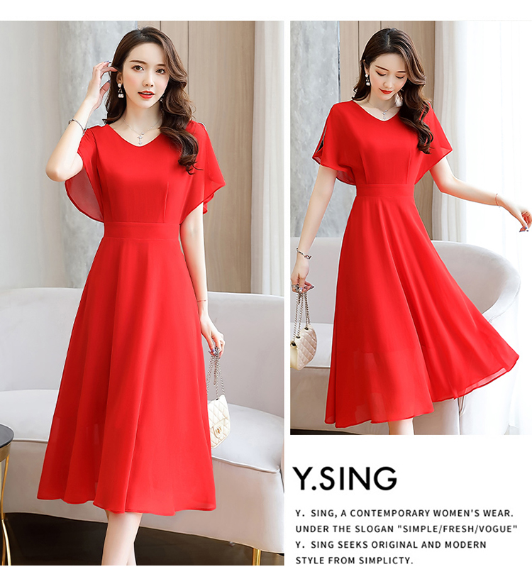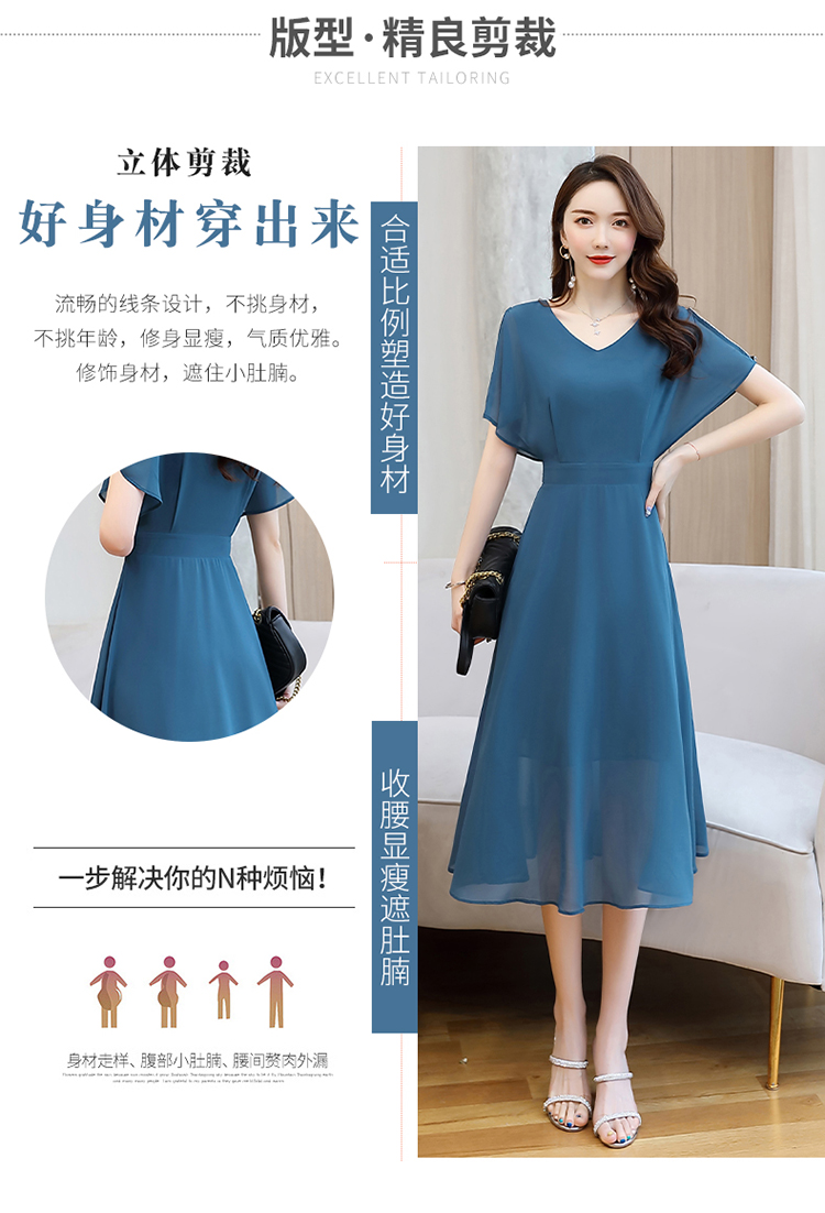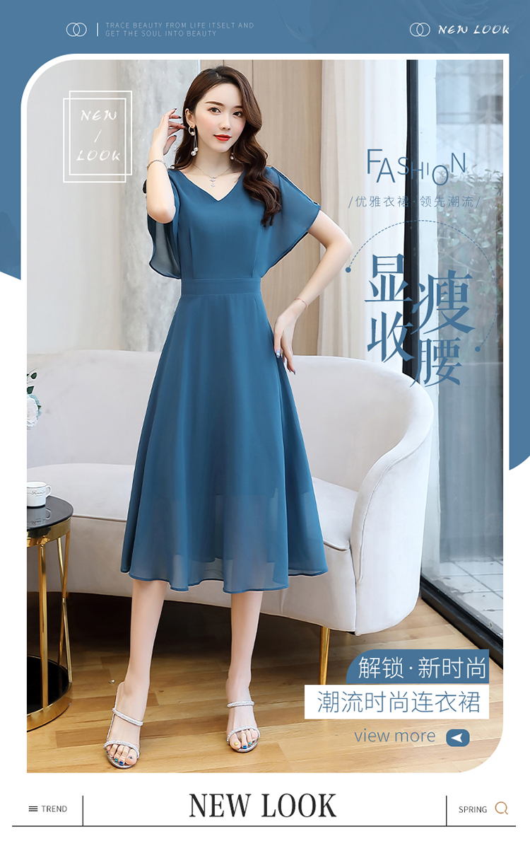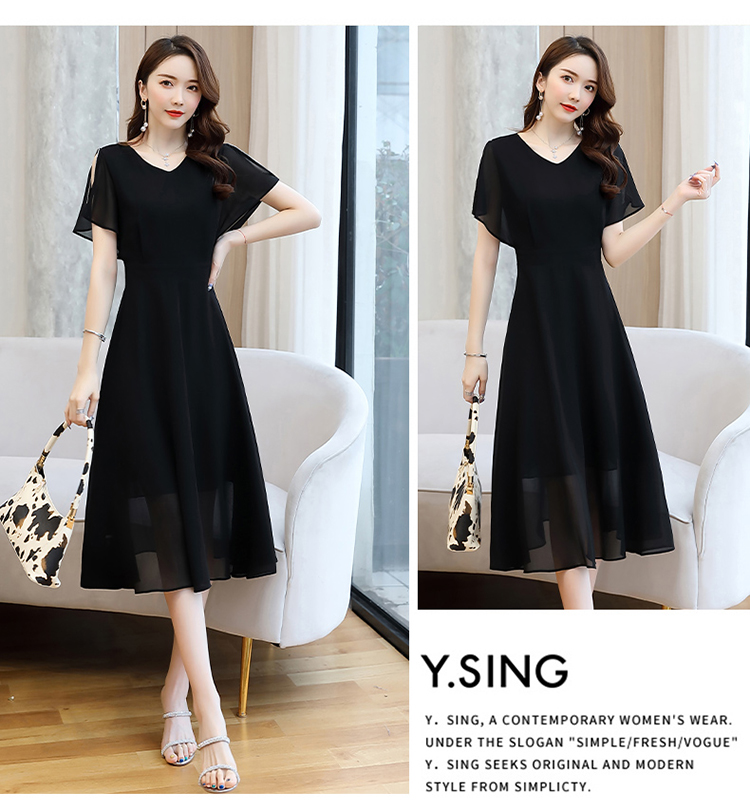 通勤时尚纯色,V领露肩连衣裙HR-YBX2020