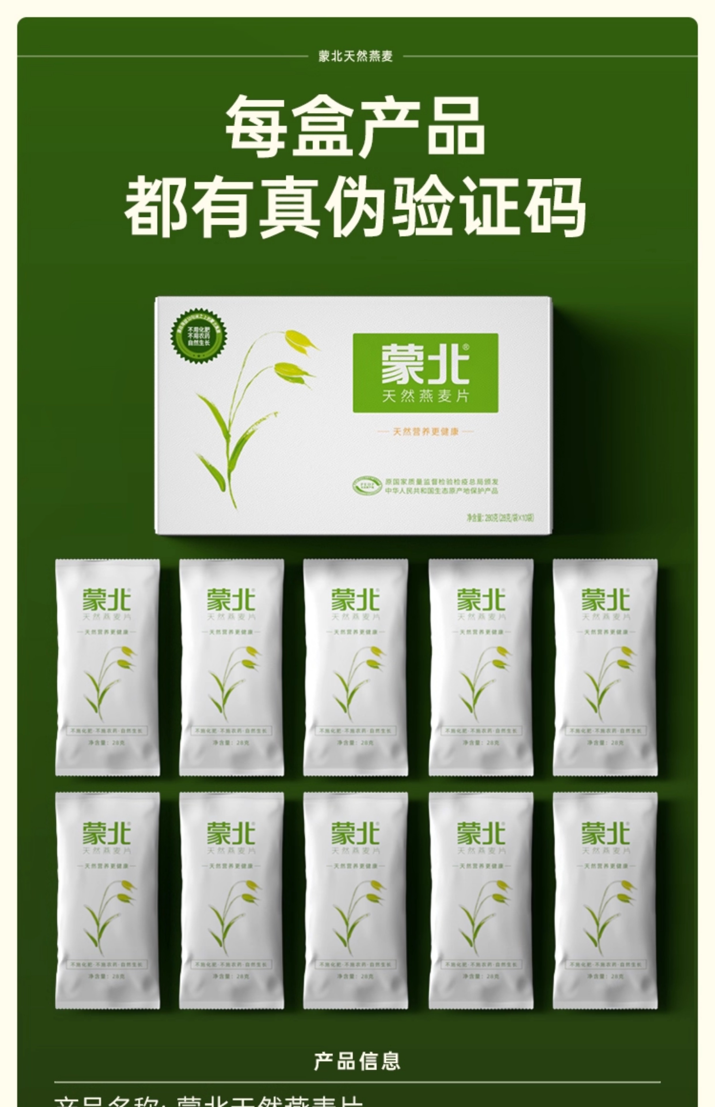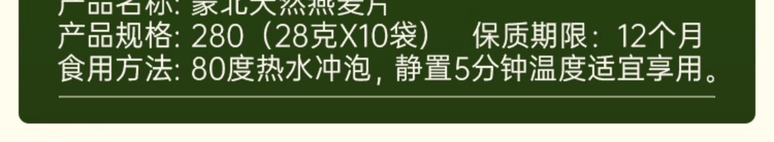 蒙北天然燕麦片 大雪花有机燕麦早餐代餐280g*2盒