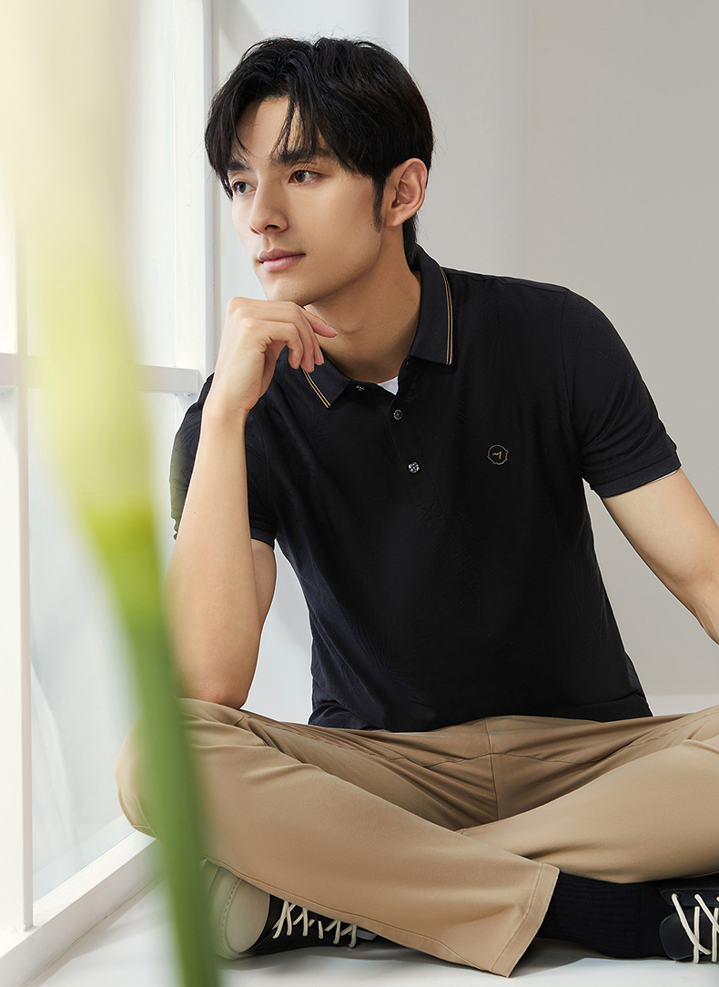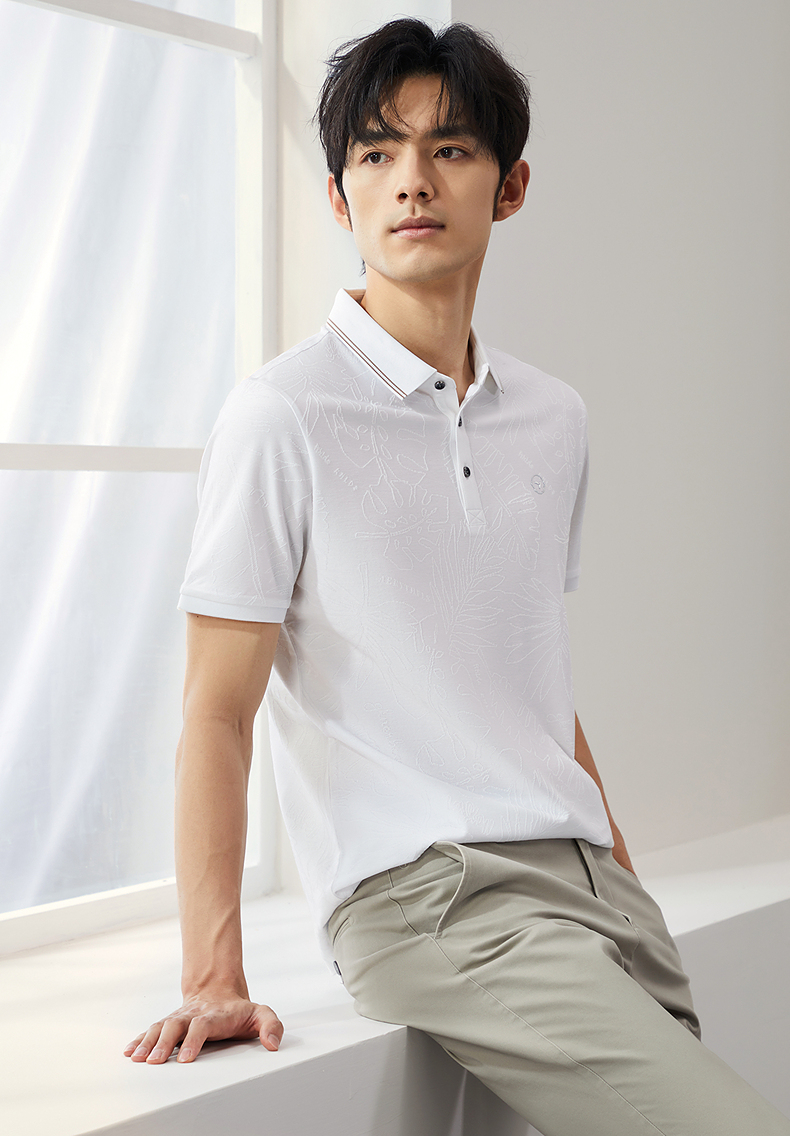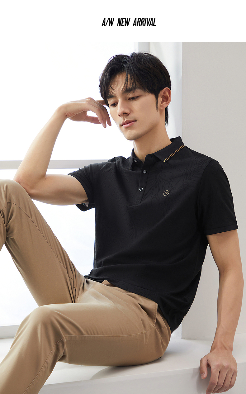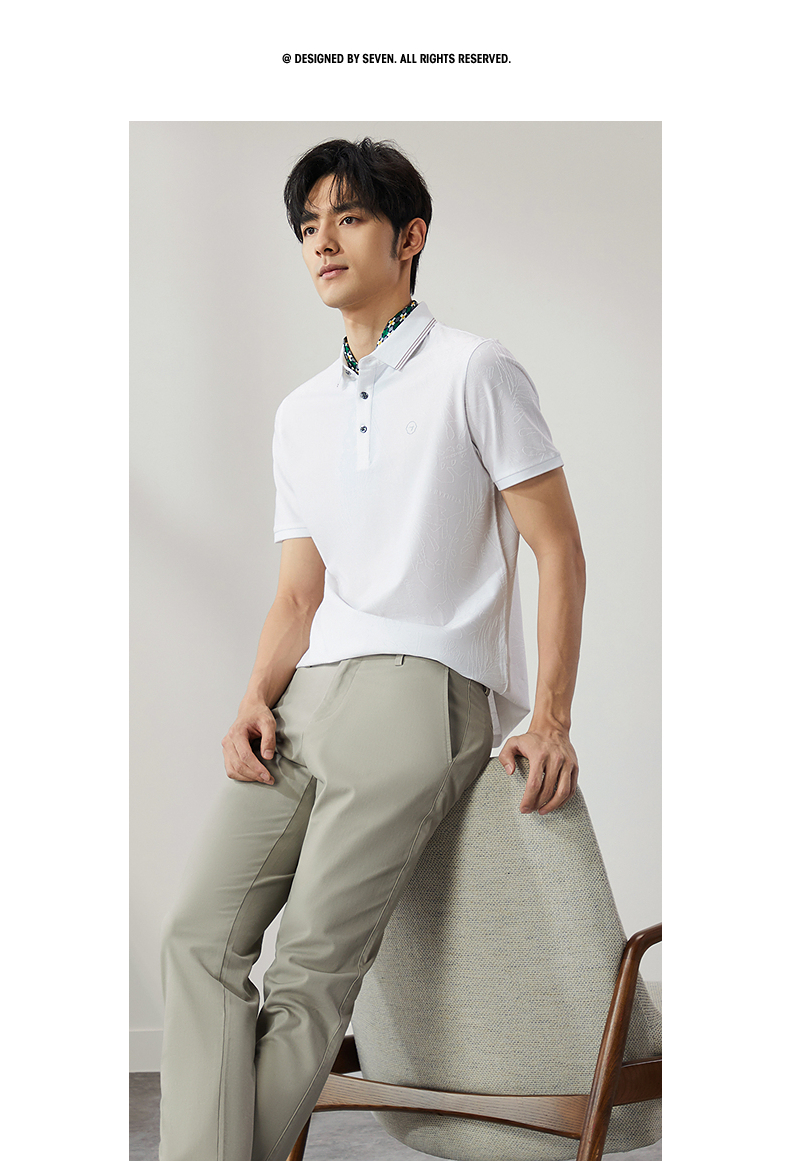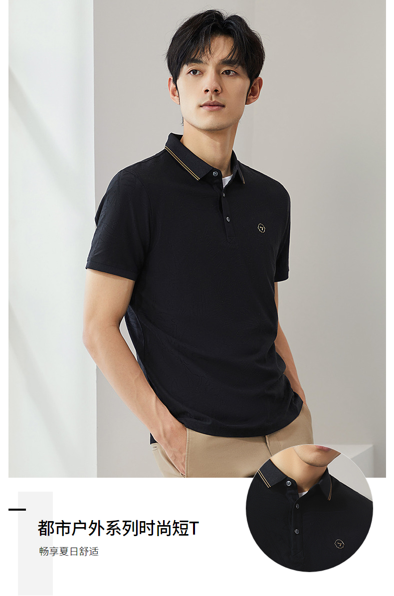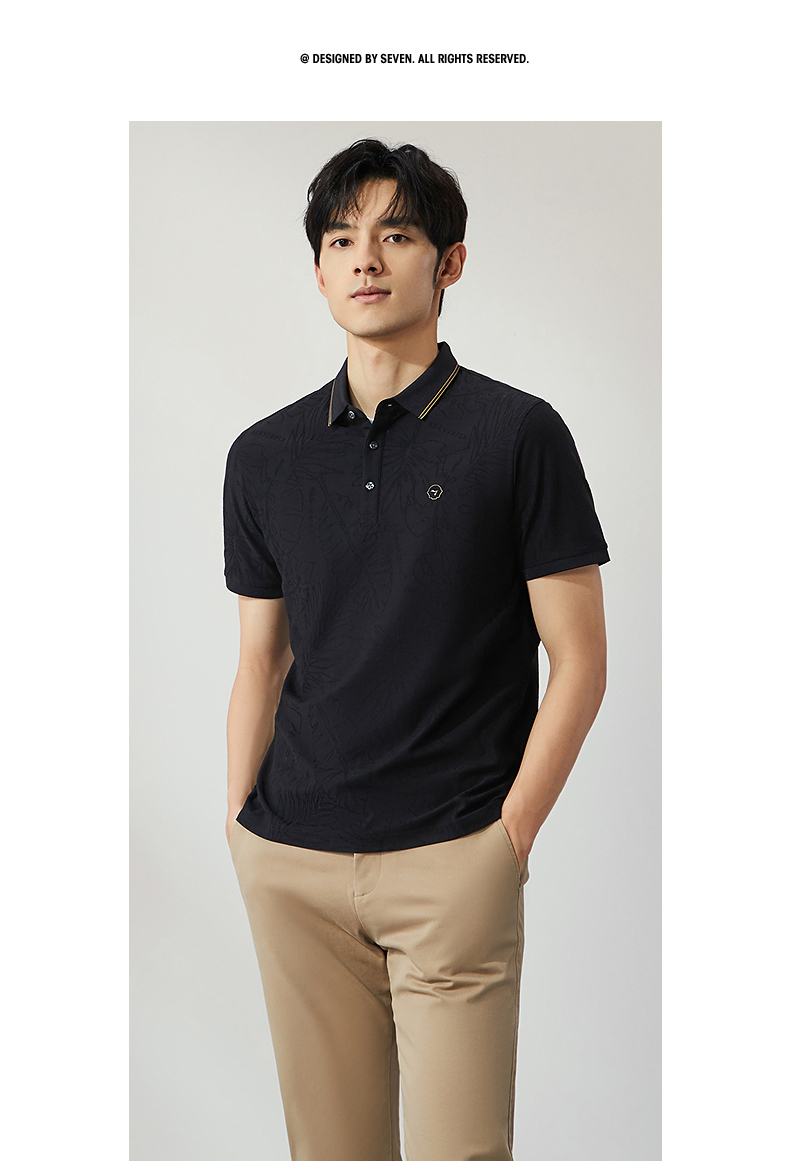 【特价】【不变形领】【凉感索罗纳】柒牌男士短袖polo衫2024夏季新款满身提花翻领上衣 126T73550