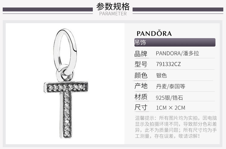 PANDORA/潘多拉 时尚气质字母串饰T字母 791332CZ