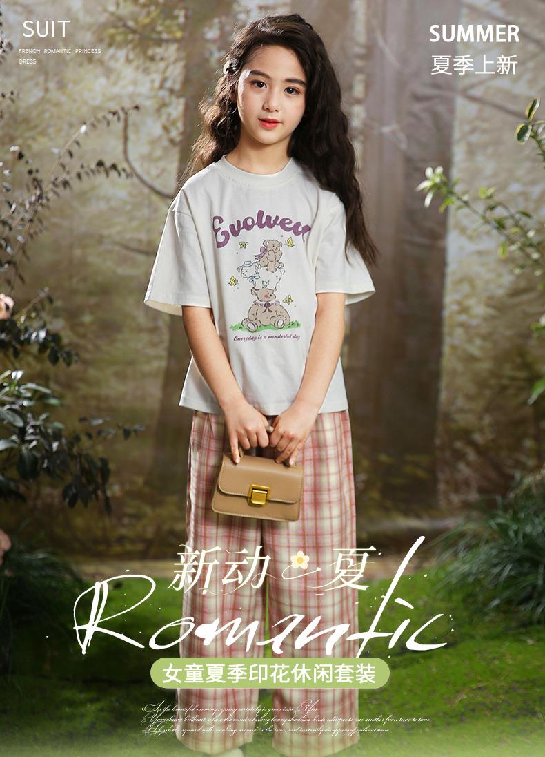 女童T恤套装夏款洋气2023新款女大童夏季短袖裤子儿童夏装两件套