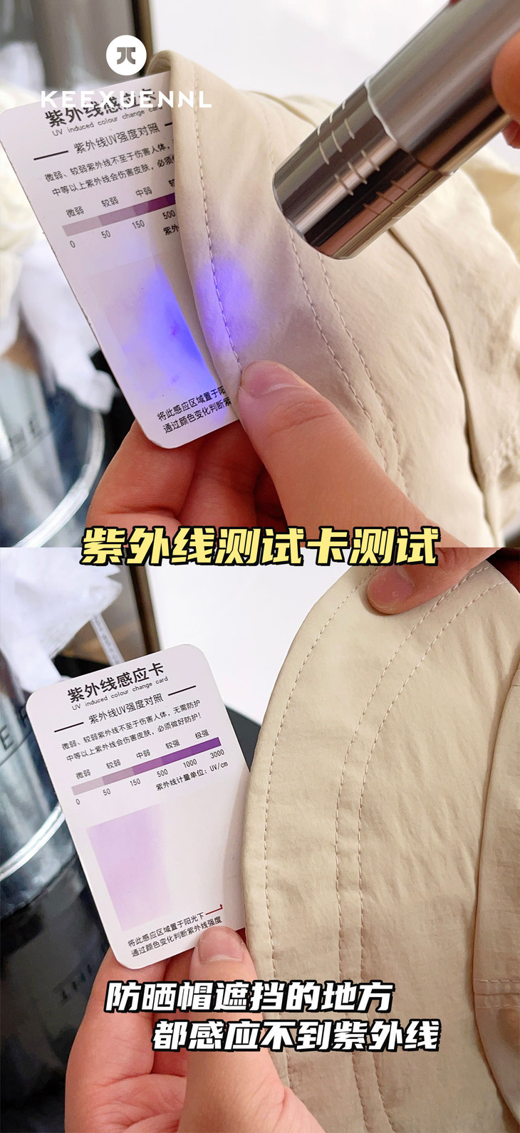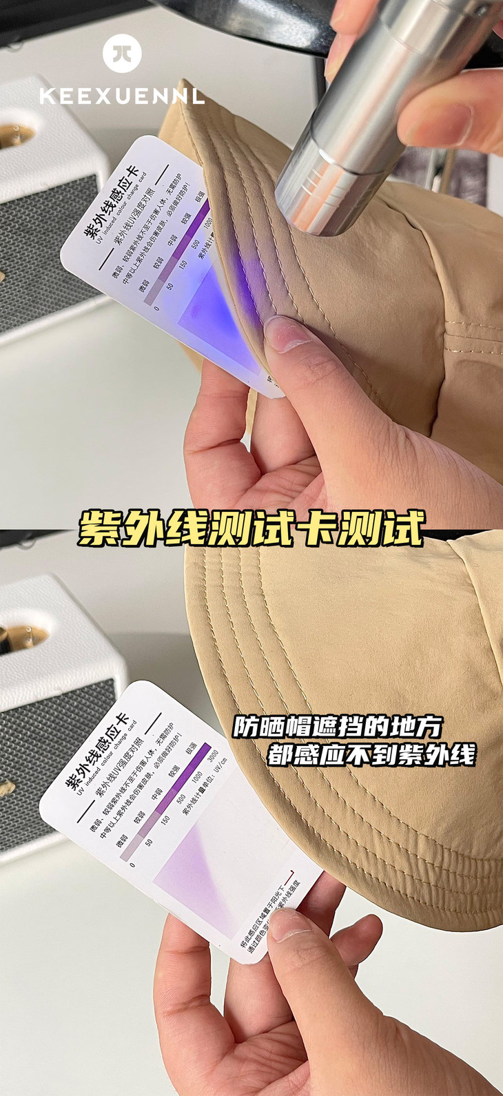 ✅UPF50+ UVA3.63 可阻挡99%的紫外线! 真正能达到国家防晒要求的防晒帽! 还这么好看的市场真的不多见!!! 样品紫外线测试卡测试👇