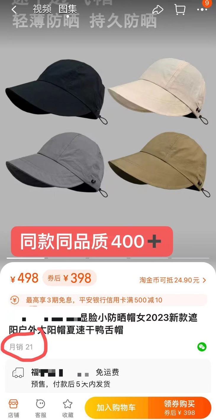 蕉*防晒帽质量好,谁都知道 但.......团购蕞低也得150+,不便宜! Keexuennl珂宣尼韩版骑行帽 赵露思同款! 真的很好看啊!!! 一顶=高倍防晒+清凉透气+时尚 戴上脸立马小一圈!超有ins博主氛围感! 与蕉*下同面料同色卡同工艺同工厂❗ 除了品牌,其他完全一mo一样!!! 没有品牌溢价!!! 400+的高品质防晒帽39.9元开团 ⚠0.1元再换购凉感防晒口罩