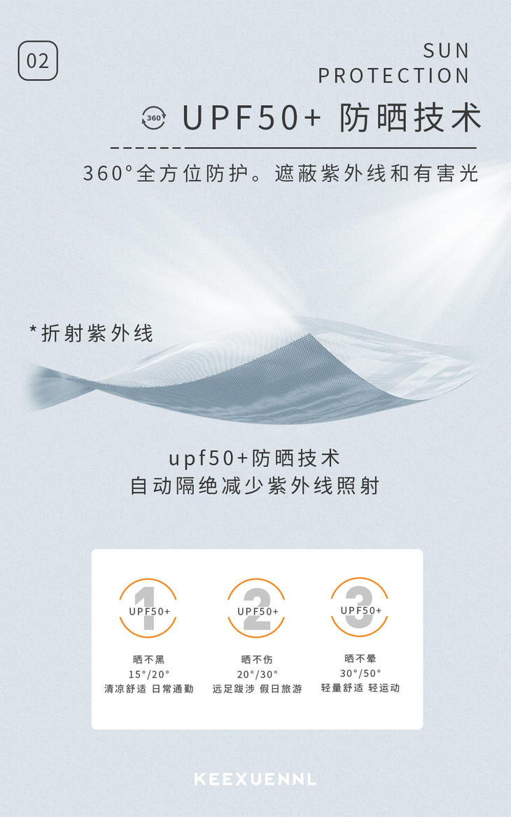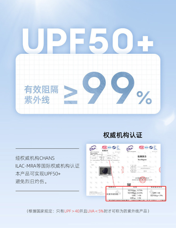 ⚠检测报告 upf50+防晒技术 自动隔绝减少紫外线照射 360°全方位防护