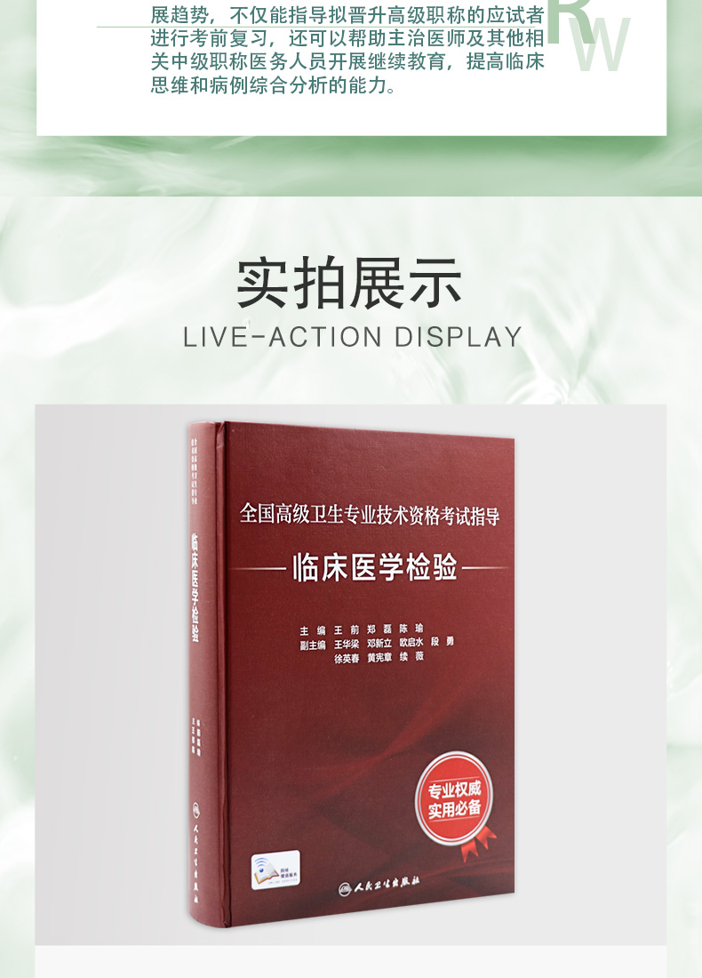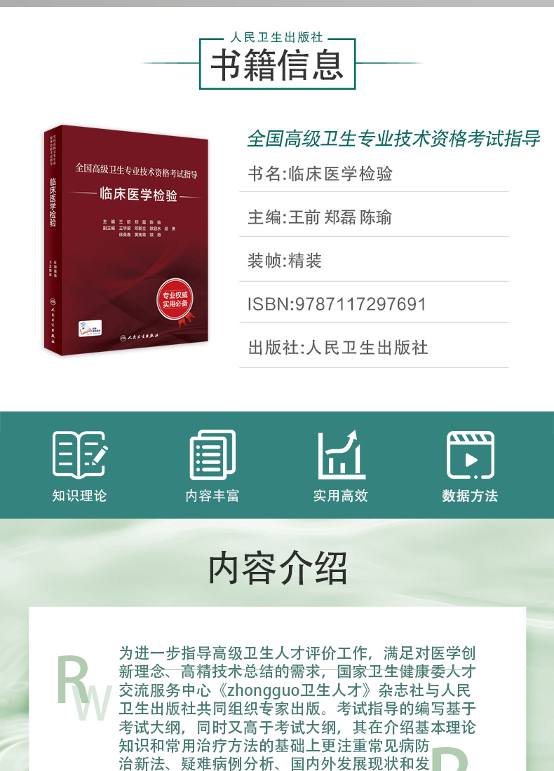 全国高级卫生专业技术资格考试指导 临床医学检验 王前 郑磊 陈瑜 主编 2022高级技术考试分析 人民卫生出版社9787117297691