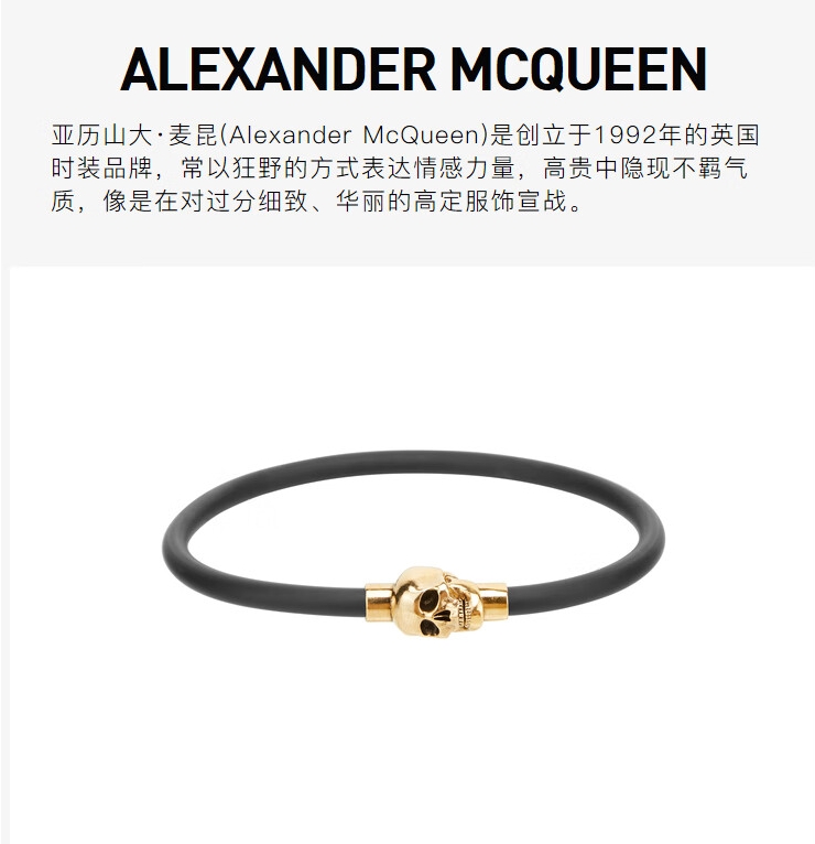 ALEXANDER MCQUEEN 亚历山大麦昆 情侣款金色骷髅手链 七夕礼物 黑色 705846 1AAIL
