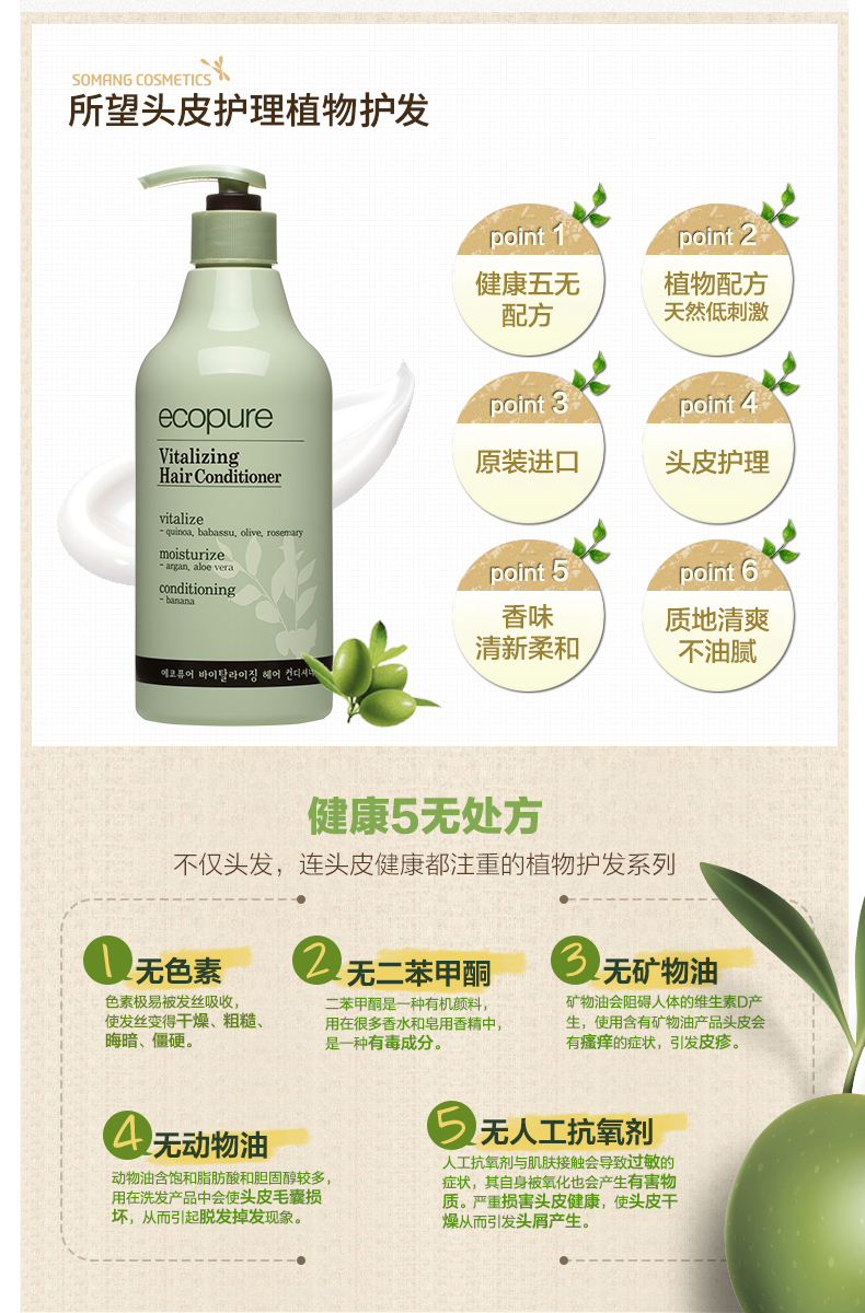 所望(SOMANG)植物活力滋养护发素500ml(营养顺滑 抚平毛躁 韩国进口)