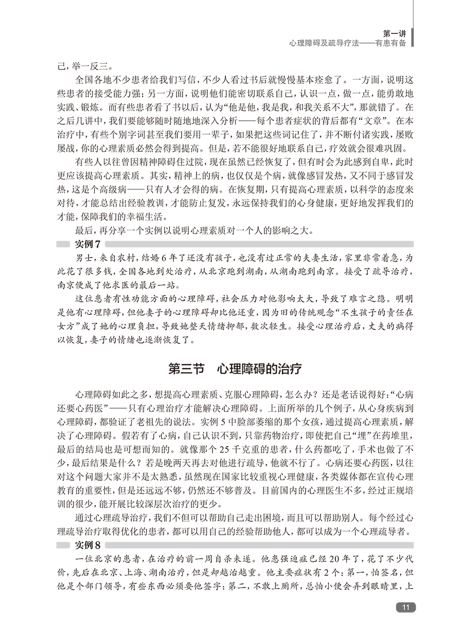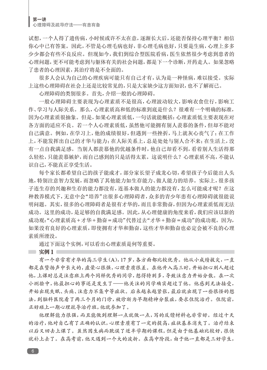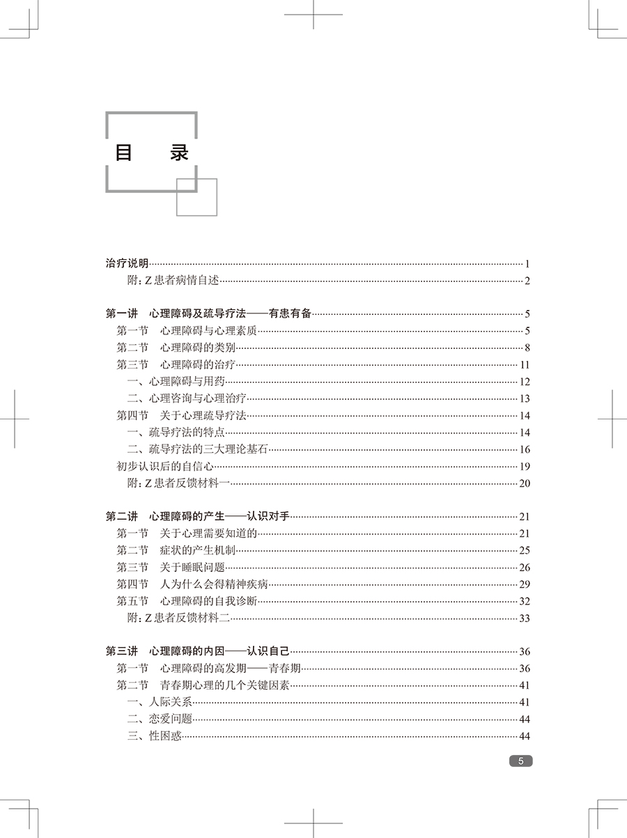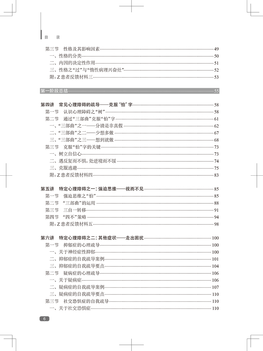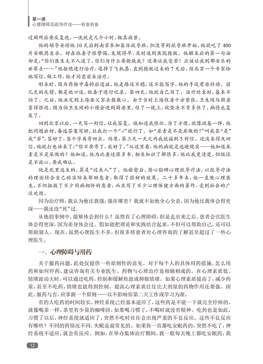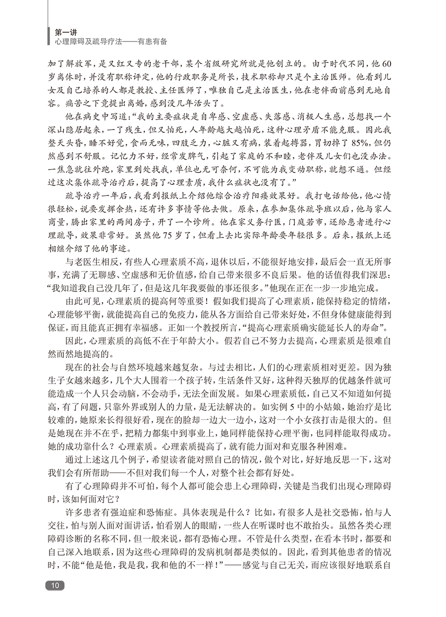 随着社会发展,心理障碍日多,而我国的临床心理工作远未普及。帮助广大的心理障碍者摆脱心理痛苦,也帮助心理困惑者提高心理素质,预防心理障碍,任务艰巨。本书*一版印刷5次,深得广大患者、家属的好评,是系统进行自我心理疏导的专业书籍。全书蓝本为鲁龙光教授进行团体心理疏导治疗的现场实况录音,这是他五十余年临床心理工作经验的结晶。黄爱国老师增加了数万字的内容,使其更具作性。这本书给读者的感觉,就像在团体心理疏导治疗的现场一样,阅读之后,再完成布置的任务,相当于经历了一次系统的自我疏导过程。心理疏导疗法有很多固定读者,*一版不再印刷后,近几年,网络上出现各种盗版的版本,说明本书还是有比较大的市场需求的。