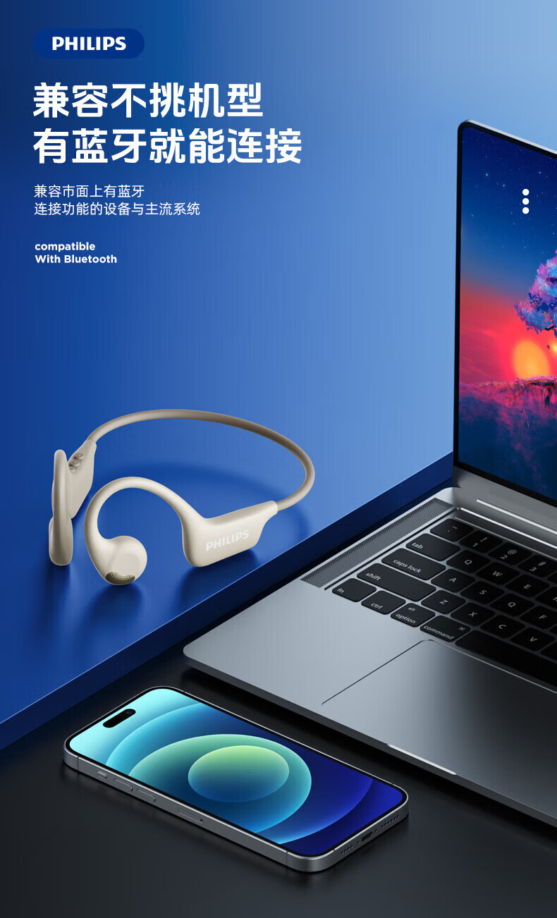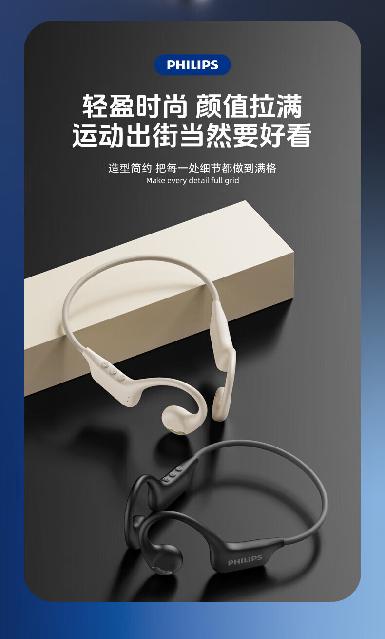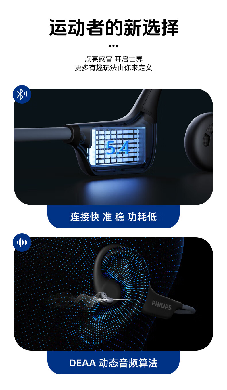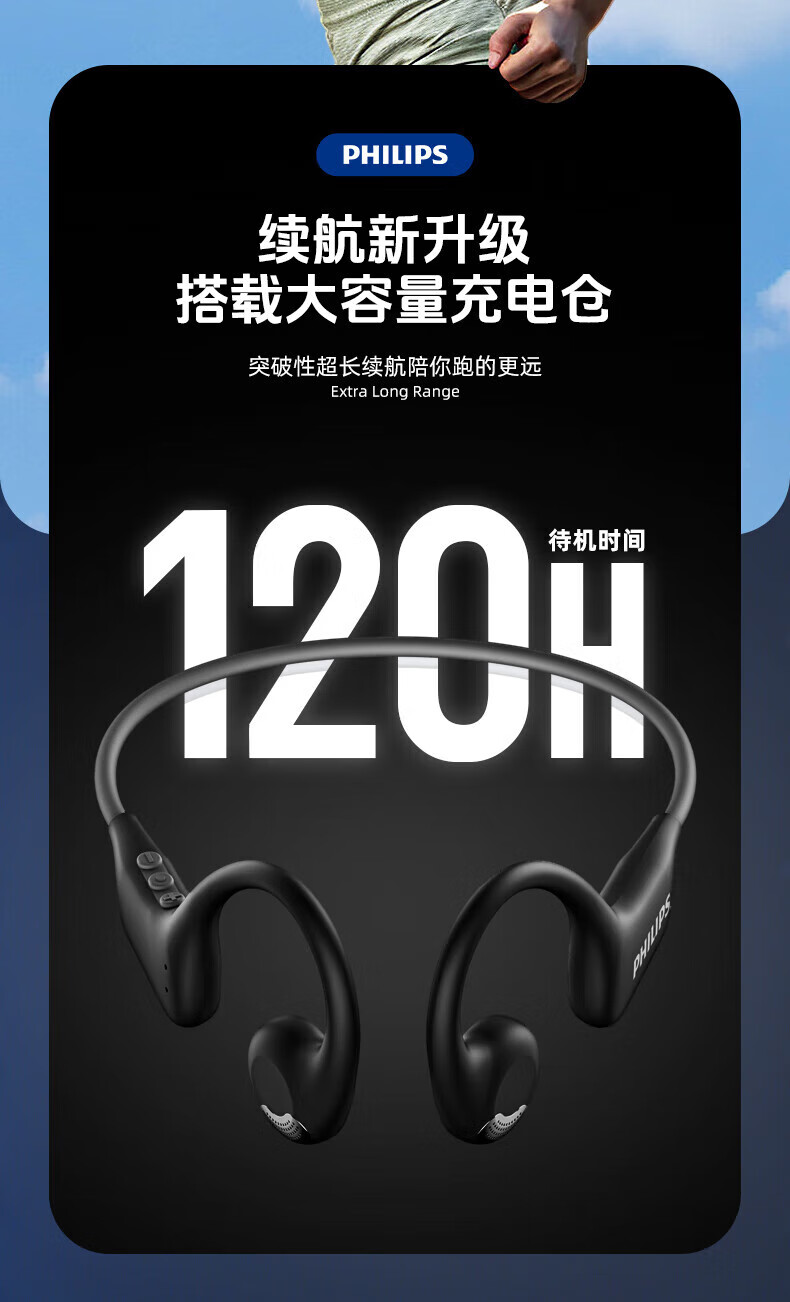 飞利浦(PHILIPS)蓝牙耳机挂耳式骨传导颈挂不入耳开放式跑步运动超长续航降噪适配苹果华为小米高端蓝牙耳机 TAA1708-长跑运动推荐丨高保真音质
