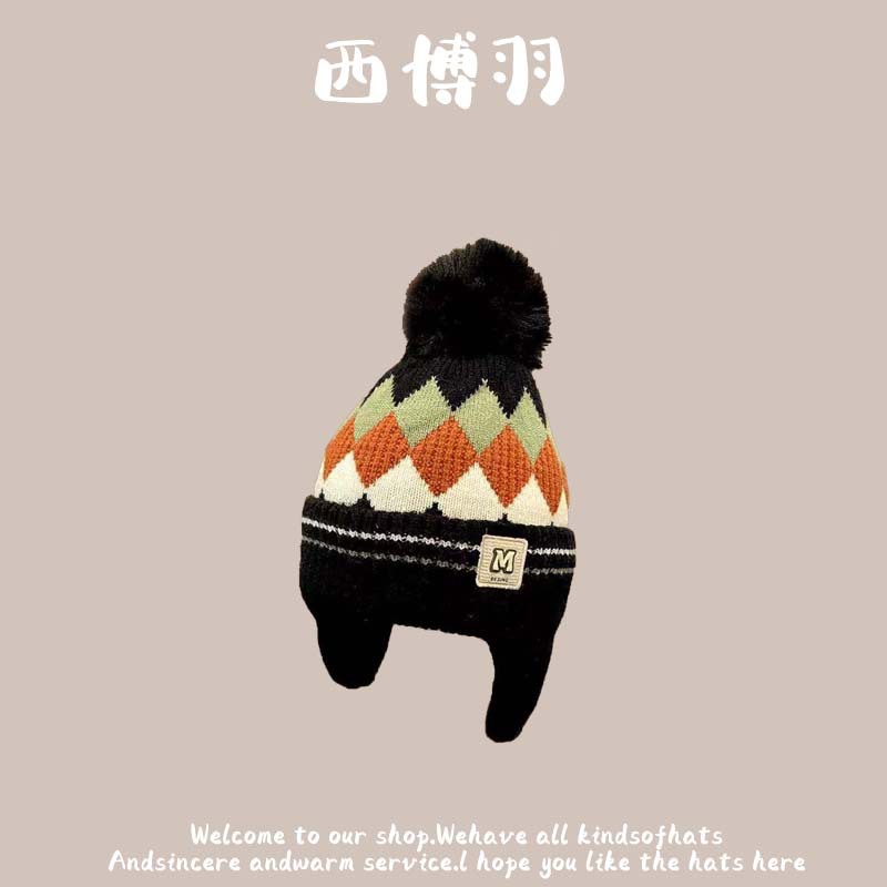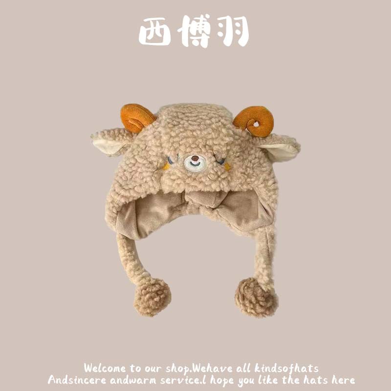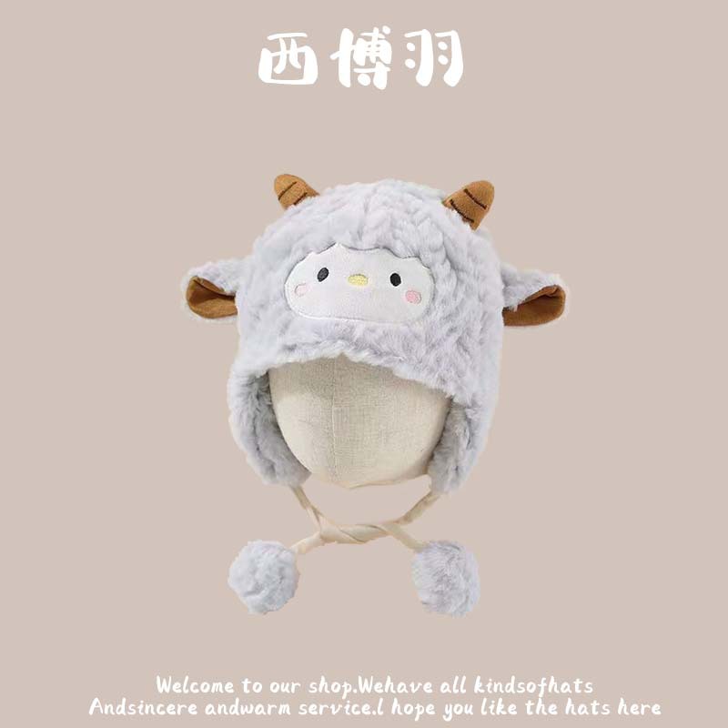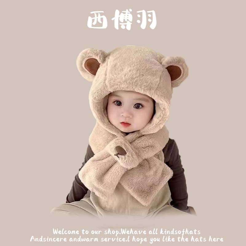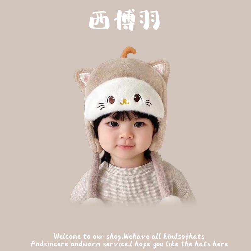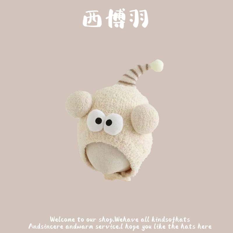 【柔软舒适!防风保暖】秋冬新款动物卡通毛绒儿童帽韩版宝宝可爱套头保暖护耳防风帽。ja