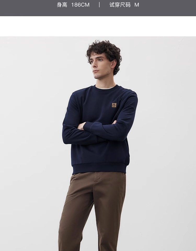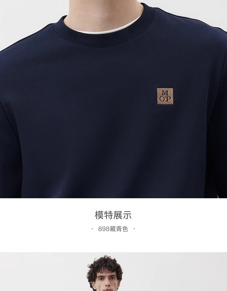 Marc O'Polo/MOP圆领卫衣男2024秋季新款纯色质感宽松简约男上衣