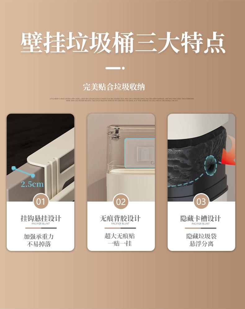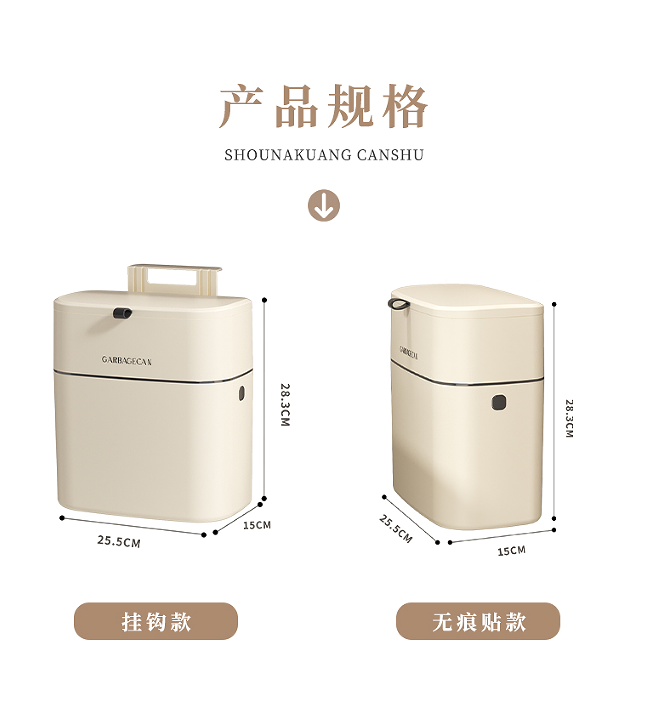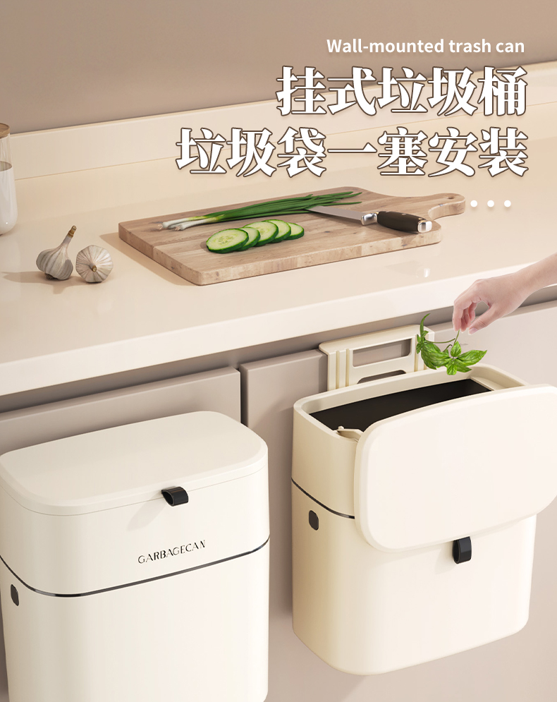 家用可壁挂式垃圾桶简约风厨房卫生间大容量带盖大号收纳桶