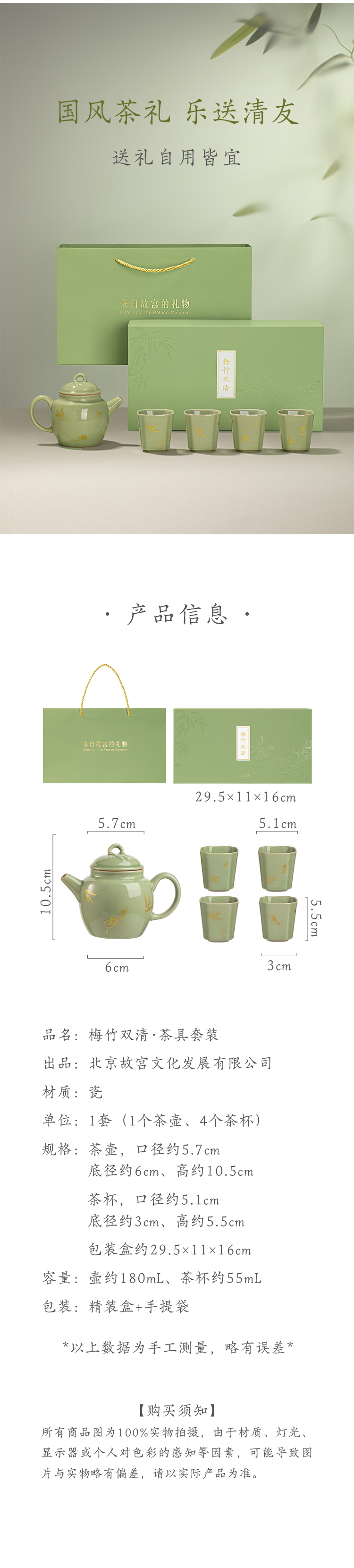 【故宫茶具】梅竹双清茶具套装瓷质茶杯茶壶礼盒送长辈生日礼物