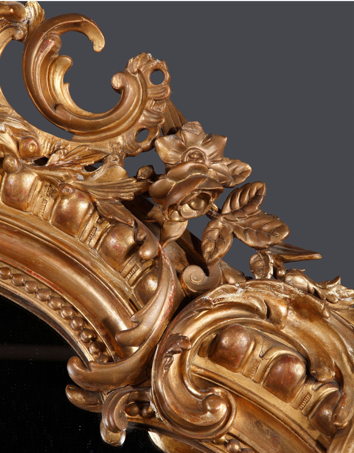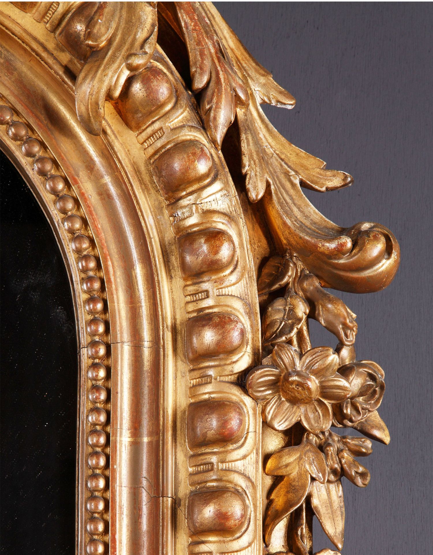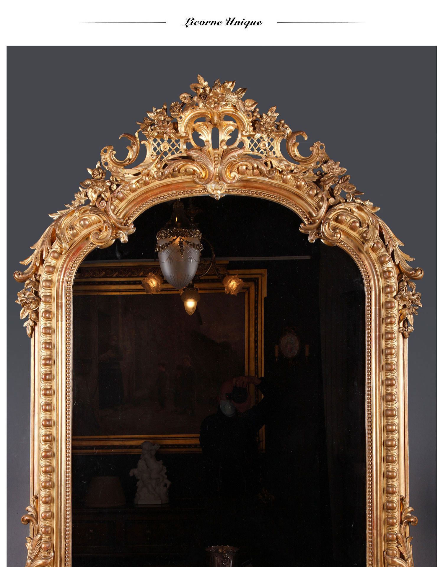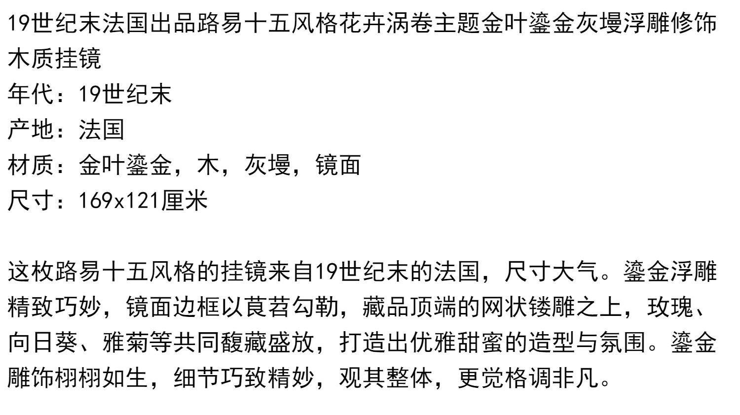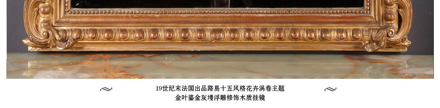 独角鹿西洋古董路易十五风格花卉涡卷金叶鎏金灰墁浮雕木质挂镜