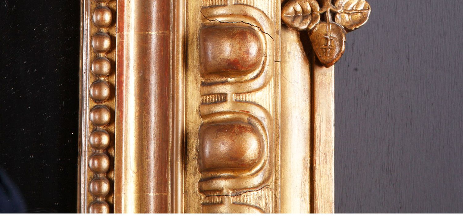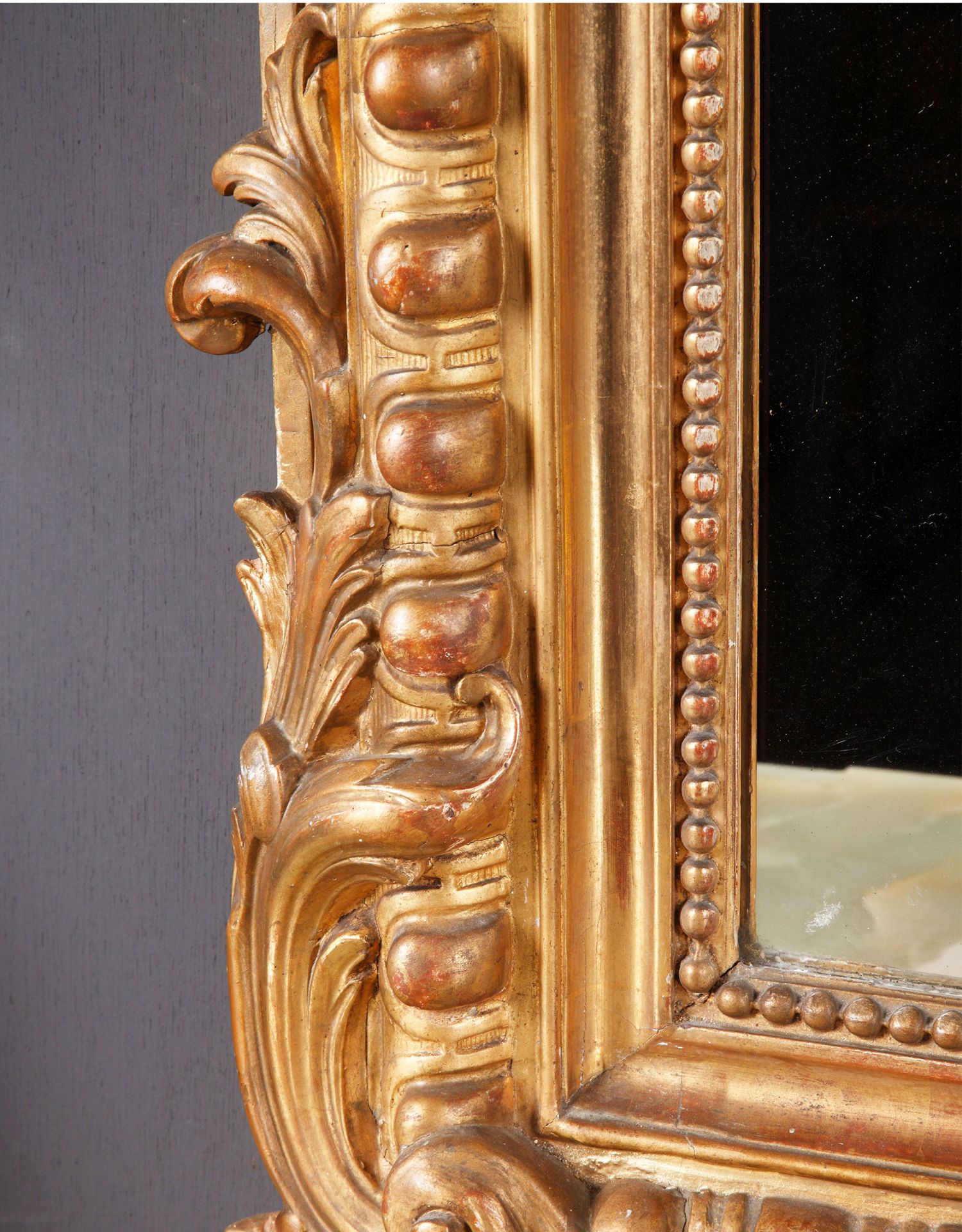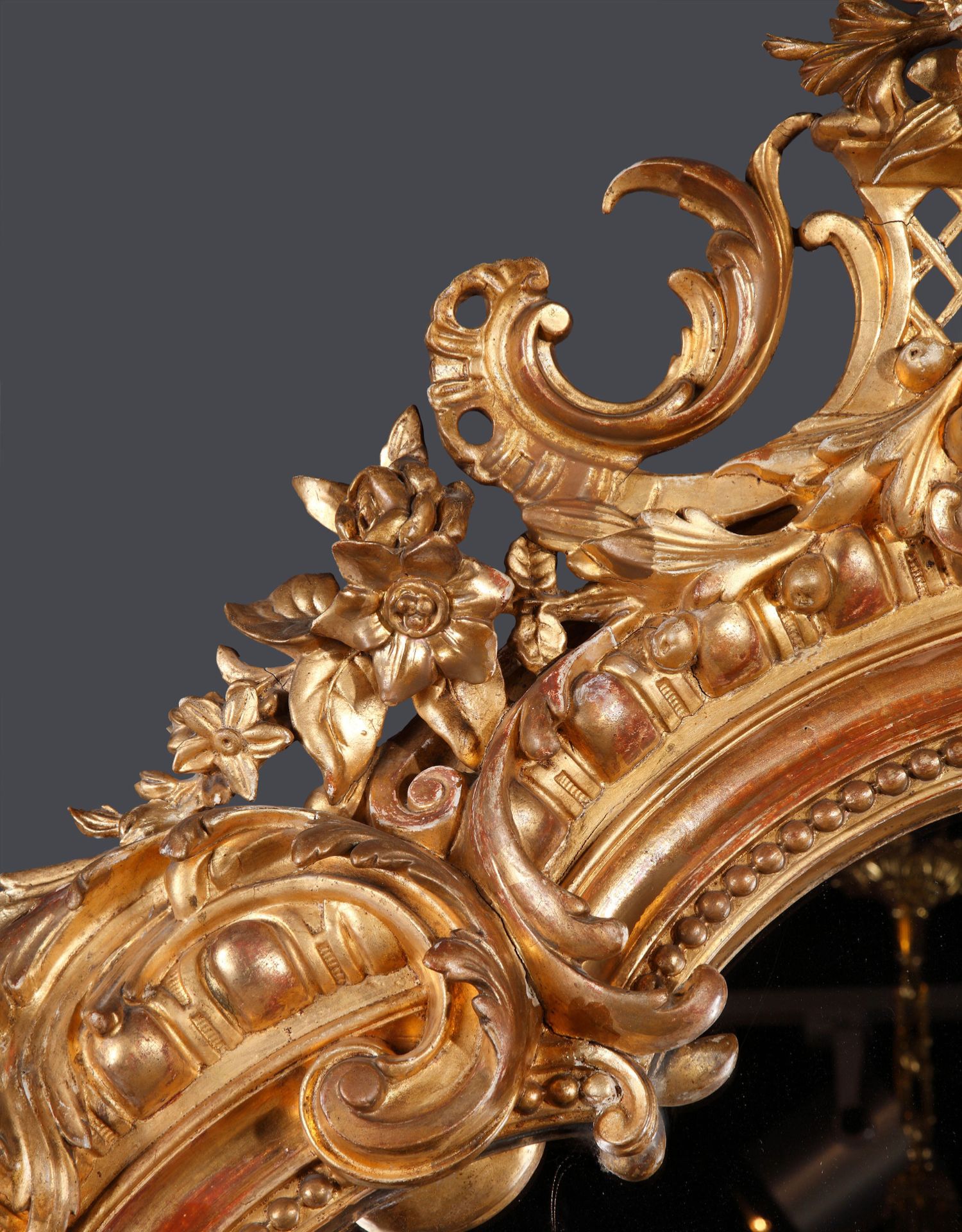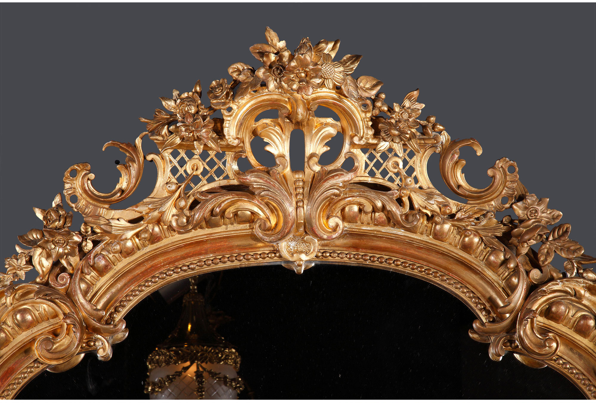 独角鹿西洋古董路易十五风格花卉涡卷金叶鎏金灰墁浮雕木质挂镜